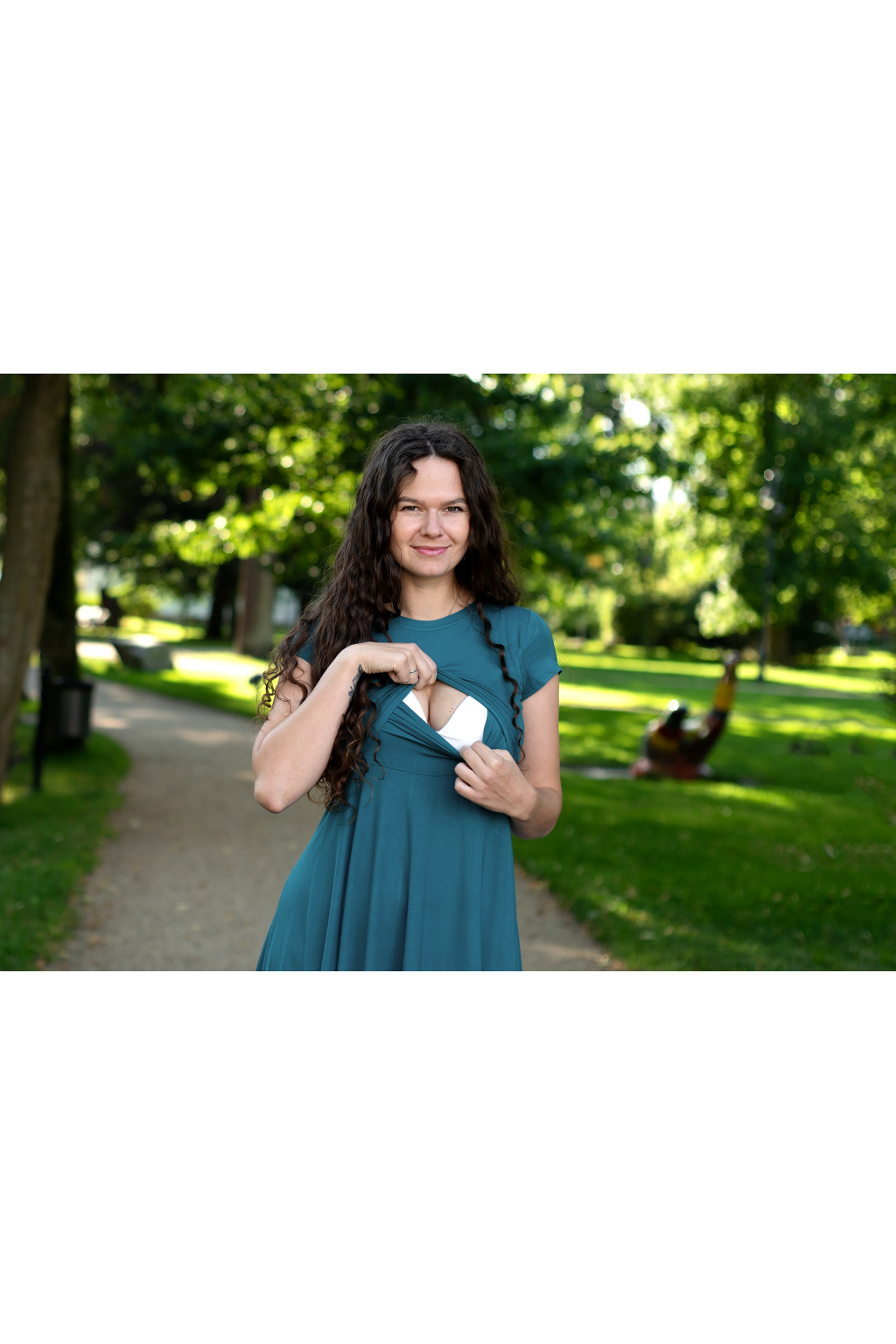 A protože jsou šaty řešeny tak, že jejich kojicí funkce není na první pohled zřejmá, můžete je nosit ještě dlouho po ukončení rodičovské a nikdo nic nepozná.