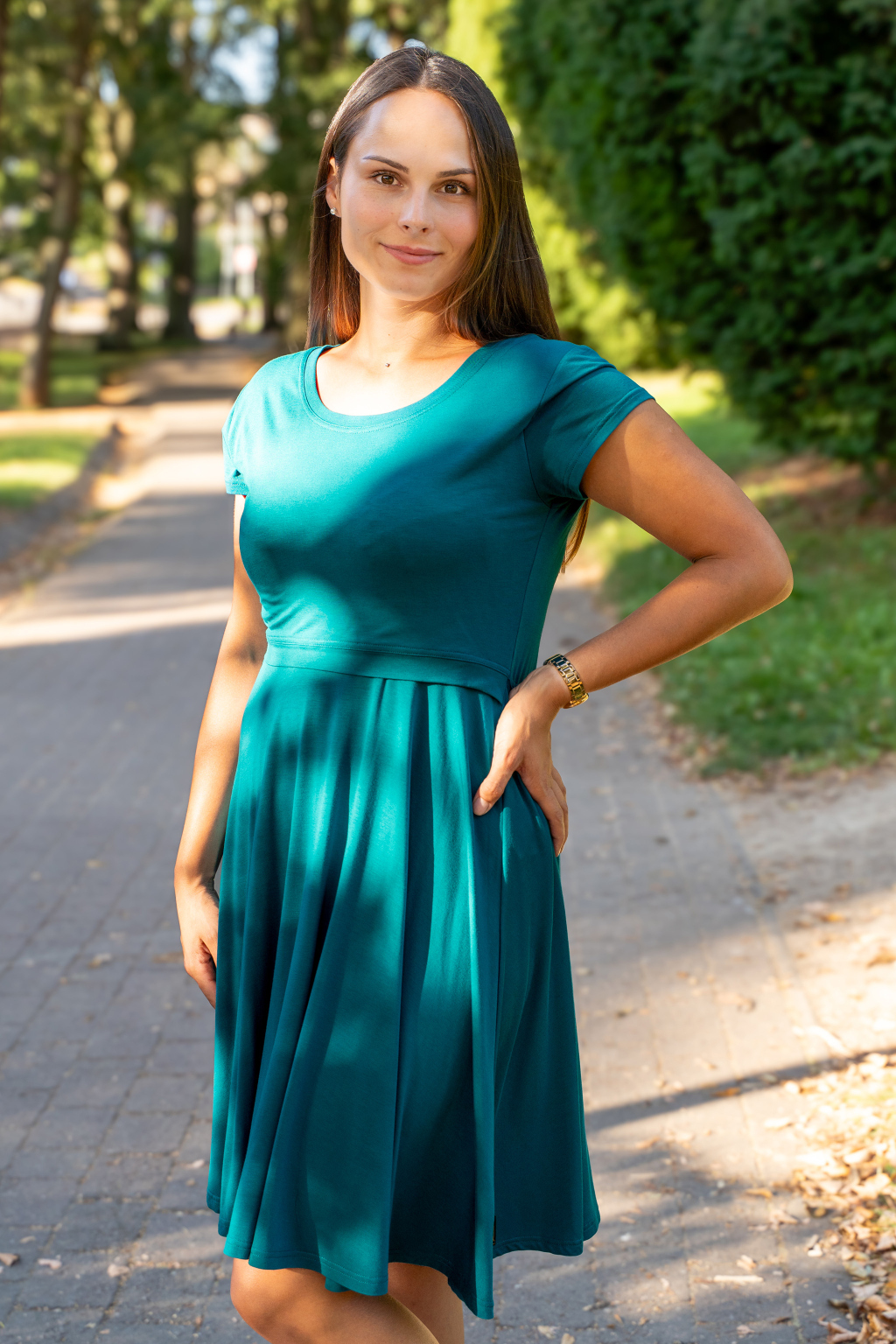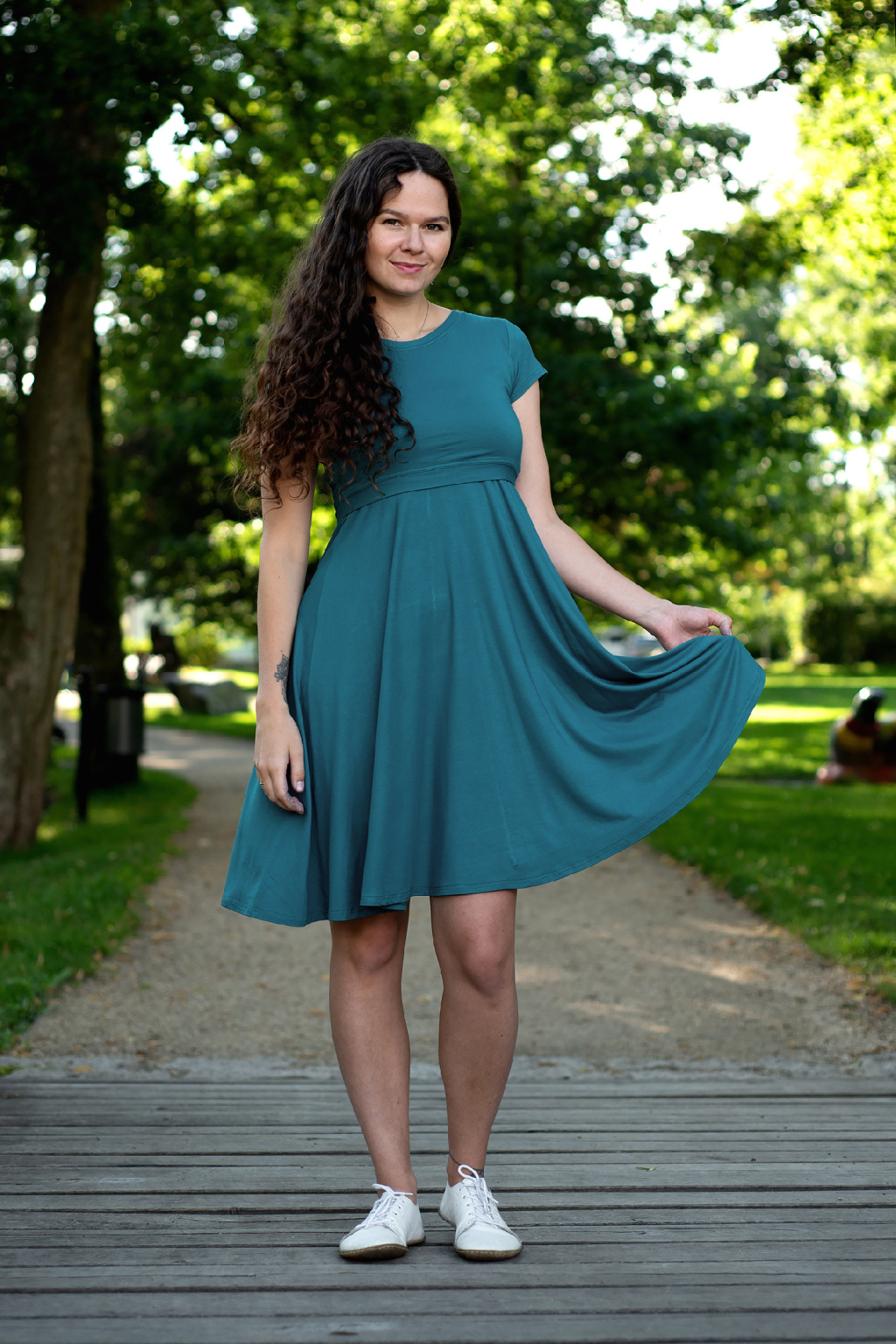 Petrolejový odstín je ve světě barev jedinečným úkazem – osciluje na pomezí modrého a zeleného spektra, což mu propůjčuje osobité kouzlo. Outfit v téhle barvě perfektně vynikne na každé slavnostní události, zejména v kombinaci se zlatými či stříbrnými doplňky. Petrolejové šaty využijete do města na nákupy, na zahradní párty nebo se v nich můžete procházet po lesní pěšince. Hledáte kojicí šaty s osobností? Tady jsou!