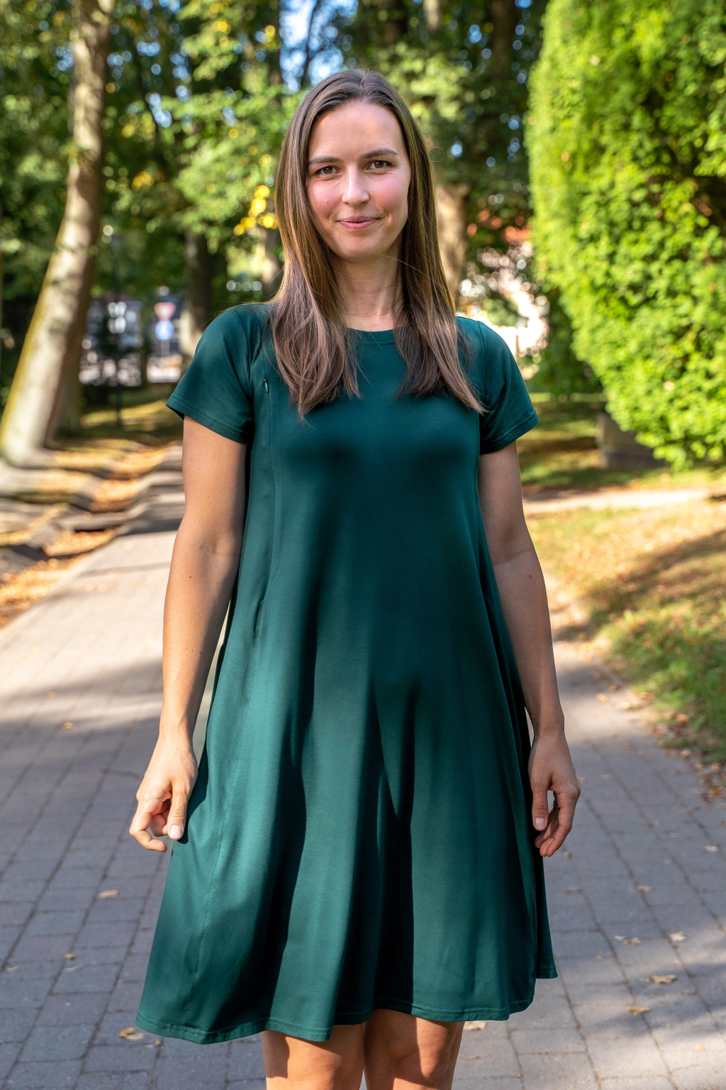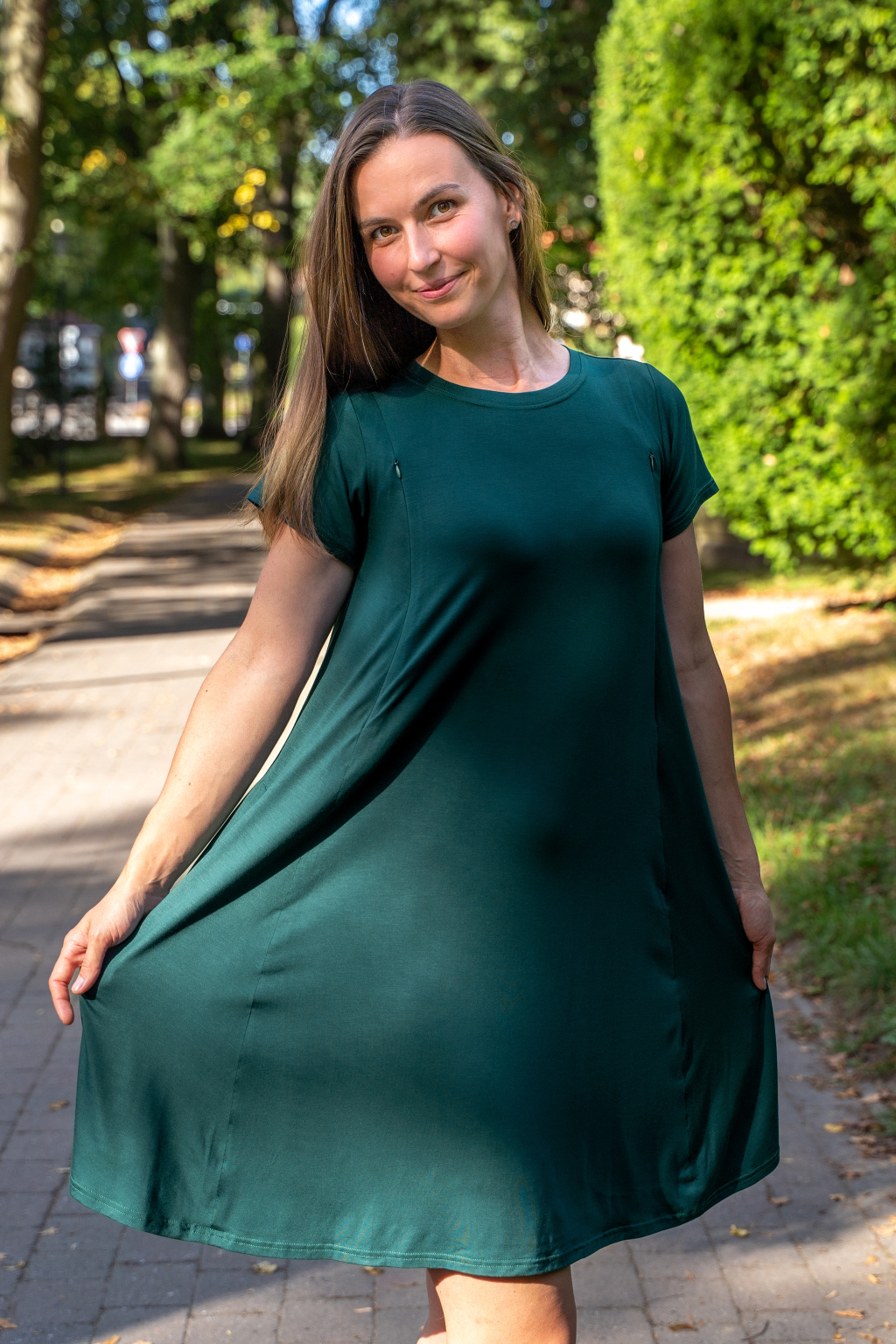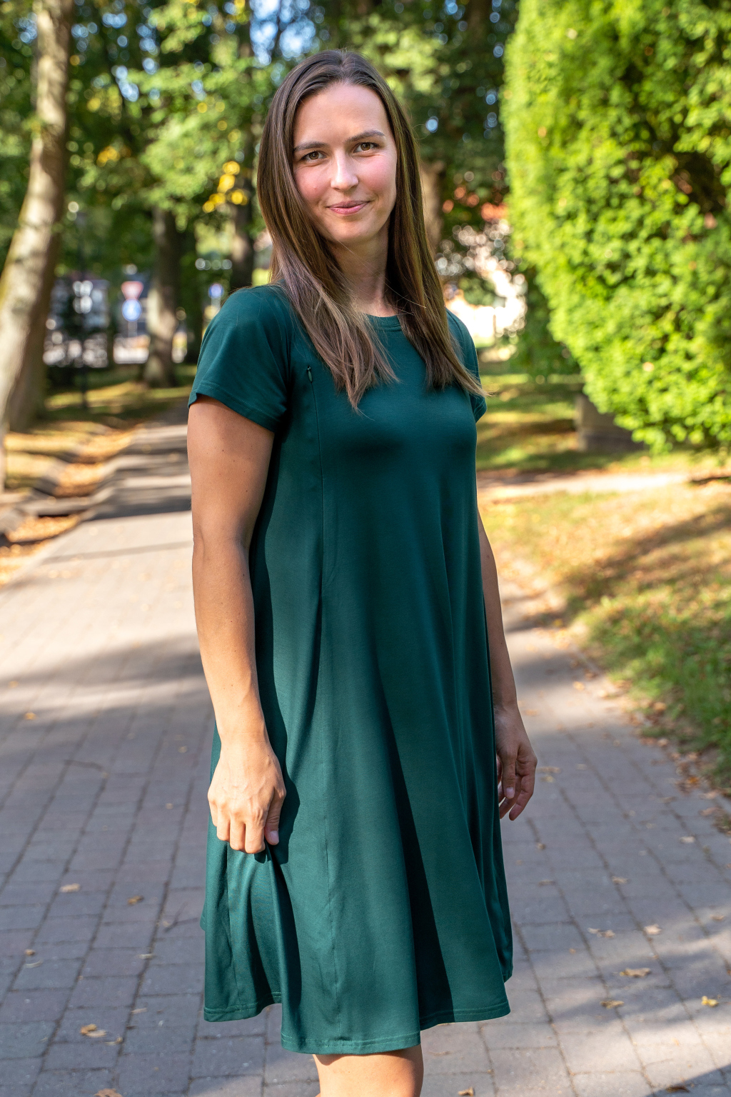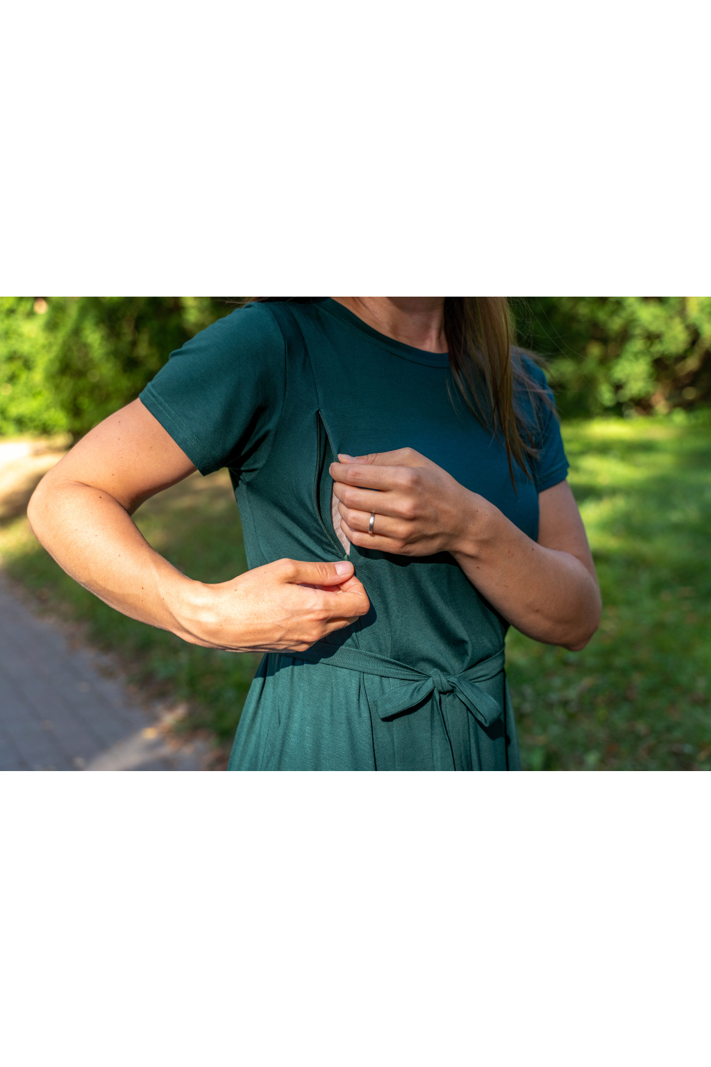 Bambusové kojicí šaty se skrytými zipy – smaragdově zelené