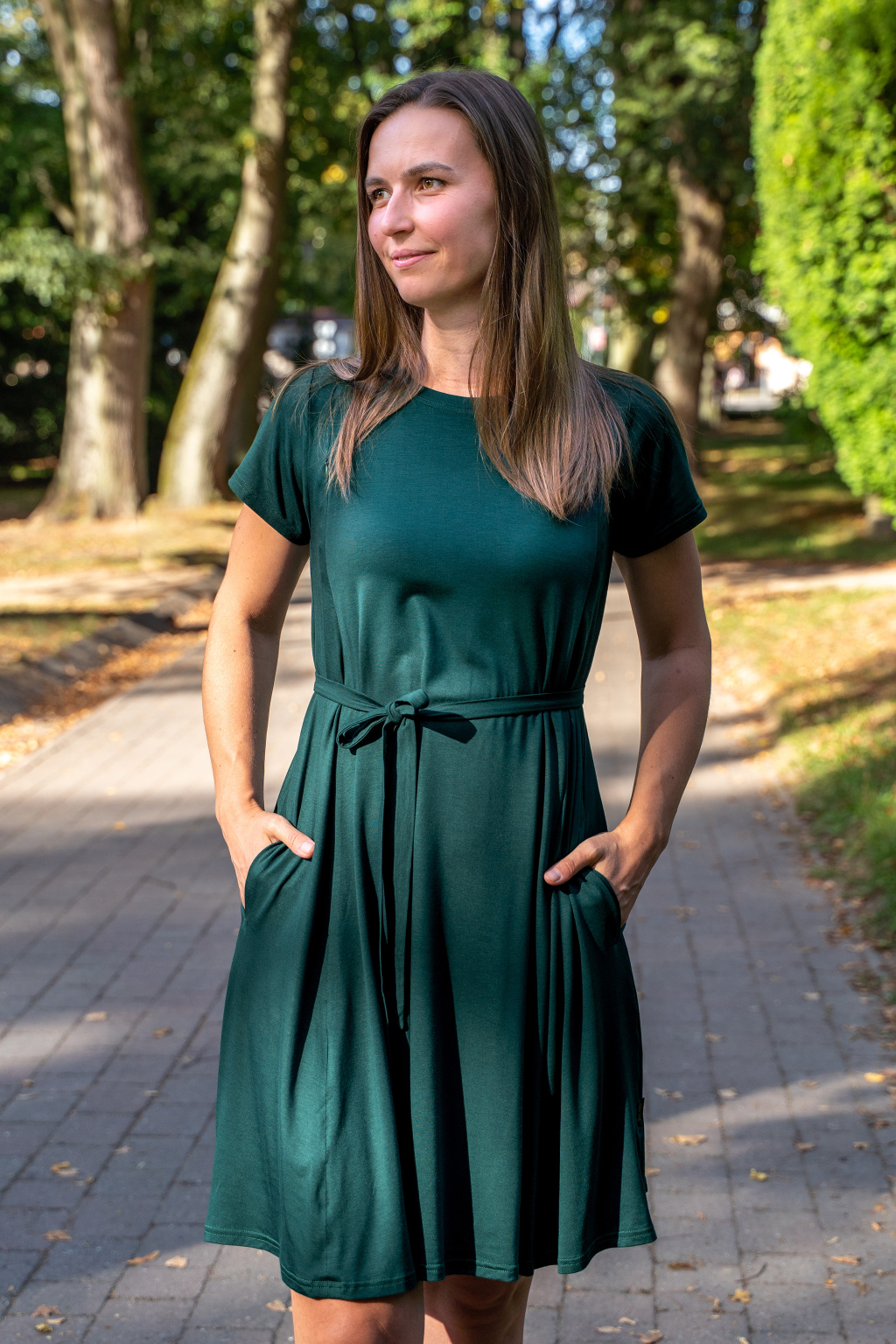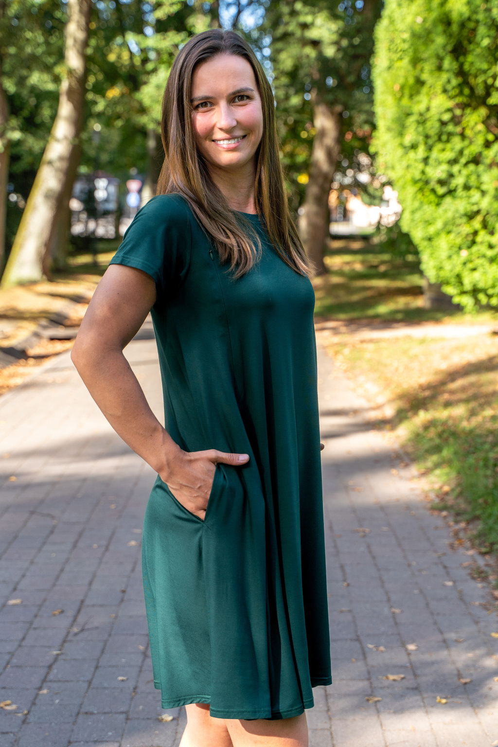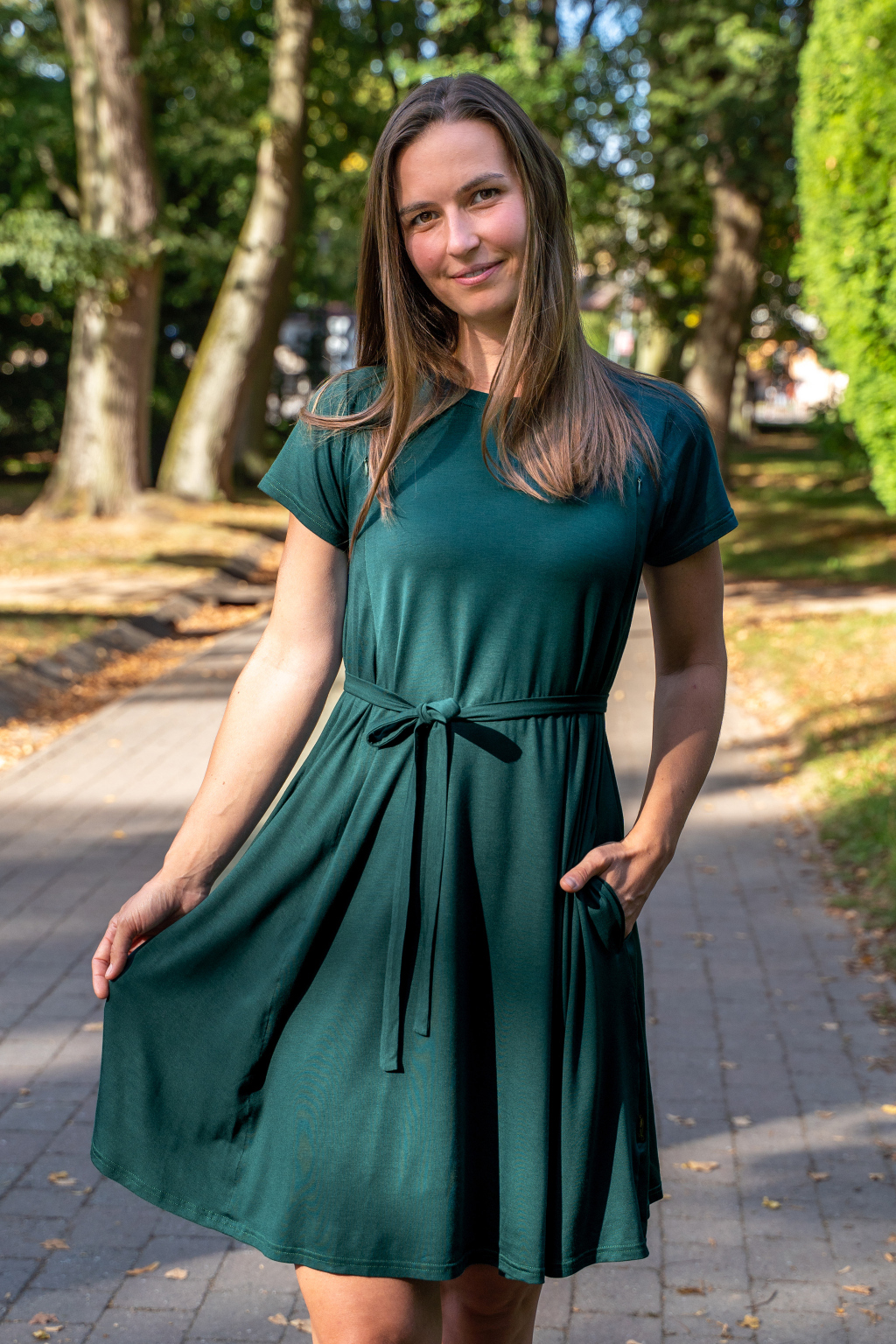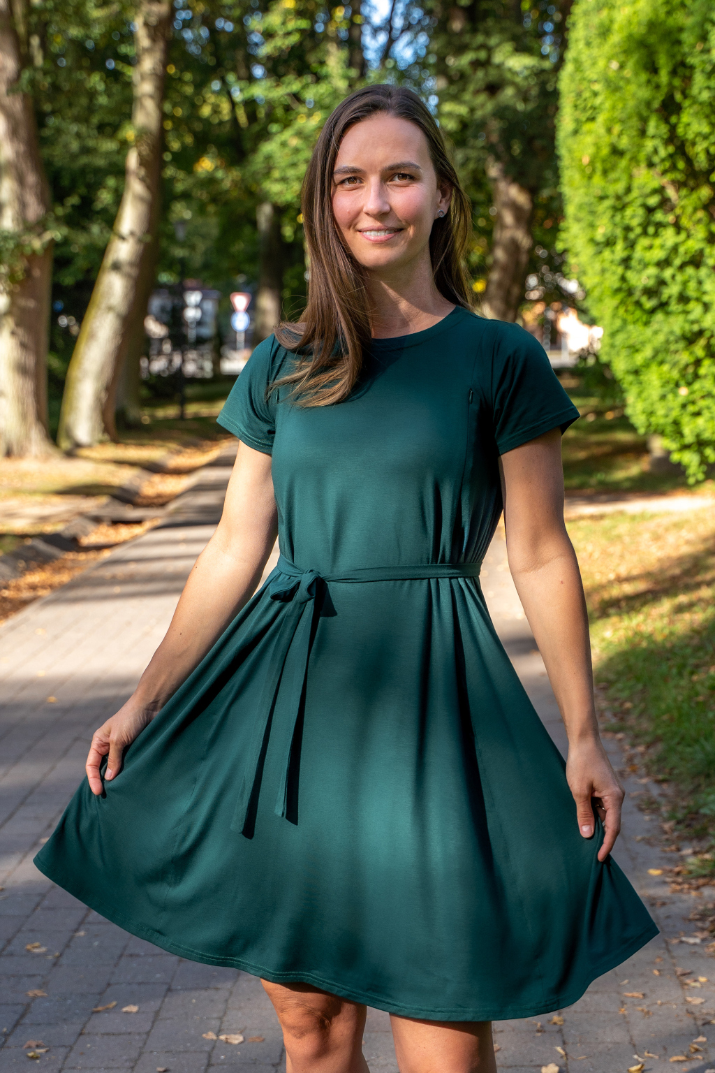 Bambusové kojicí šaty se skrytými zipy – smaragdově zelené