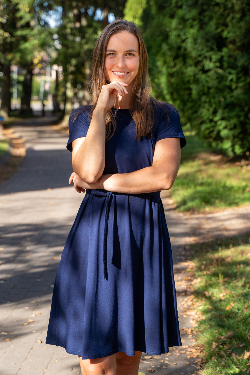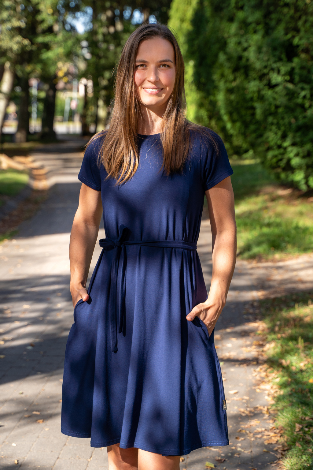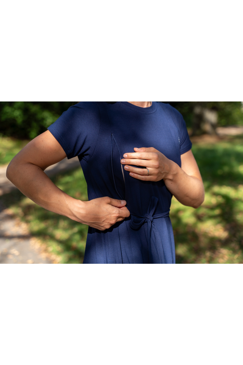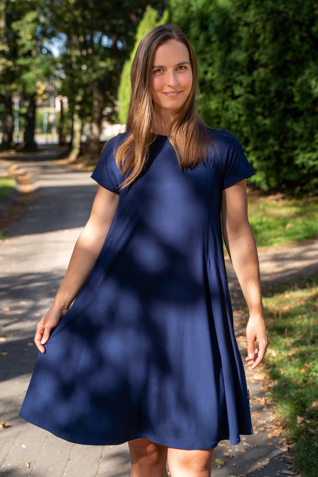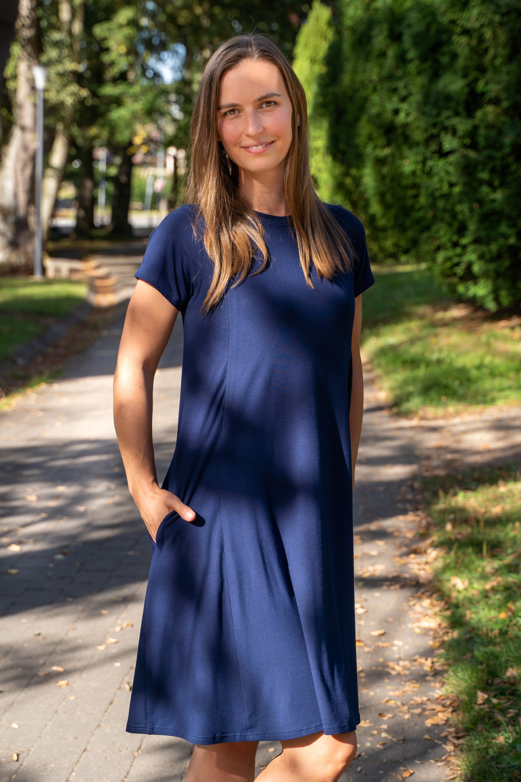 Bambusové kojicí šaty se skrytými zipy – tmavě modré