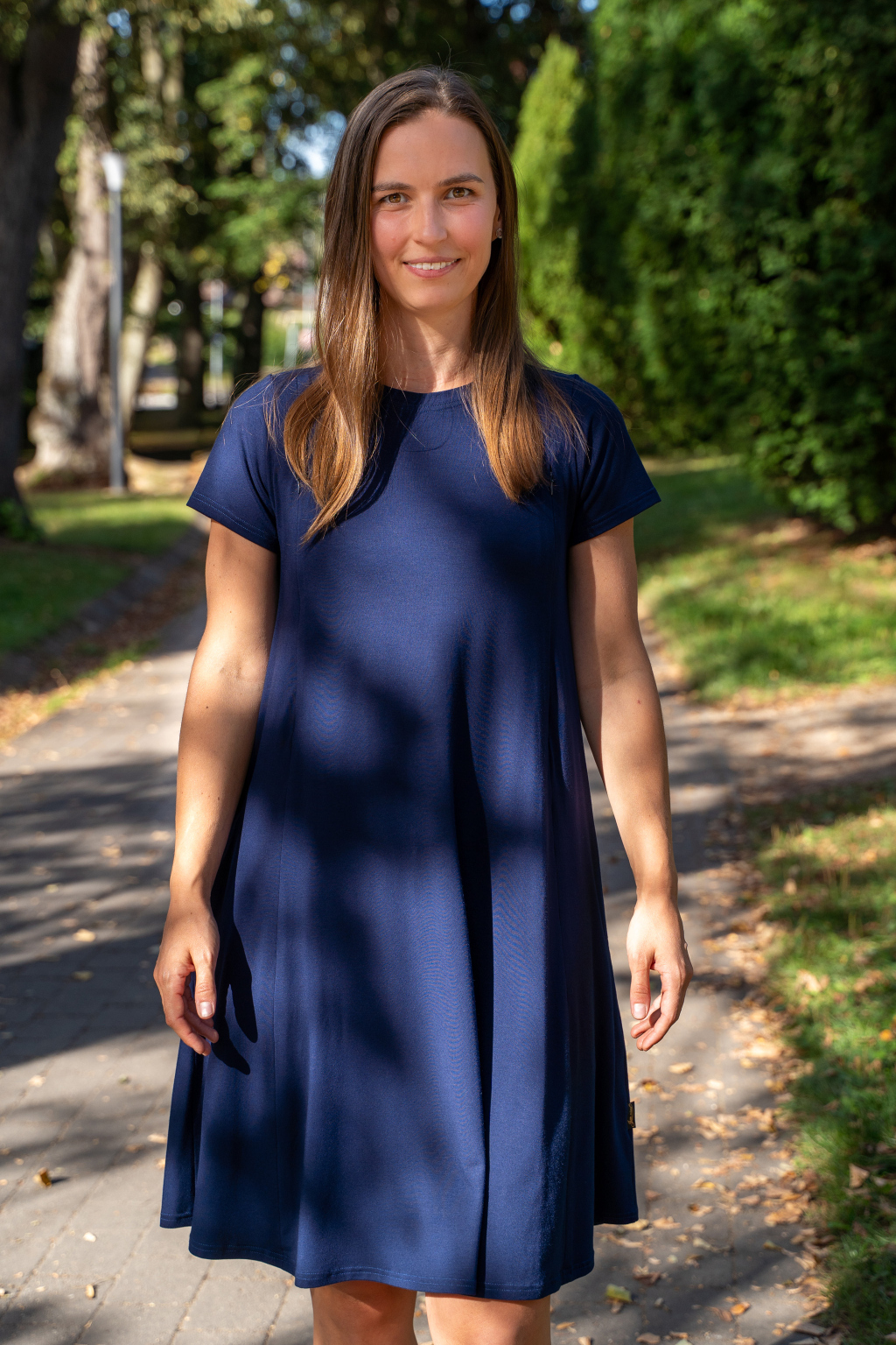 Víte, se kterou barvou nikdy neuděláte chybu? Ano, je to tmavě modrá! 💙 Je jemnější než černá, a přitom stejně nadčasová a univerzální. Lichotí každé postavě, barvě vlasů i očí a působí sofistikovaně ve dne i večer. Totéž platí u bambusových šatů Silvia. Můžete se v nich ukázat na plese, v práci, na kafi s kamarádkou – a vždycky to bude skvělá volba. Tenhle kousek je zkrátka esem v rukávu každého slow fashion šatníku!