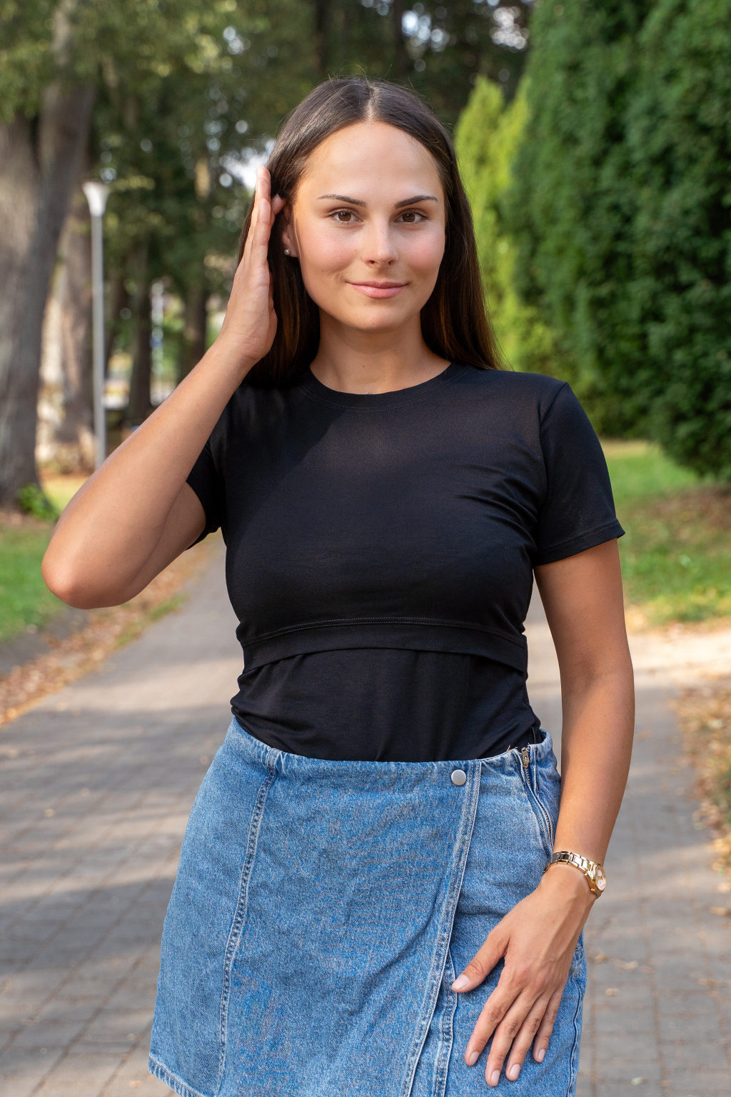 Praktické černé kojicí tričko je díky snadno kombinovatelné barvě nepostradatelnou součástí každého dámského šatníku. Triko je navrženo tak, aby nebylo na první pohled patrné, k jakému účelu slouží (kojicí funkce je důmyslně skryta). Našim cílem je prodloužit životaschopnost oblečení co nejvíce, proto na jeho výrobu používáme výhradně bambus z české pletárny, průmyslové stroje a šikovné ruce našich švadlen. Můžete se tak těšit na skutečně kvalitní a udržitelný kousek, který vám bude sloužit i mnoho let po skončení období kojení.