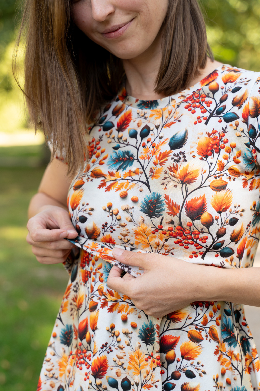 Bavlněné kojicí šaty Jsem máma, barevné listí