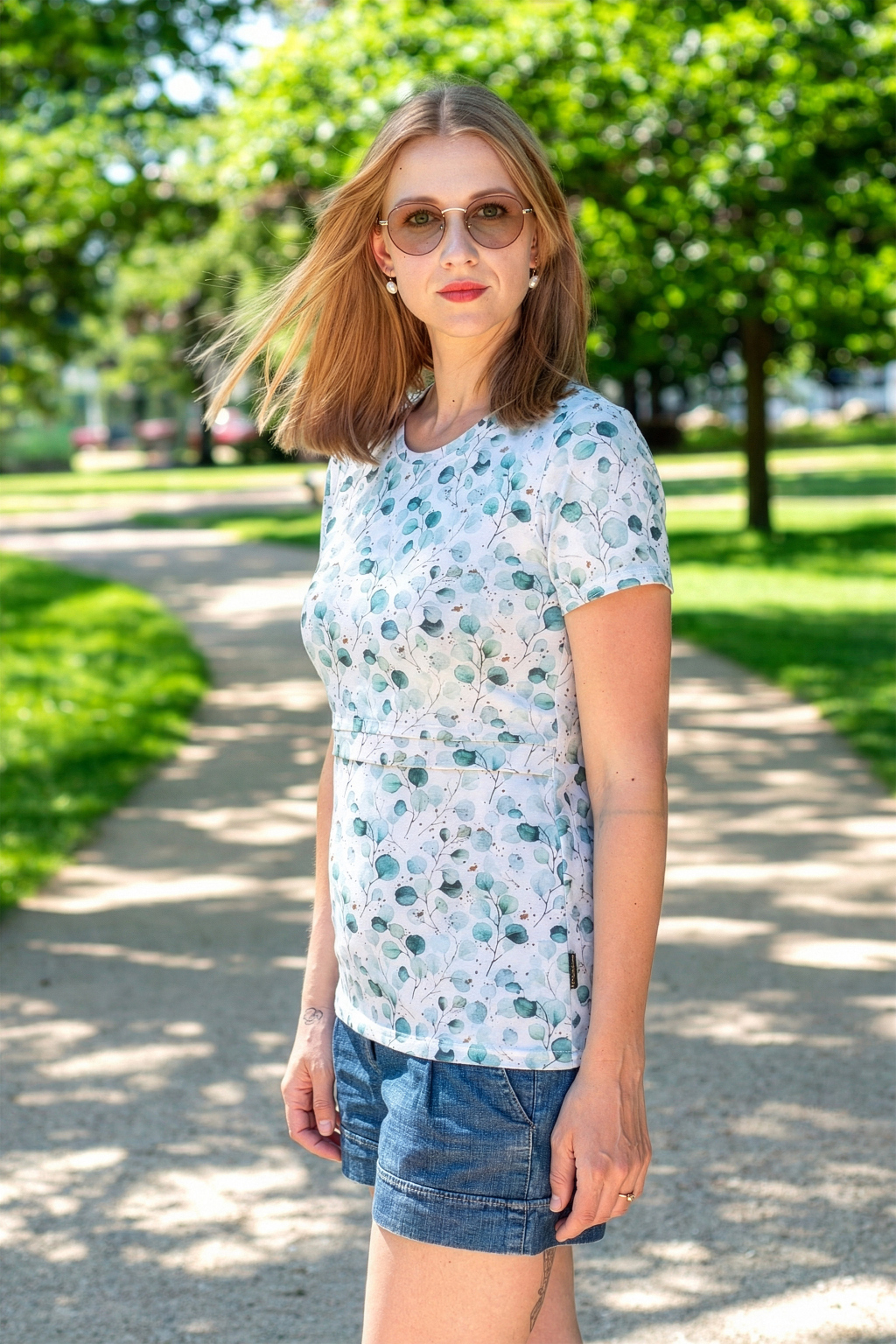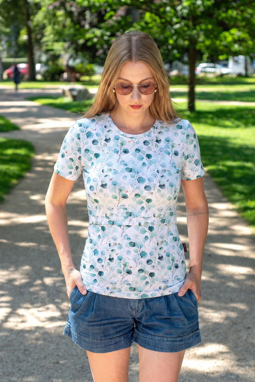 Triko má krátký rukáv a je vyrobeno v oblíbeném střihu s jednoduchým přístupem ke kojicí podprsence, který vám zaručí diskrétní a pohodlné kojení vašeho miminka. Nenajdete u něj boční řasení pro těhotenské bříško, jež útlým pasům plandá a špatně sedí, ale naopak projmutý střih, který zaručí dokonalé přilnutí k tělu.