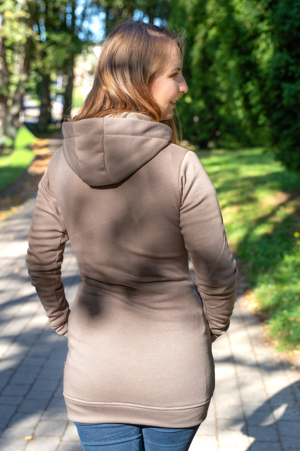 Prodloužený střih máme rády z mnoha důvodů. Sluší každé ženě a udržuje v teple ledviny. Tato mikina navíc krásně tvaruje postavu – není to klasický oversize kousek, ve kterém se ztratíte. Díky projmutému střihu působí elegantně, příjemně obepíná, ale neškrtí – spíše vás obejme tak akorát, abyste se cítila pohodlně a sebevědomě zároveň.