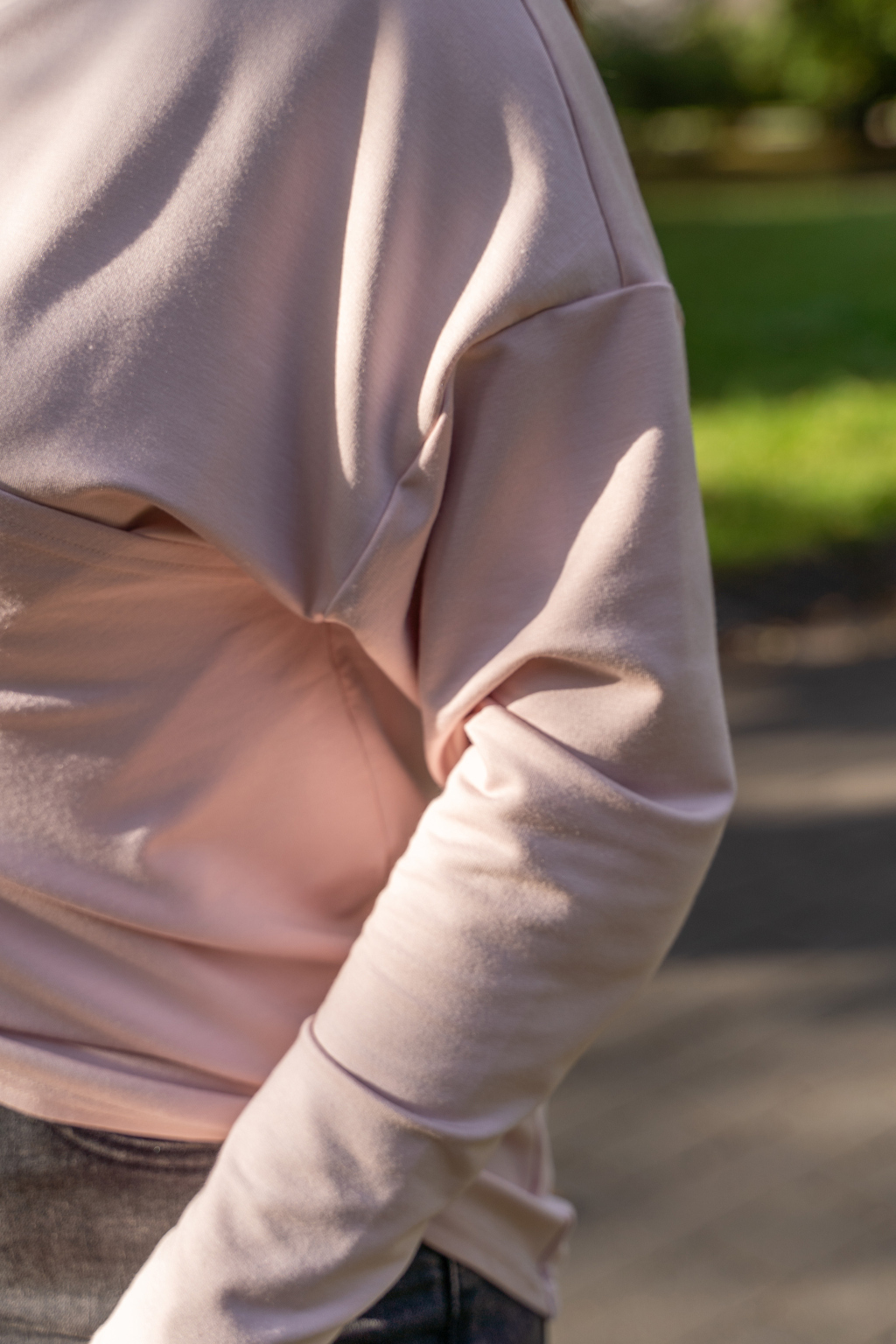 Díky volnému oversize provedení a širším netopýřím rukávům tento dámský top neškrtí, nestahuje – naopak dopřává dostatek prostoru a pohodlí. Střih jsme navíc navrhli tak, aby odpovídal dvěma velikostem současně, takže si snadno vyberete ten pravý.