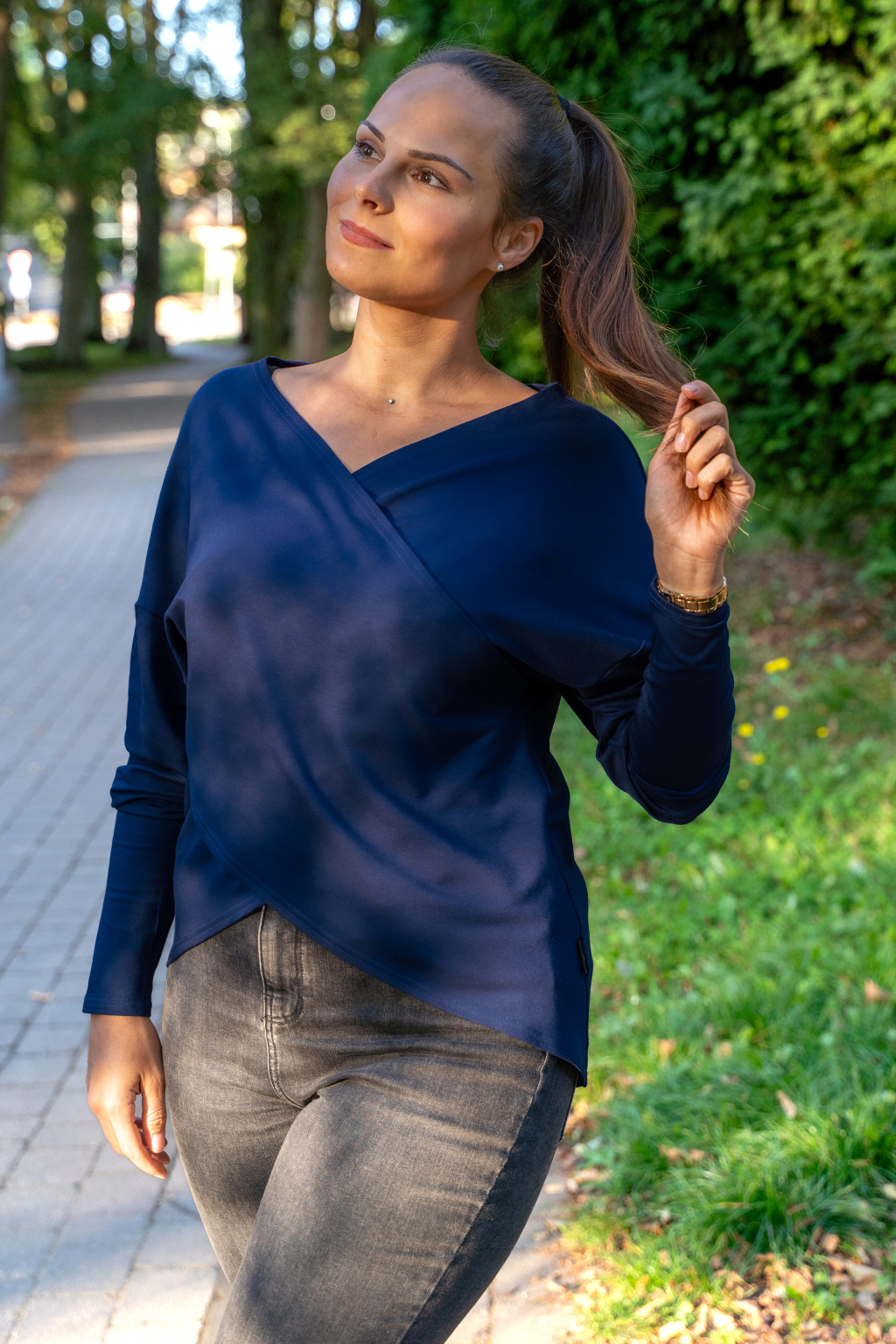 Jednou tričko, jindy mikina. Ležérní zavinovací top z hebké bambusové teplákoviny je tím typem oblečení, které můžete nosit přesně tak, jak zrovna potřebujete.