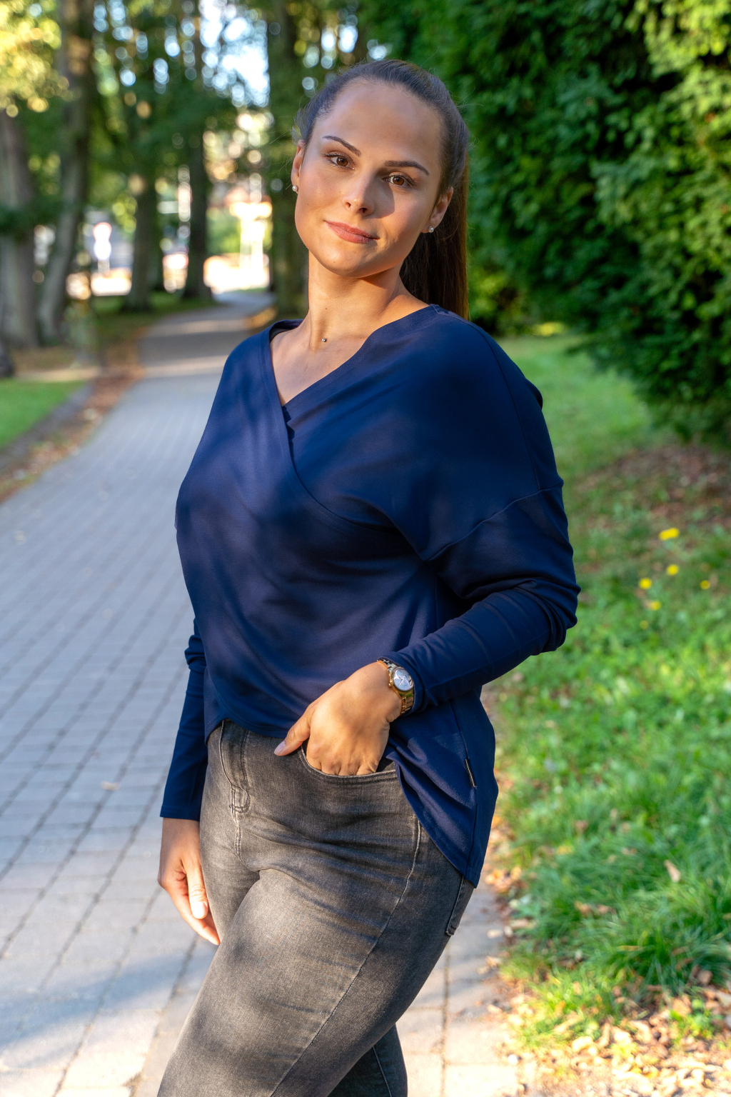 Víte, se kterou barvou nikdy neuděláte chybu? Ano, je to tmavě modrá! 💙 Je jemnější než černá, a přitom stejně nadčasová a univerzální. Lichotí každé postavě, barvě vlasů i očí a působí sofistikovaně. V tmavomodrém topu se můžete ukázat na párty i v práci – a vždycky to bude skvělá volba. Tenhle kousek je zkrátka esem v rukávu každého slow fashion šatníku!