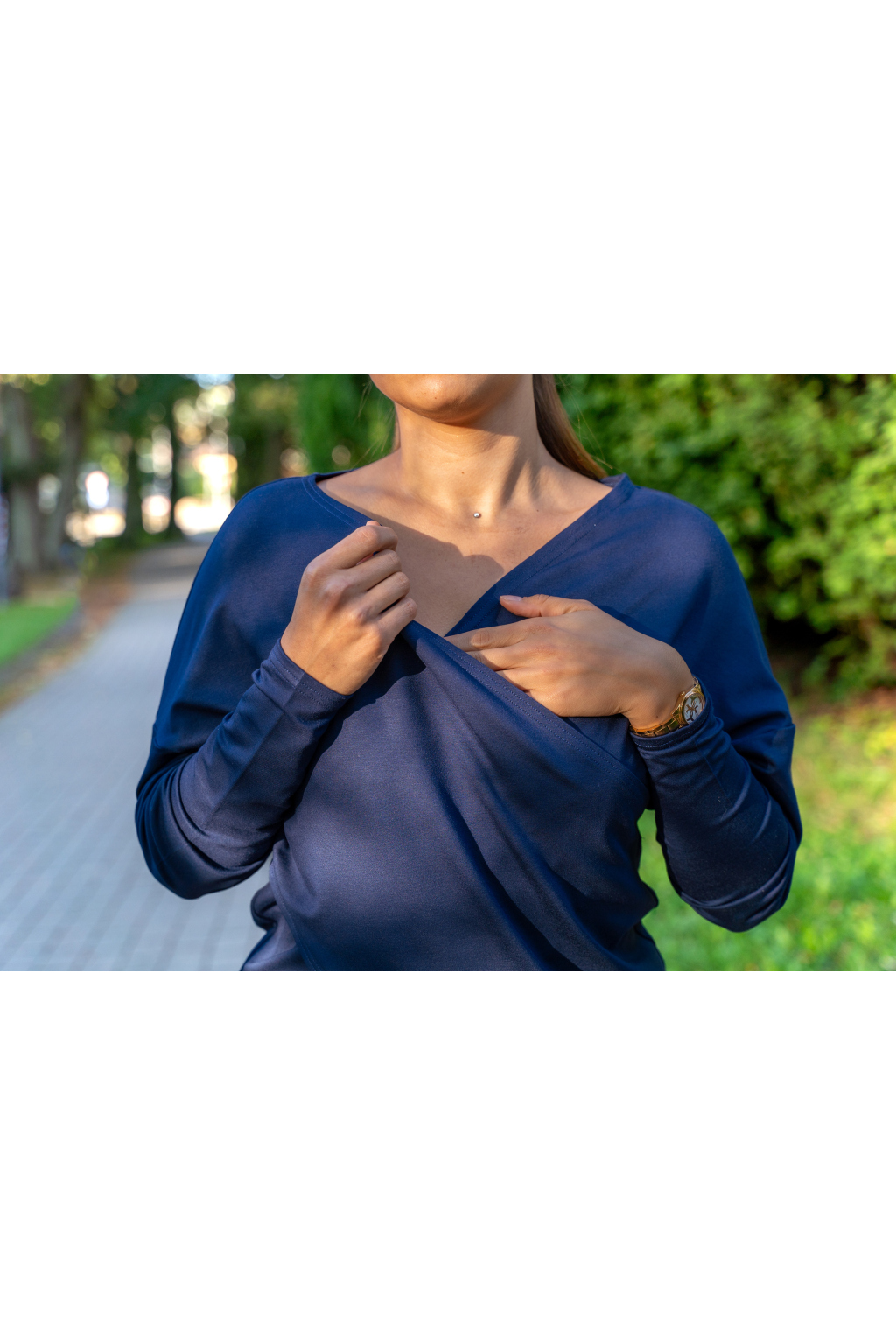Přestože tento dámský top nevypadá na první pohled jako kojicí, miminko v něm díky zavinovacímu střihu pohodlně nakojíte – bez nutnosti složitě manipulovat se zipy. Je to přirozené, jednoduché a praktické řešení, které ocení každá máma.
