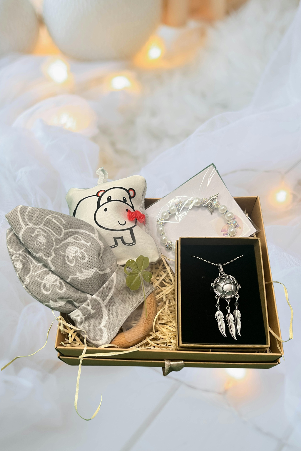 Tento dárkový balíček pro těhotnou kamarádku, partnerku či sestru jsme sestavili tak, aby byl jemným zastavením – dárkem, který uklidní, povzbudí a namotivuje. Najdete v něm drobnosti, které obdarovanou potěší a připomenou jí, že v tom není sama.