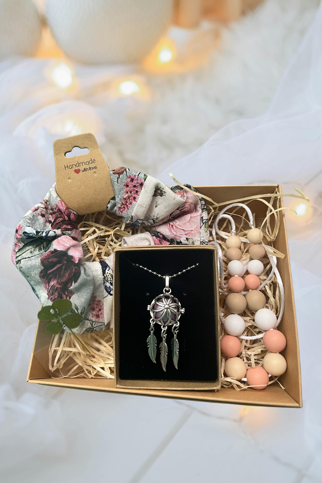 Tento dárkový balíček pro těhotnou kamarádku, partnerku či sestru jsme sestavili tak, aby byl jemným zastavením – dárkem, který uklidní, povzbudí a namotivuje. Najdete v něm drobnosti, které obdarovanou potěší a připomenou jí, že v tom není sama.