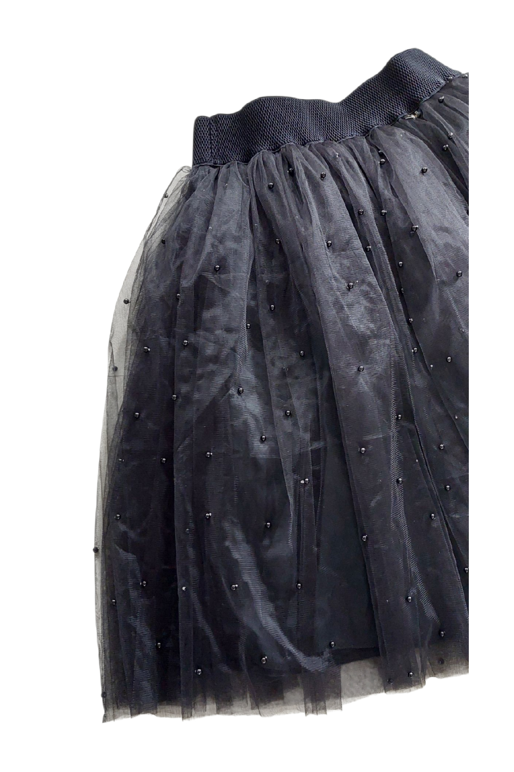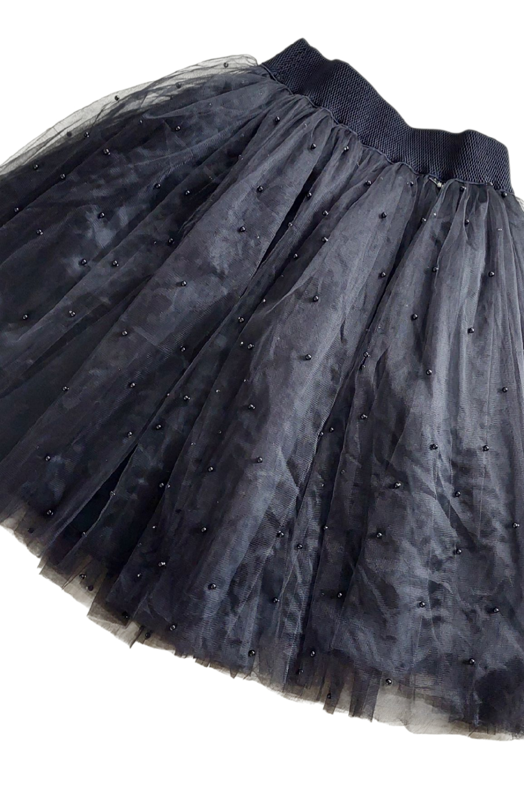 Tahle nadýchaná dětská sukně promění vaši malou slečnu v princeznu! Tři vrstvy jemného tylu dodávají sukni objem, drobné perličky jí propůjčují pohádkové kouzlo.