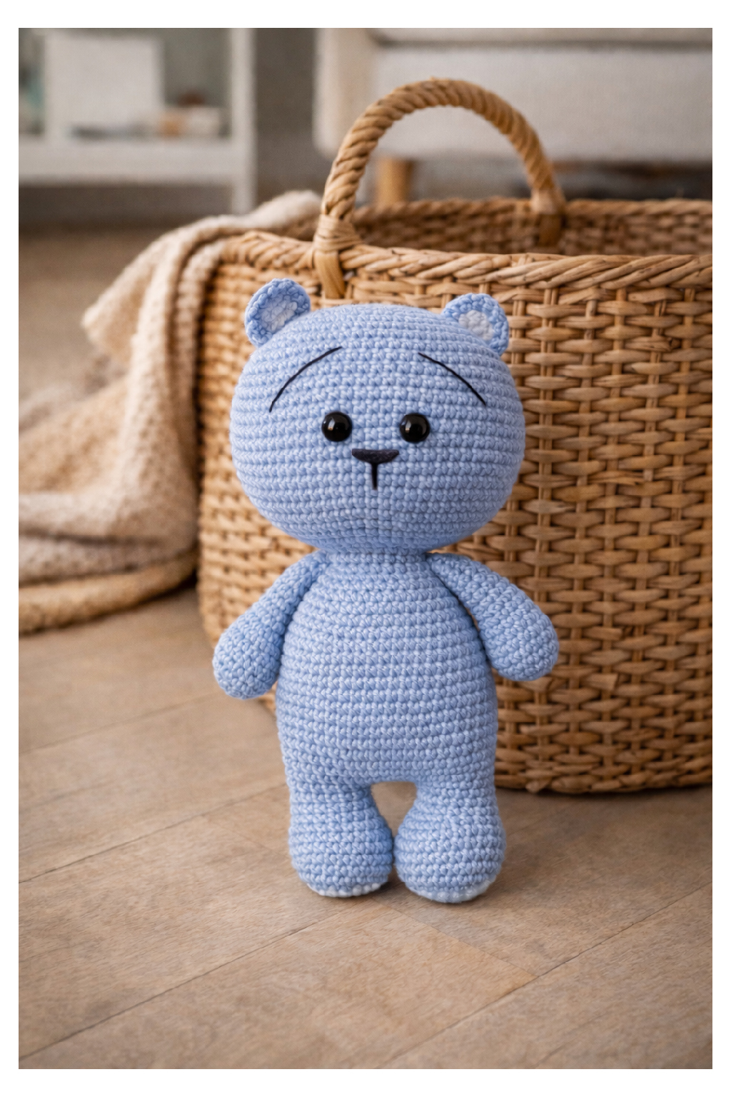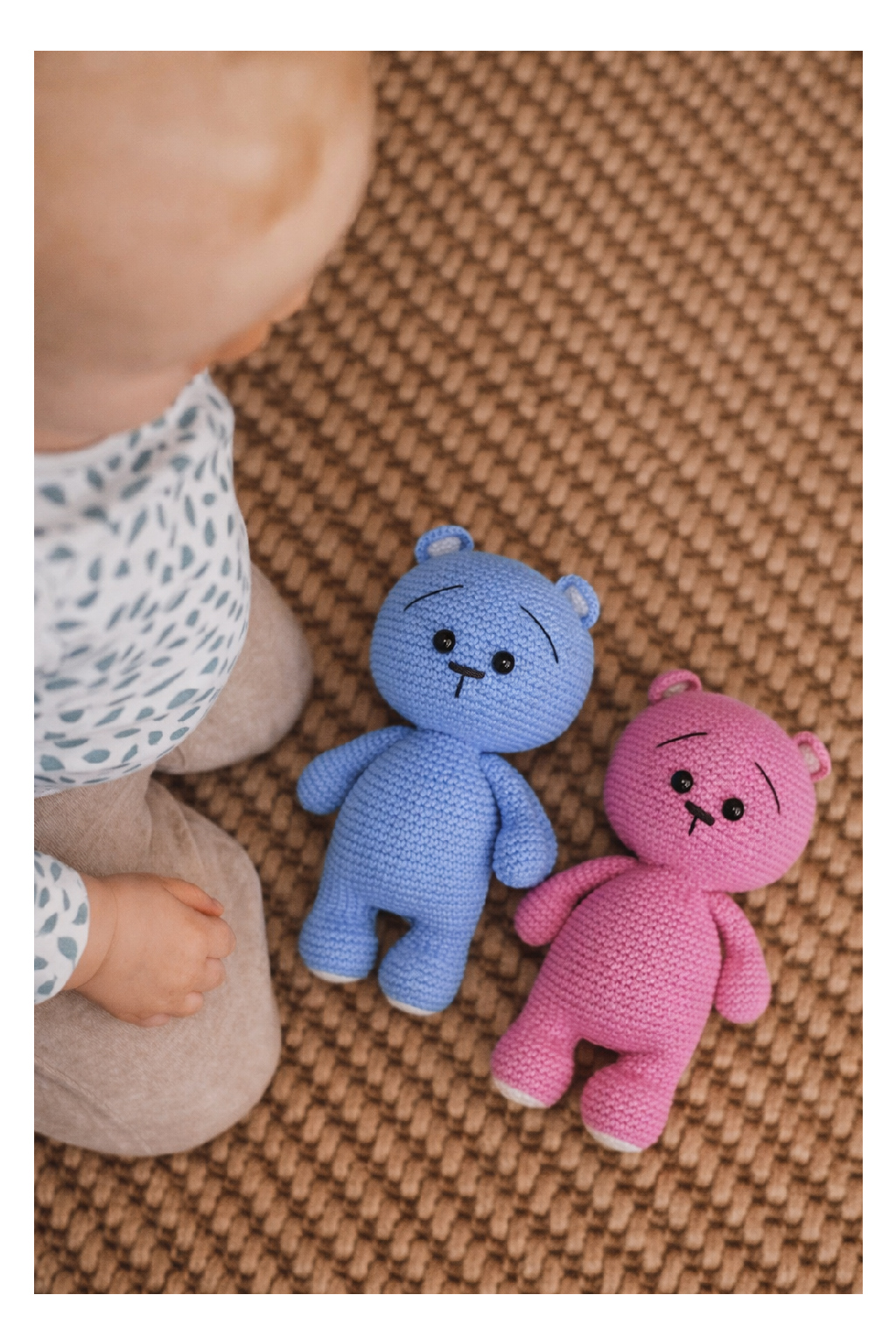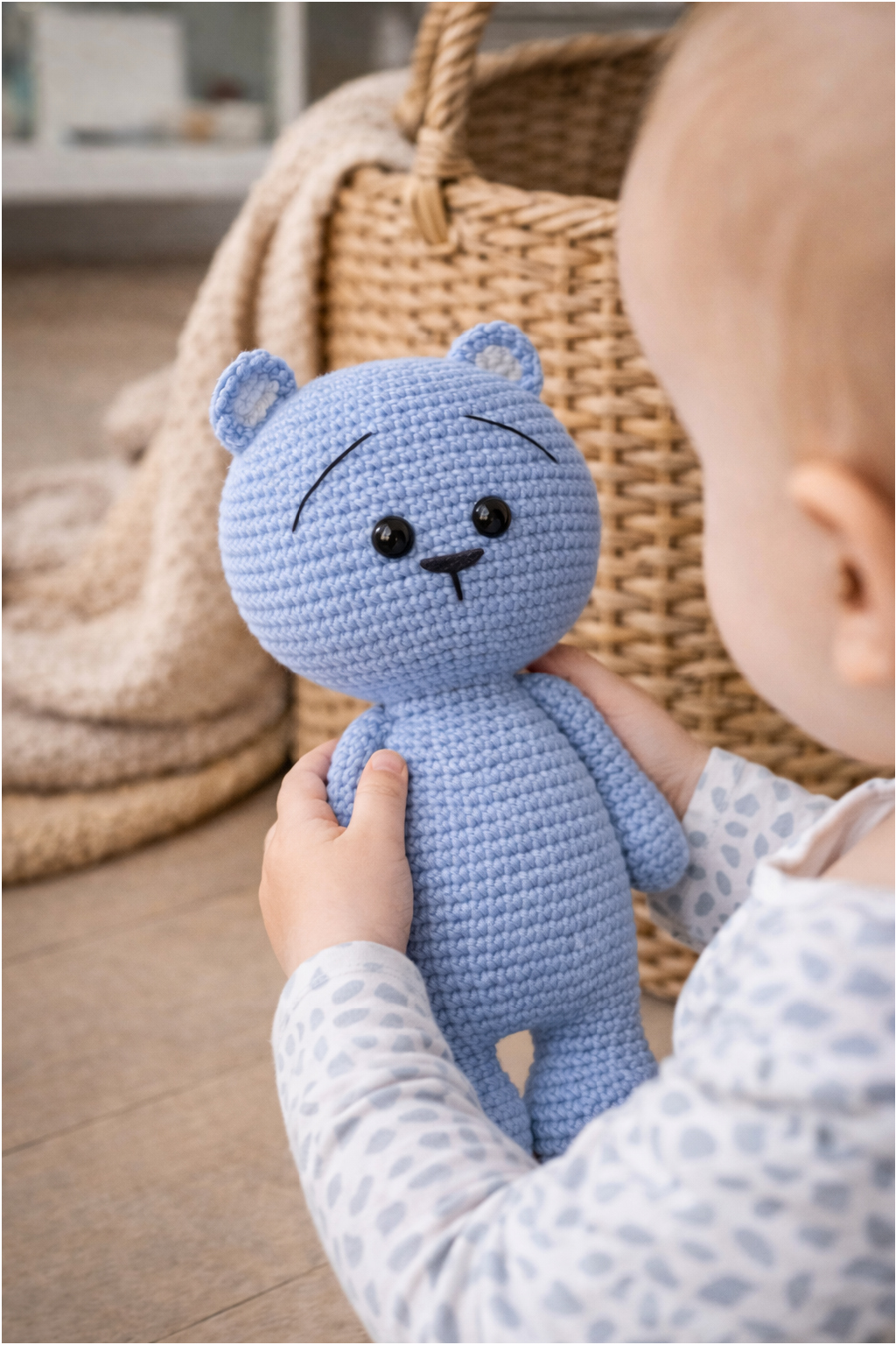 Háčkovaný medvídek Péťa, modrý