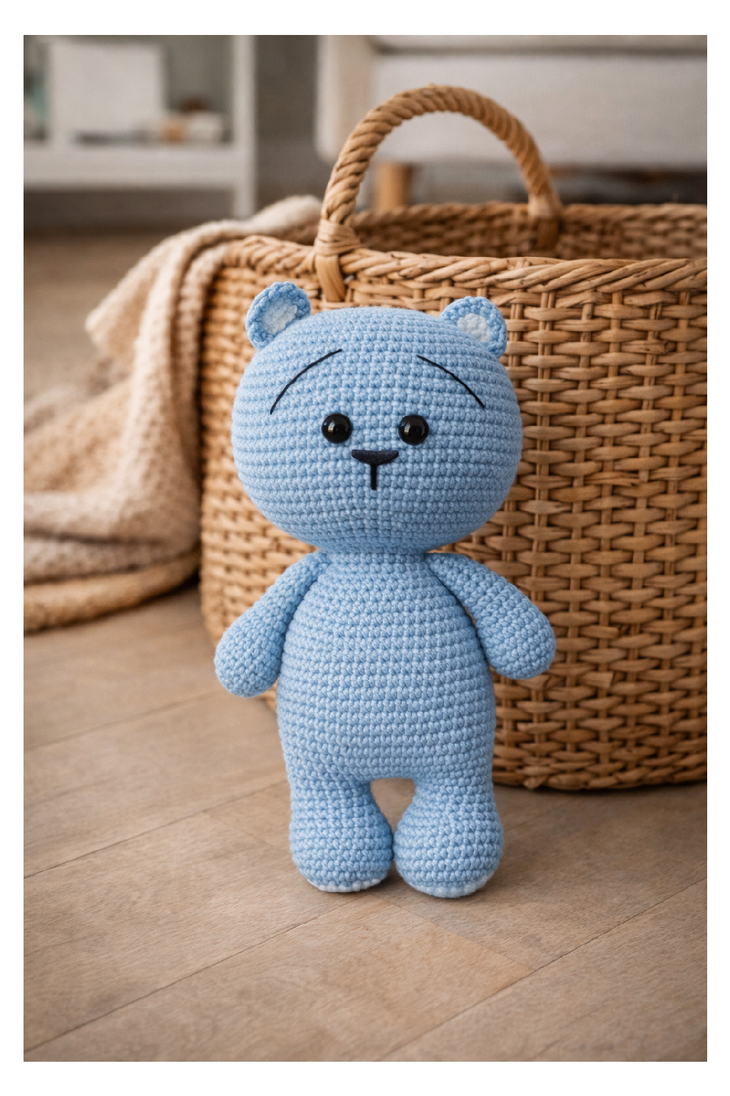 Ručně háčkovaný medvídek z měkoučké bavlněné příze Camilla. Tato příze se vyznačuje vysokou jemností, kterou si všichni oblíbili zejména pro háčkování hraček.