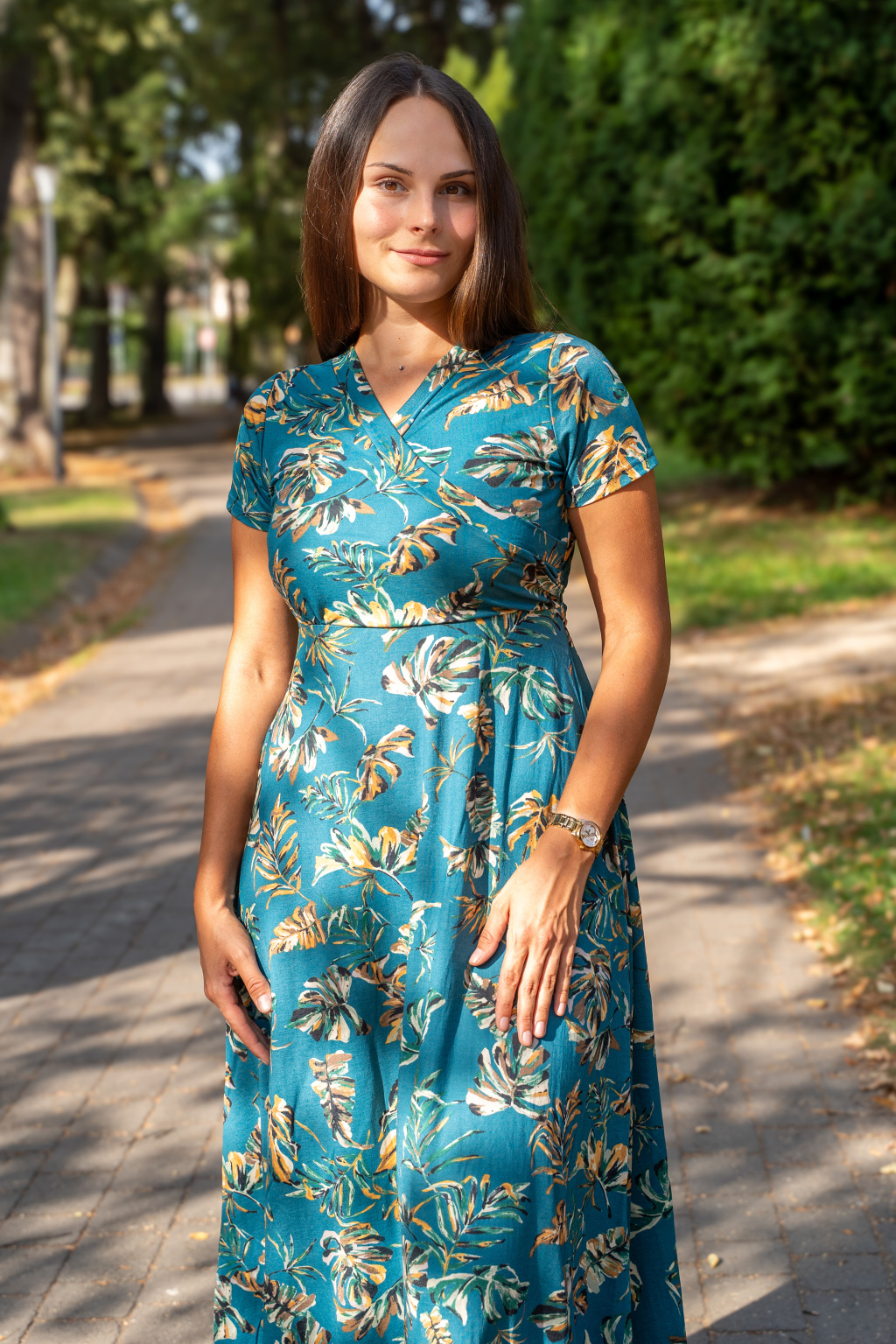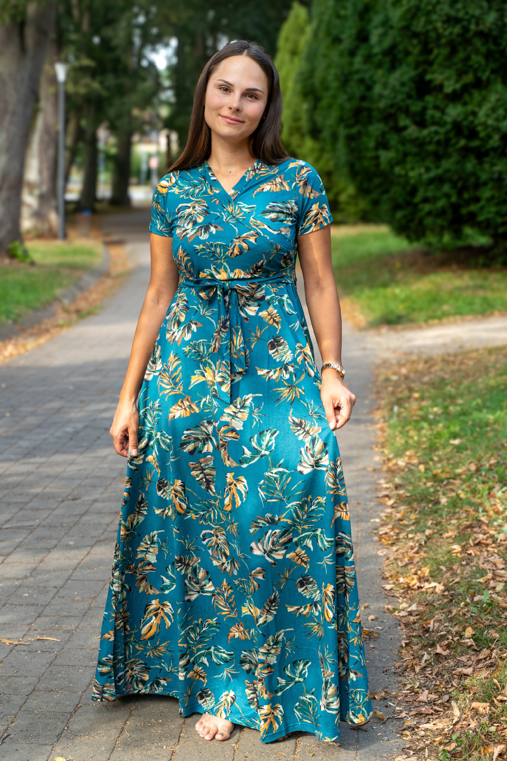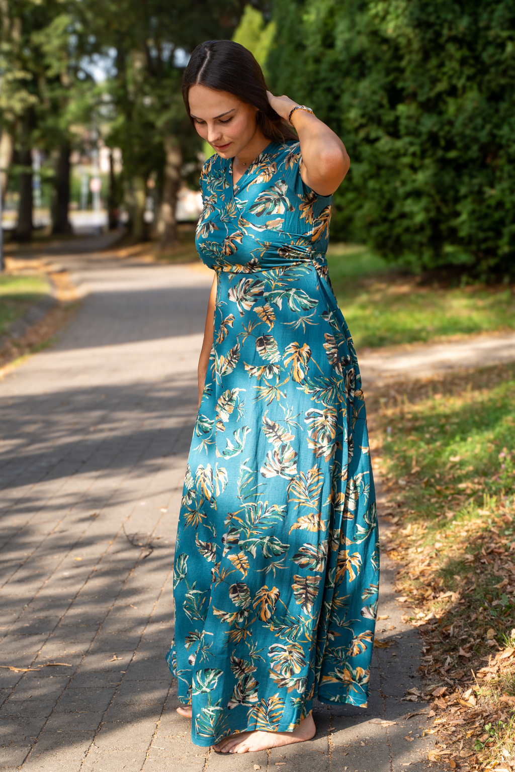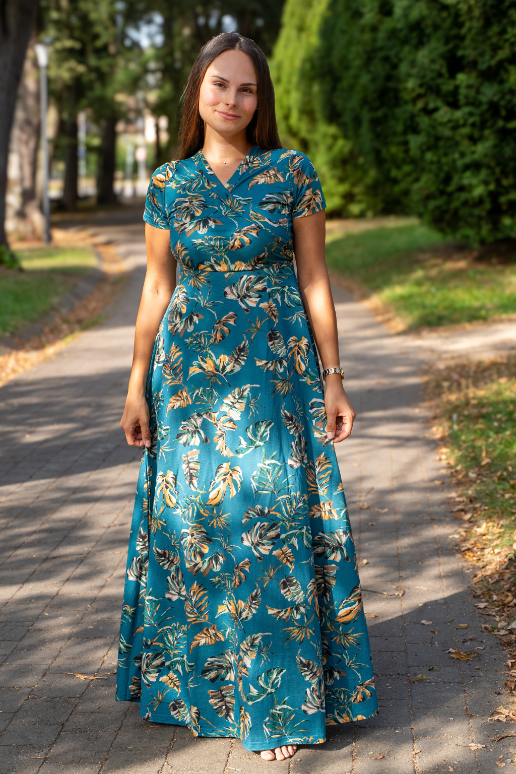 Kojicí MAXI šaty Jsem máma, modré s listy