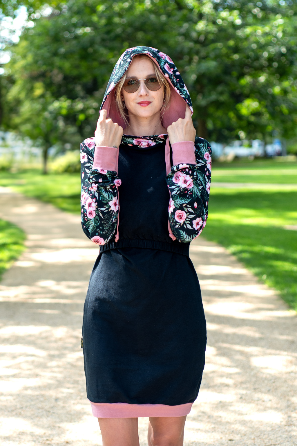 Mikinové šaty jsou do detailu promyšleny a sladěny do jednotného stylu. Mají velkou kapuci, která je ve stejném barevném provedení jako rukávy. Za povšimnutí stojí také barevné náplety či tkanice u kapuce, které jsou sladěny k celkovému designu šatů. Tyto volnočasové šaty se hodí k teniskám i na sportovní aktivity, ale perfektně ladí také s balerínami a kabelkou.
