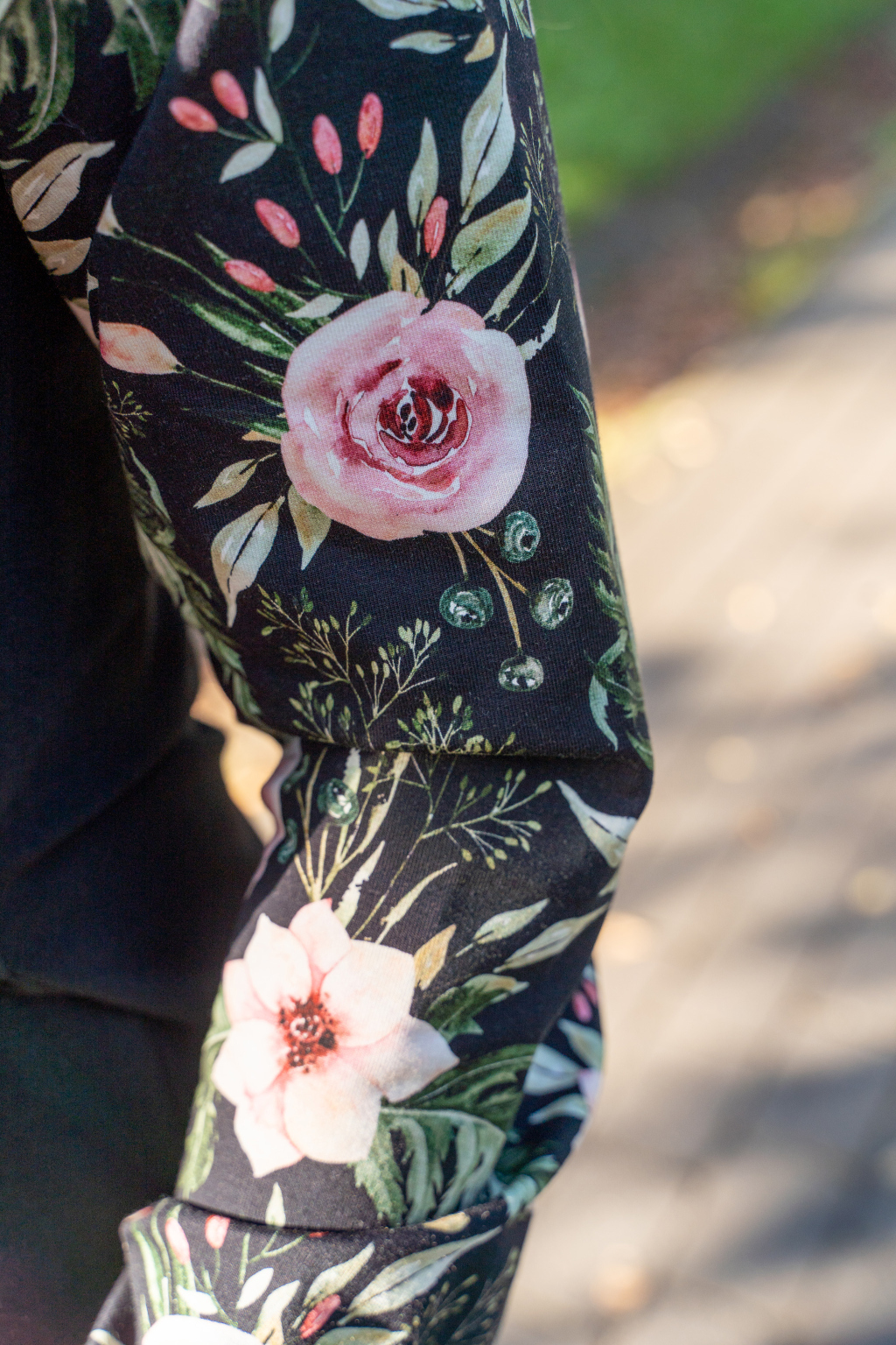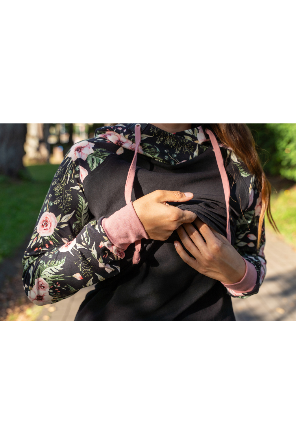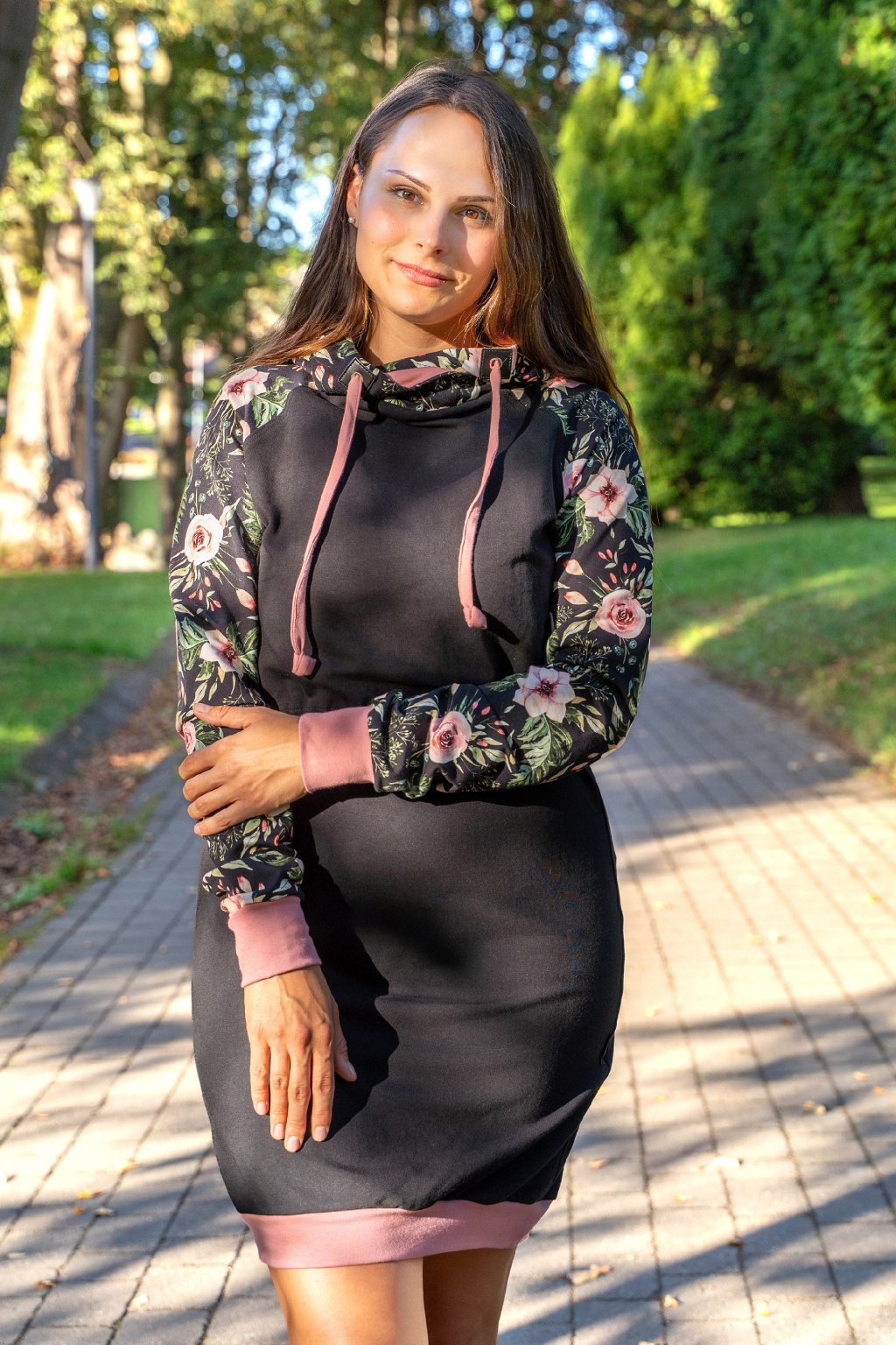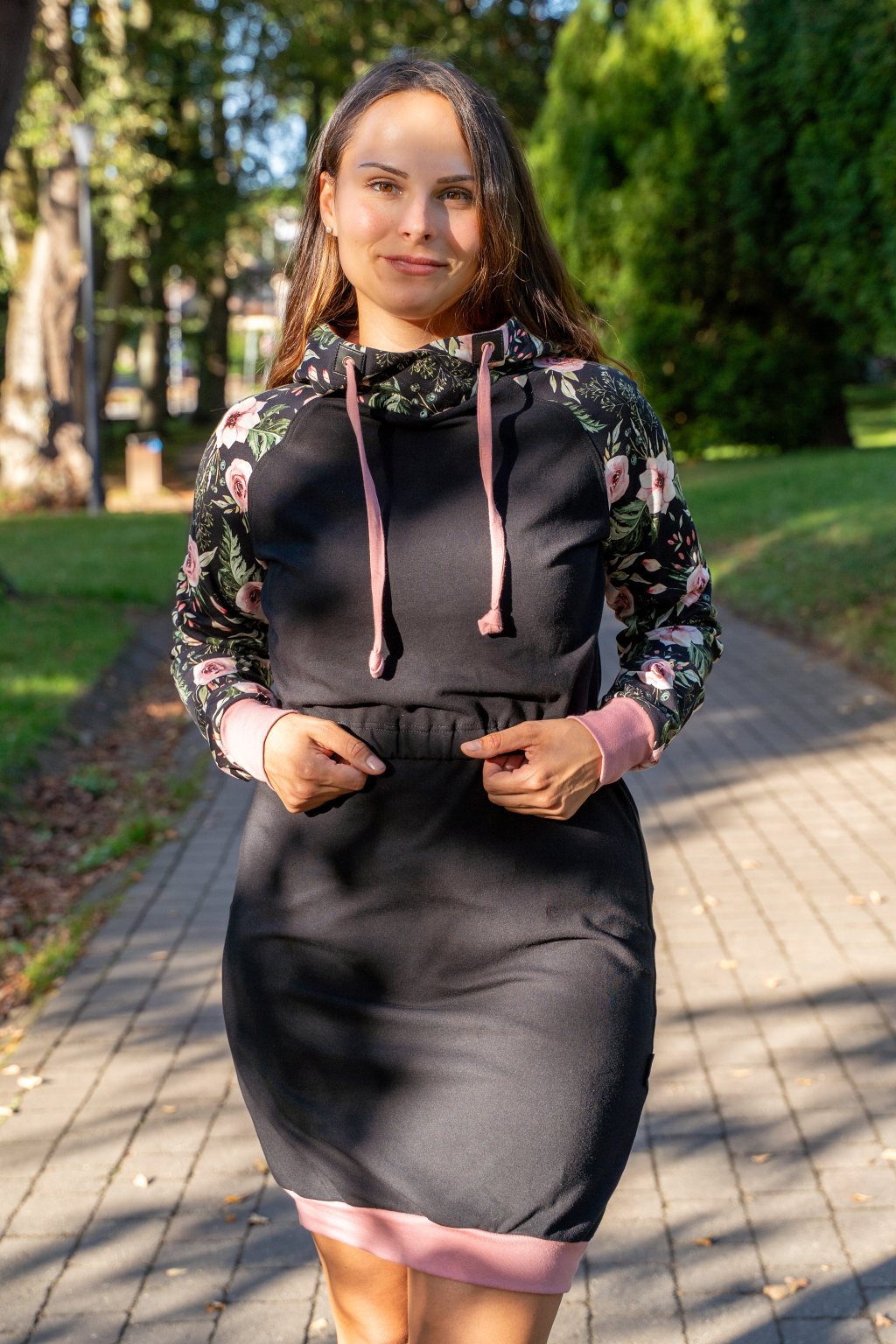 Kojicí mikinové šaty Jsem máma, černé s květy