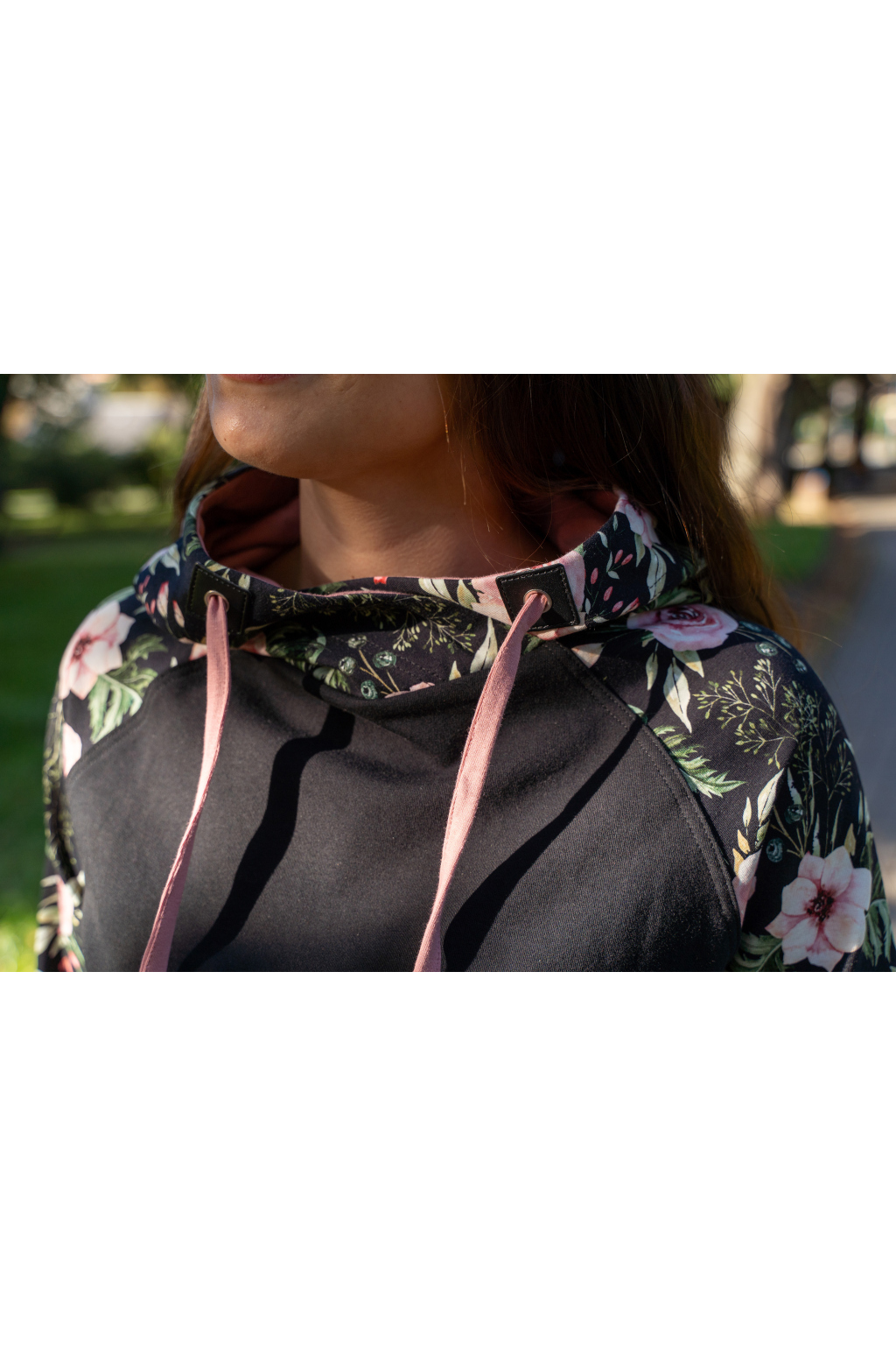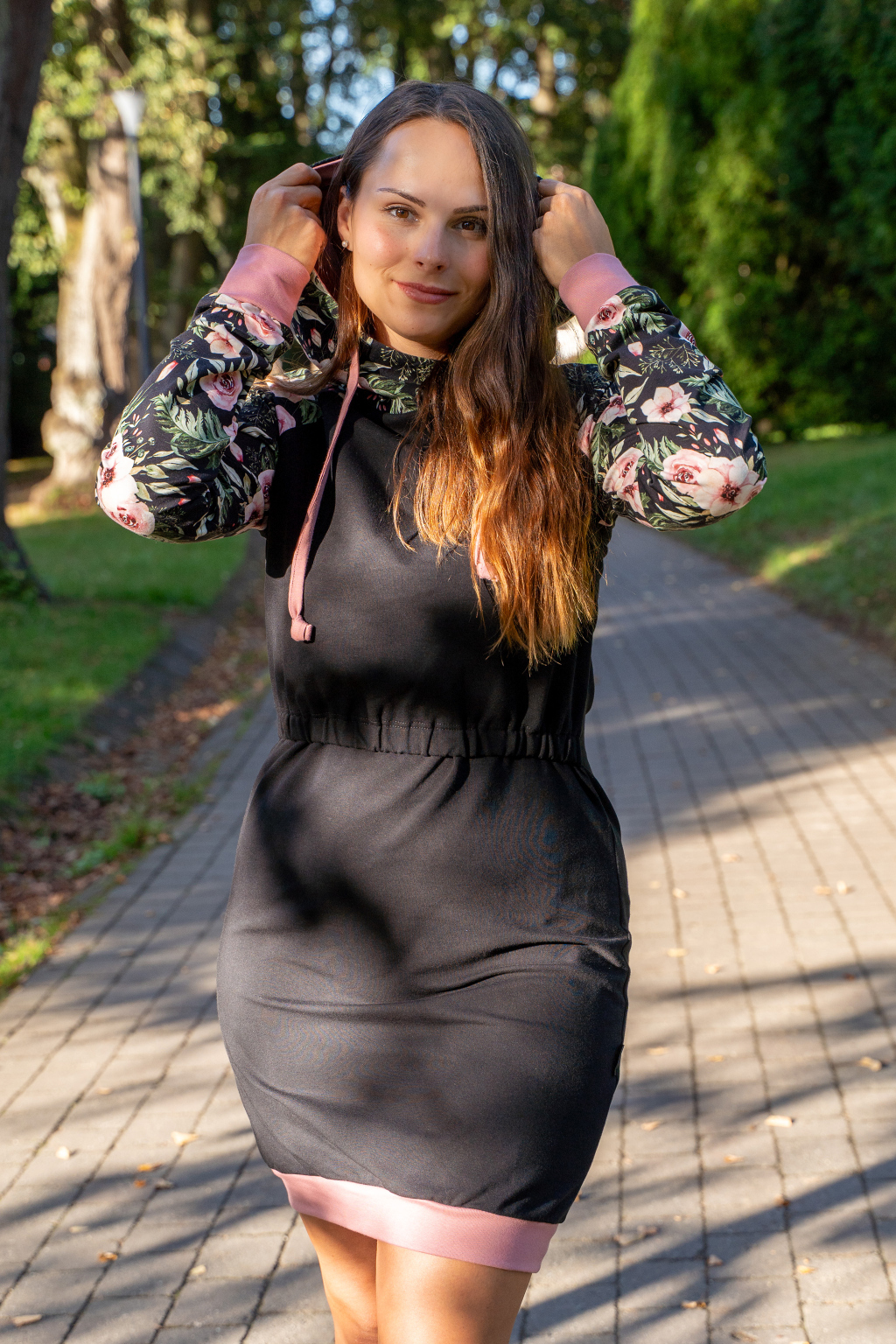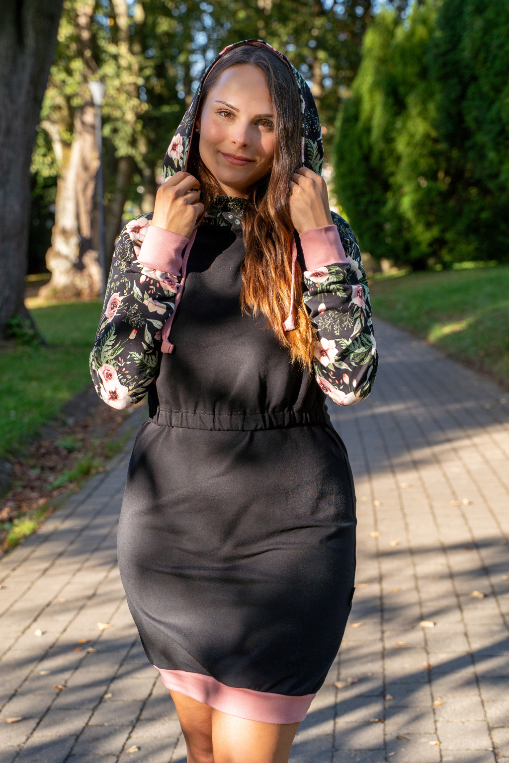 Mikinové šaty jsou do detailu promyšleny a sladěny do jednotného stylu. Mají velkou kapuci, která je ve stejném barevném provedení jako rukávy. Za povšimnutí stojí také barevné náplety či tkanice u kapuce, které jsou sladěny k celkovému designu šatů. Tyto volnočasové šaty se hodí k teniskám i na sportovní aktivity, ale perfektně ladí také s balerínami a kabelkou.