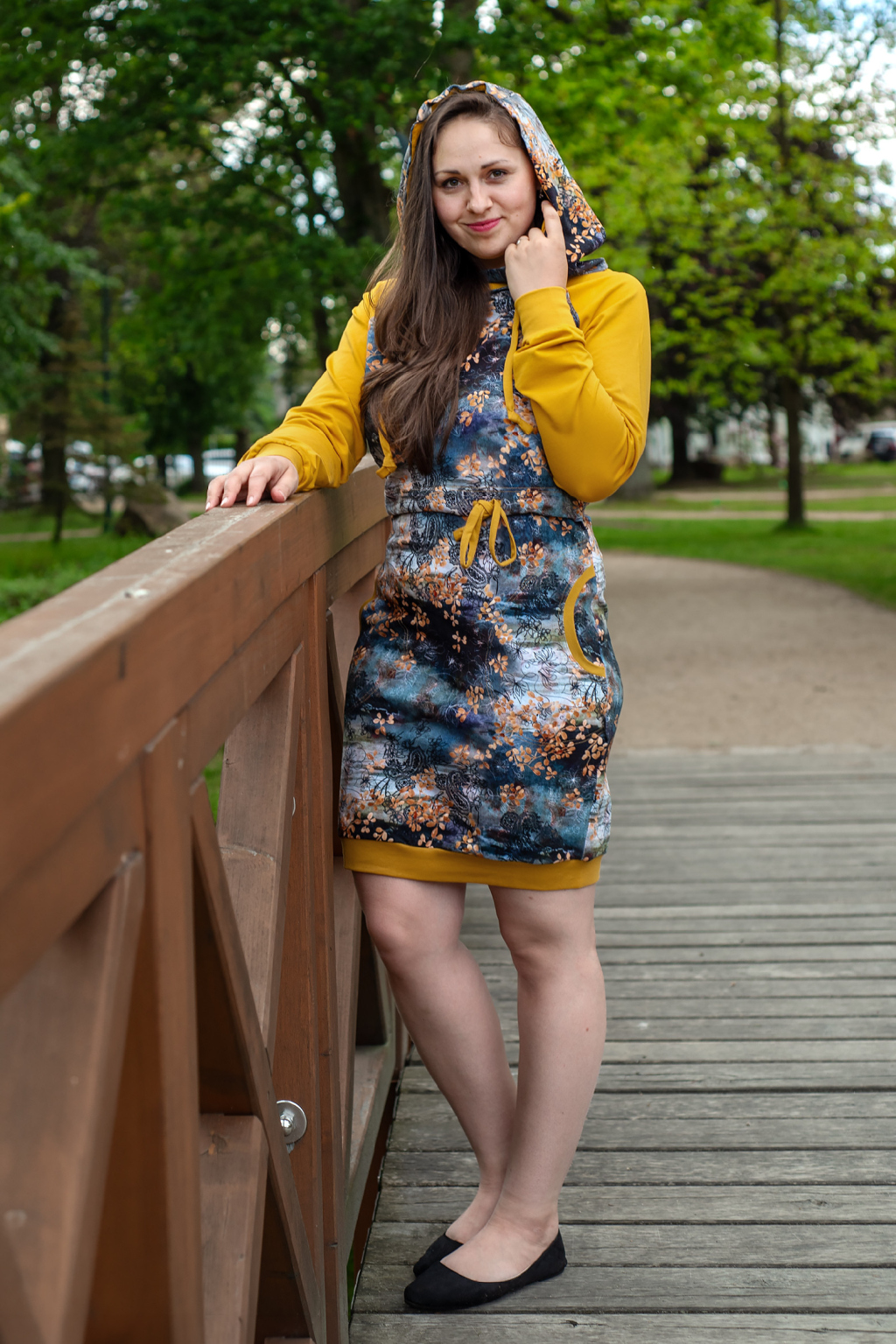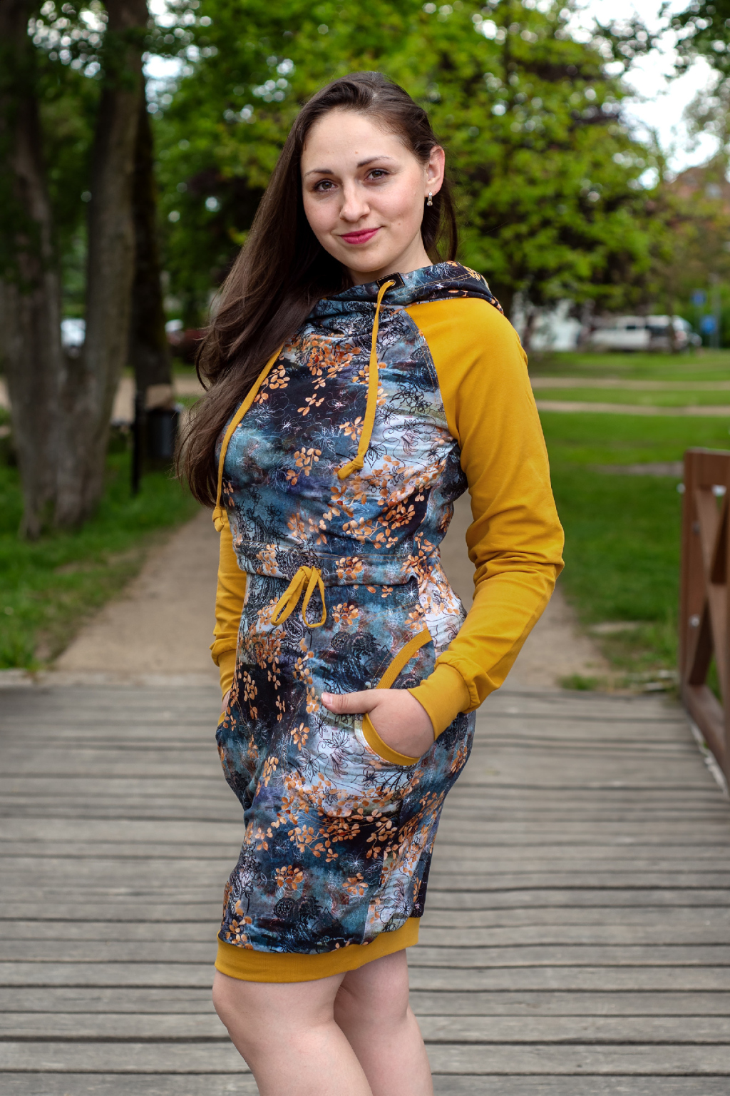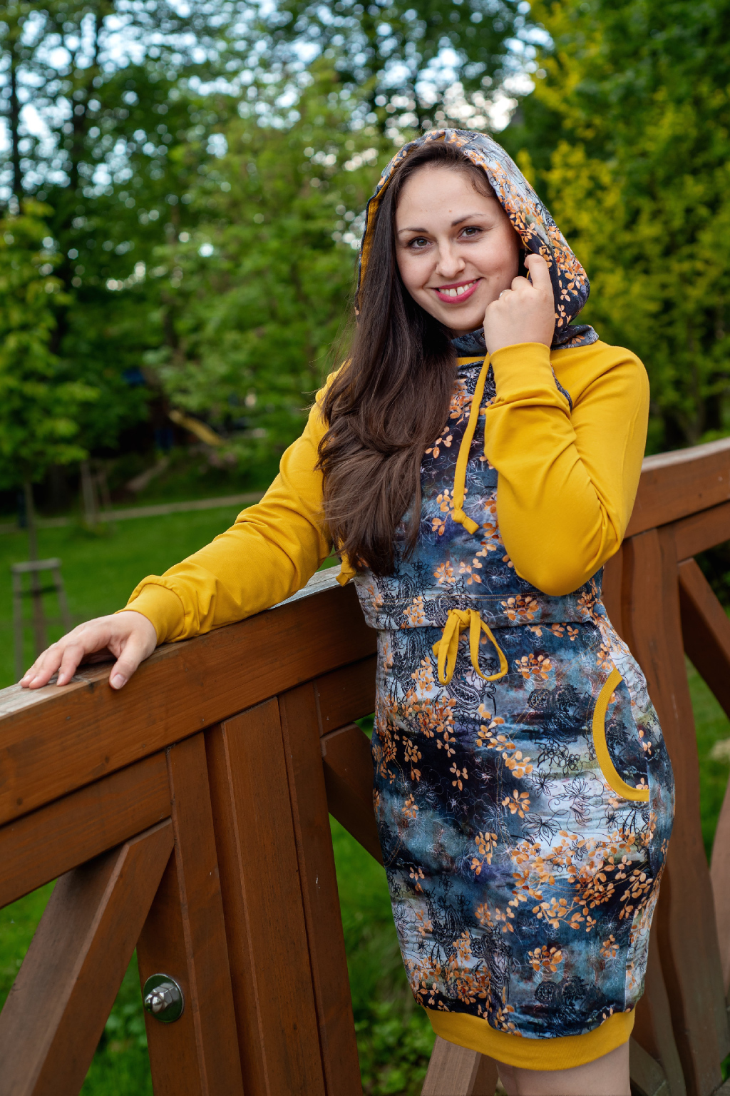 Mikinové šaty jsou do detailu promyšleny a sladěny do jednotného stylu. Mají velkou kapuci, kapsy a za povšimnutí stojí také barevné náplety či tkanice, které jsou sladěny k celkovému designu šatů. Tyto volnočasové šaty se hodí k teniskám i na sportovní aktivity, ale perfektně ladí také s balerínami a kabelkou.