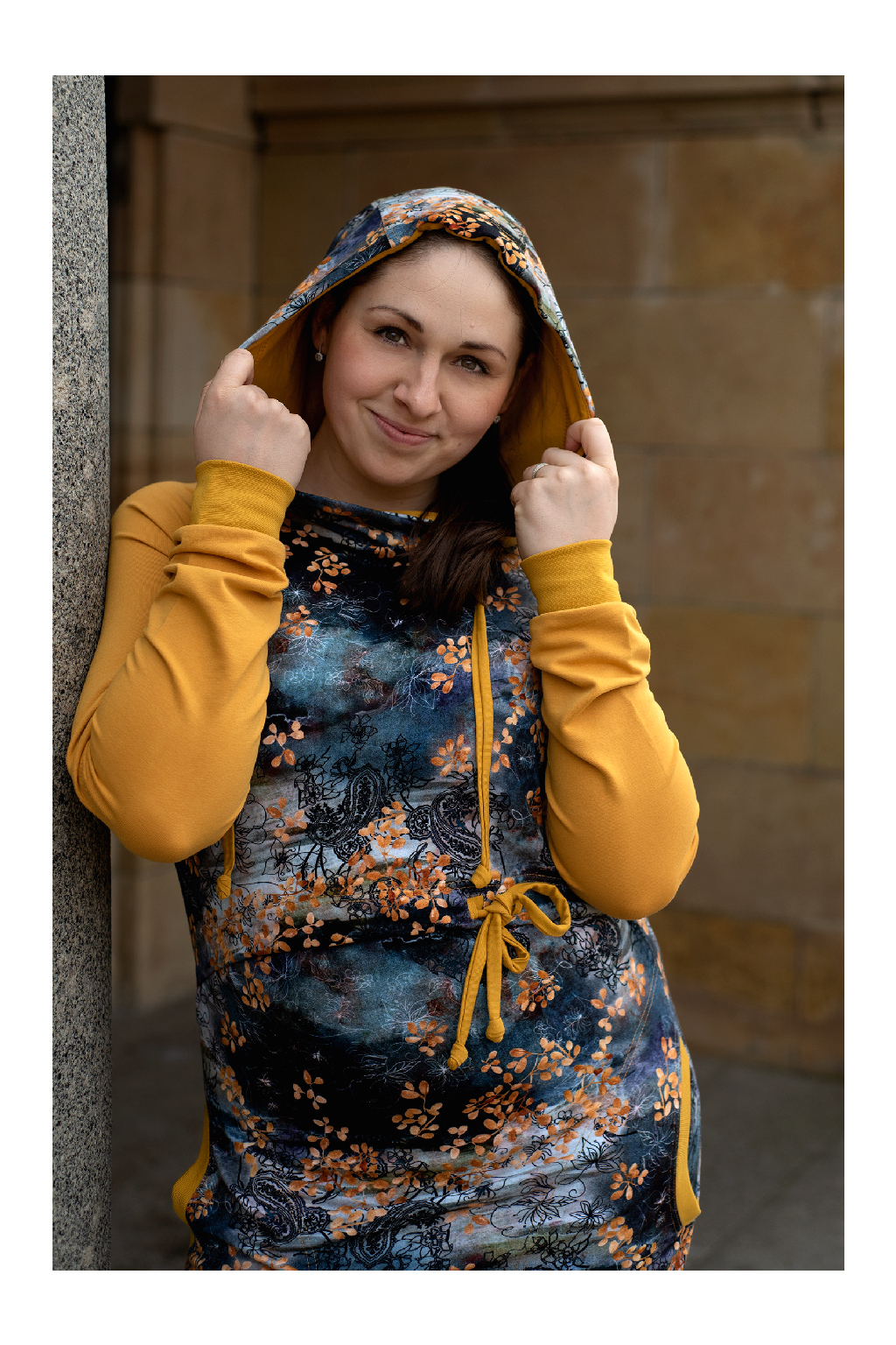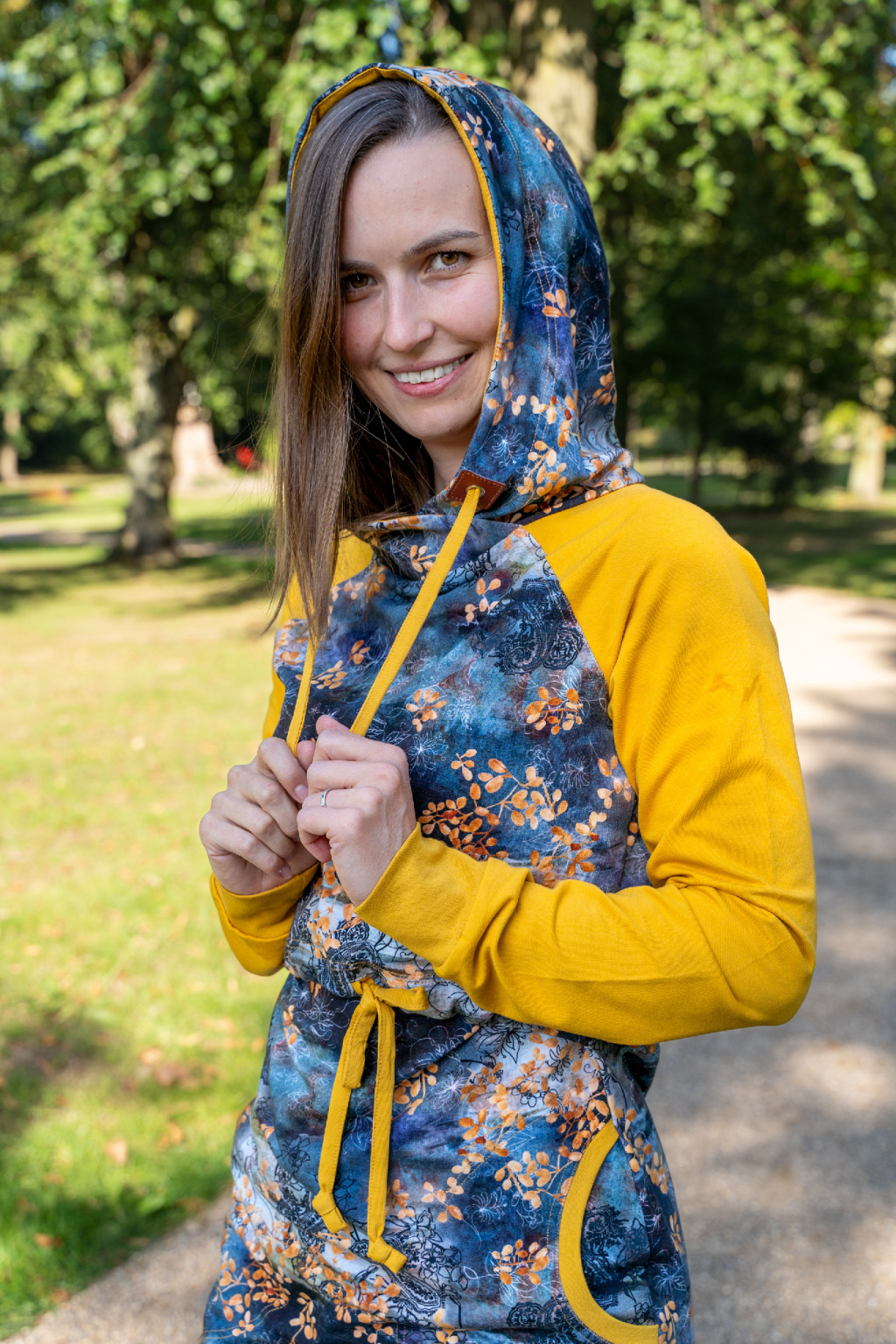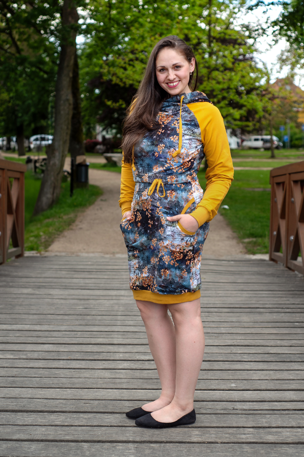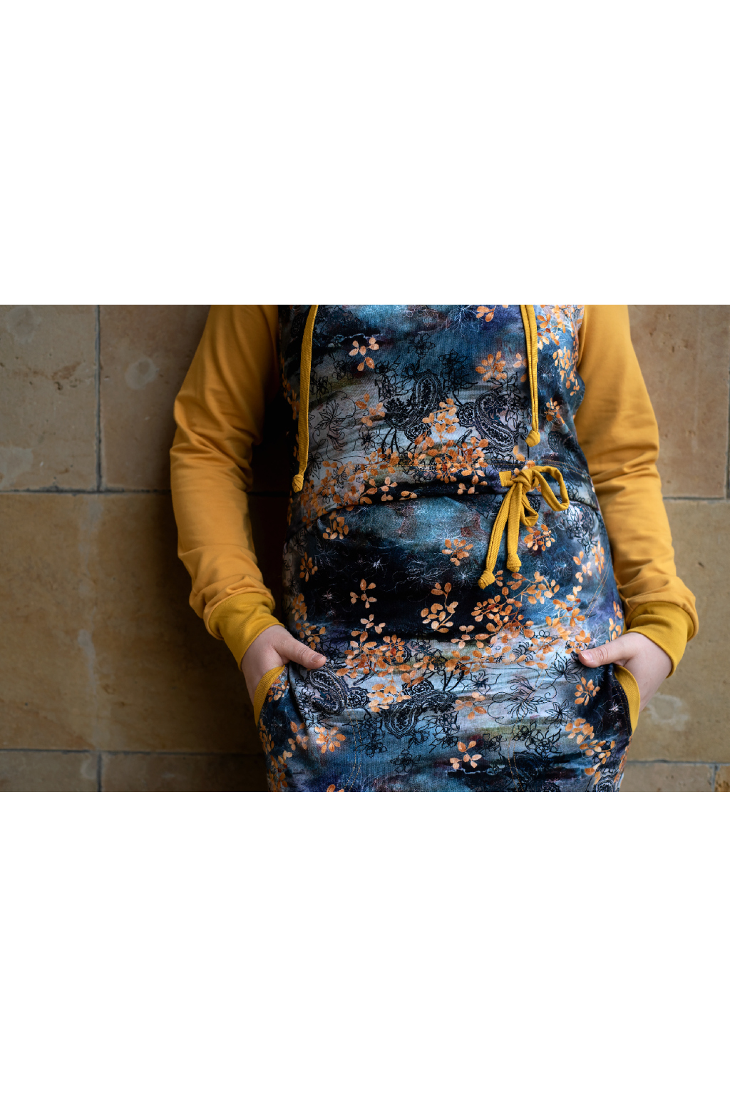 Mikinové šaty jsou do detailu promyšleny a sladěny do jednotného stylu. Mají velkou kapuci, kapsy a za povšimnutí stojí také barevné náplety či tkanice, které jsou sladěny k celkovému designu šatů. Tyto volnočasové šaty se hodí k teniskám i na sportovní aktivity, ale perfektně ladí také s balerínami a kabelkou.
