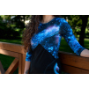 Dopřejte si kojicí šaty s galaktickým vzorem, které dokonale rozsvítí vaše hvězdné „já“. Černý základ modelu doplňuje bolerko v intenzivních modrých odstínech s motivy sahajícími za hranice našeho světa. Díky tomu outfit působí zároveň snově i futuristicky. Mateřství je doba, která nás dostává do nových dimenzí, je to doba osobního růstu i poznání. Oblékněte se do hvězdných šatů a vyjádřete svou víru v budoucnost!