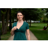 Tyto elegantní šaty s uzlem spojuje harmonie, půvab a jednoduchost. Použili jsme smaragdově zelenou, která je moderní a velmi žádaná, protože ji lze snadno kombinovat s různými doplňky a hodí se pro každou příležitost. Kojicí a těhotenské šaty Jsem máma vyrábíme v Česku z BIO bavlny s certifikací GOTS, která zaručuje vysokou kvalitu a ekologickou šetrnost.