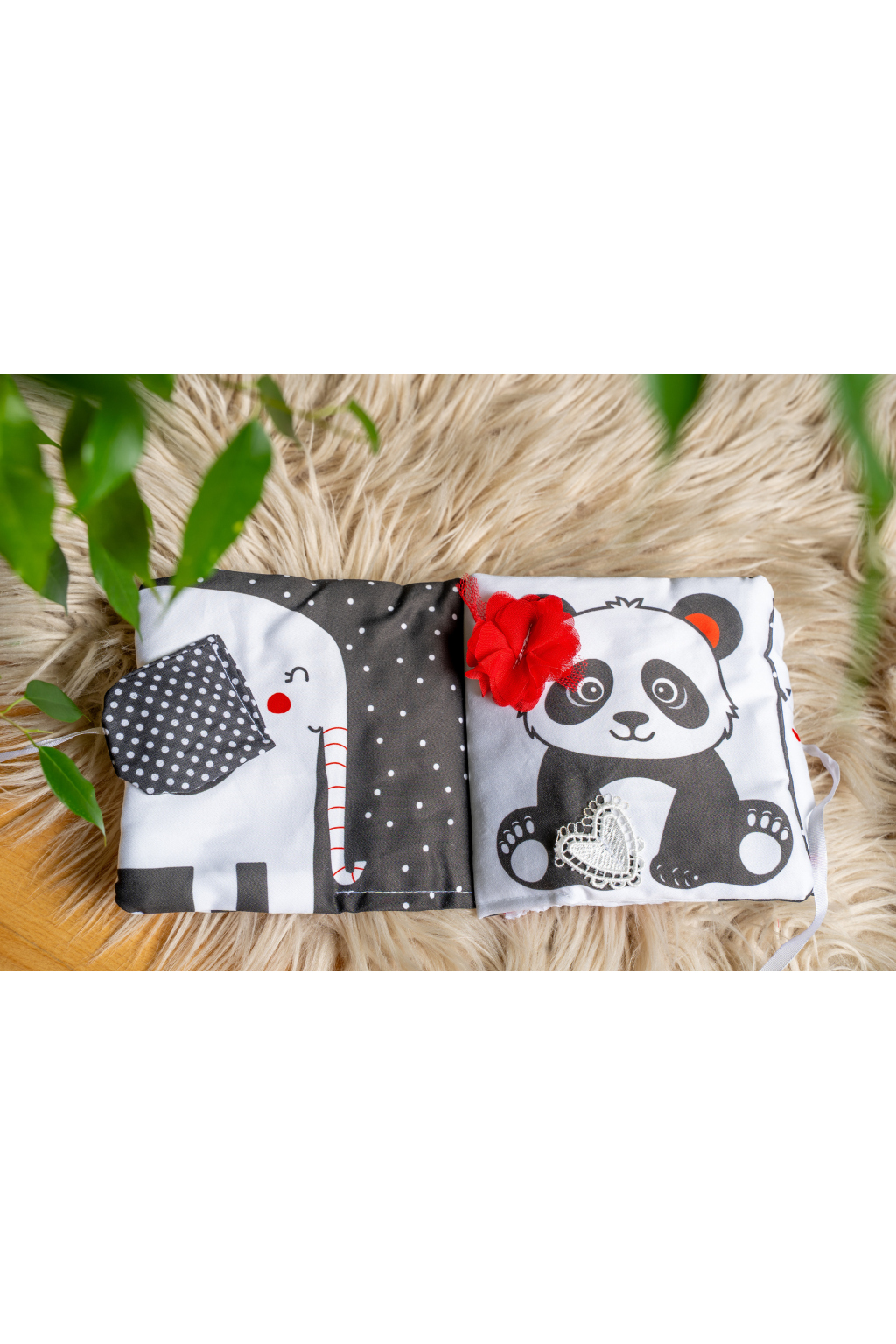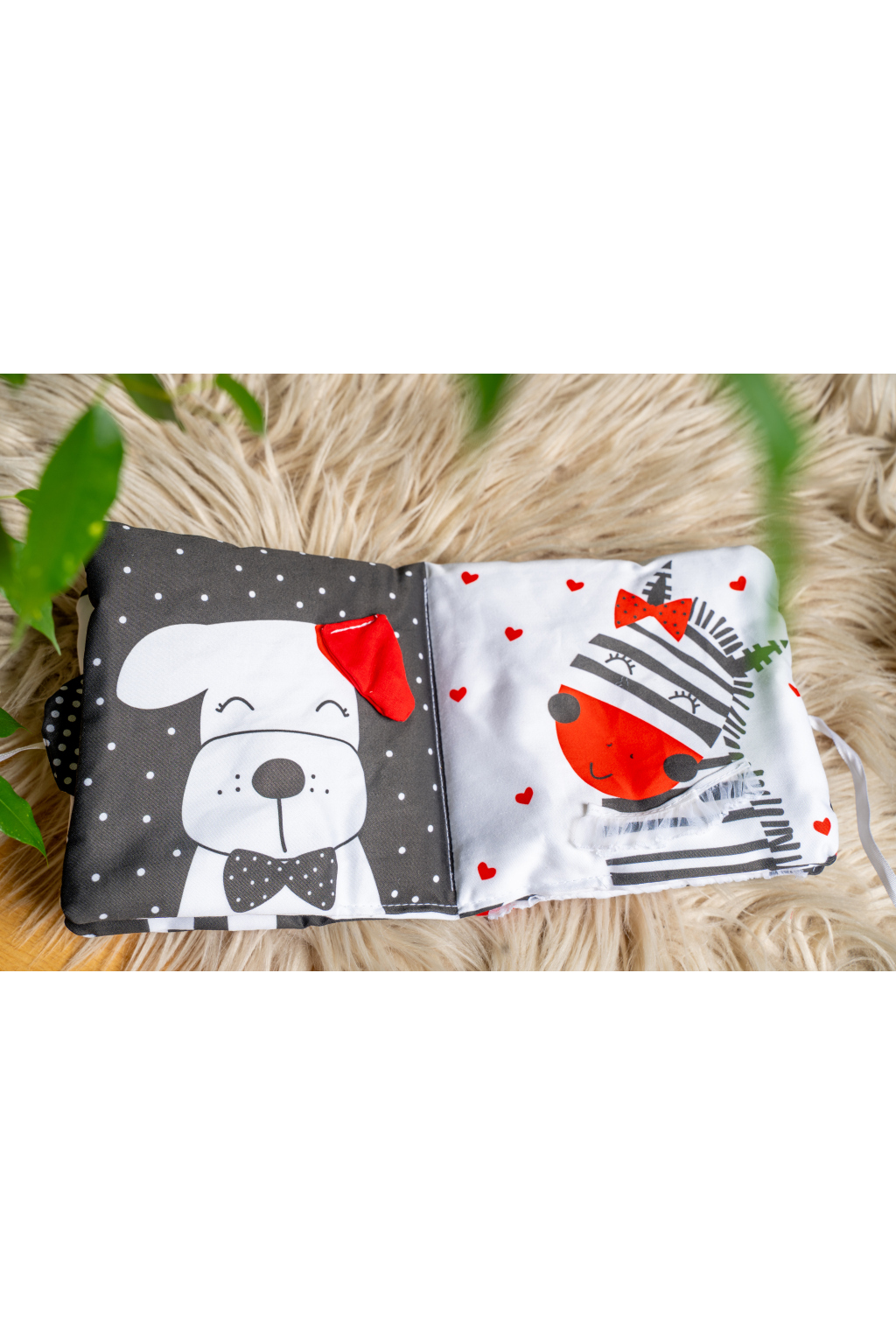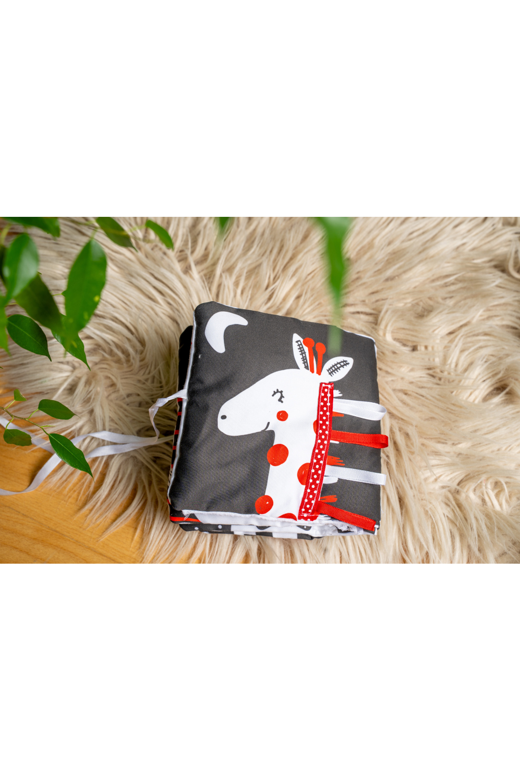 Černo-bílo-červená hmatová knížka zaujme nejen zrak vašeho miminka, pozornost upoutá také jemný chrastivý a šustivý zvuk, který bude děťátko podněcovat k tahání a cumlání. Díky několika hmatovým prvkům procvičí úchop, jemnou motoriku a schopnost soustředění. Tato didaktická kontrastní pomůcka se stane příjemným společníkem také při usínání. Můžete ji zavěsit do postýlky, do kočárku, nebo ponechat miminku jen tak na muchlání. Později můžete knížku využít k poznávání zvířátek a seznamování miminka s jejich zvuky.