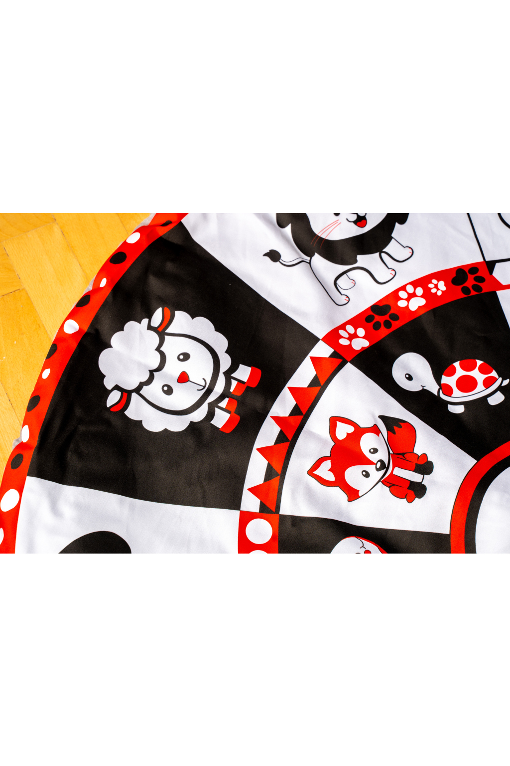 V samém středu této originální kulaté kontrastní deky sedí roztomilá beruška, která je obklopená celým světem zvířecích kamarádů. Kolem ní se v kruhu střídají zvířátka z lesa, statku i safari – lištička, ježeček, veverka, zajíček, želvička, kačenka, lvíček, žirafa, kočička, pejsek, kravička, koník, sloník, opička a další roztomilé postavičky.