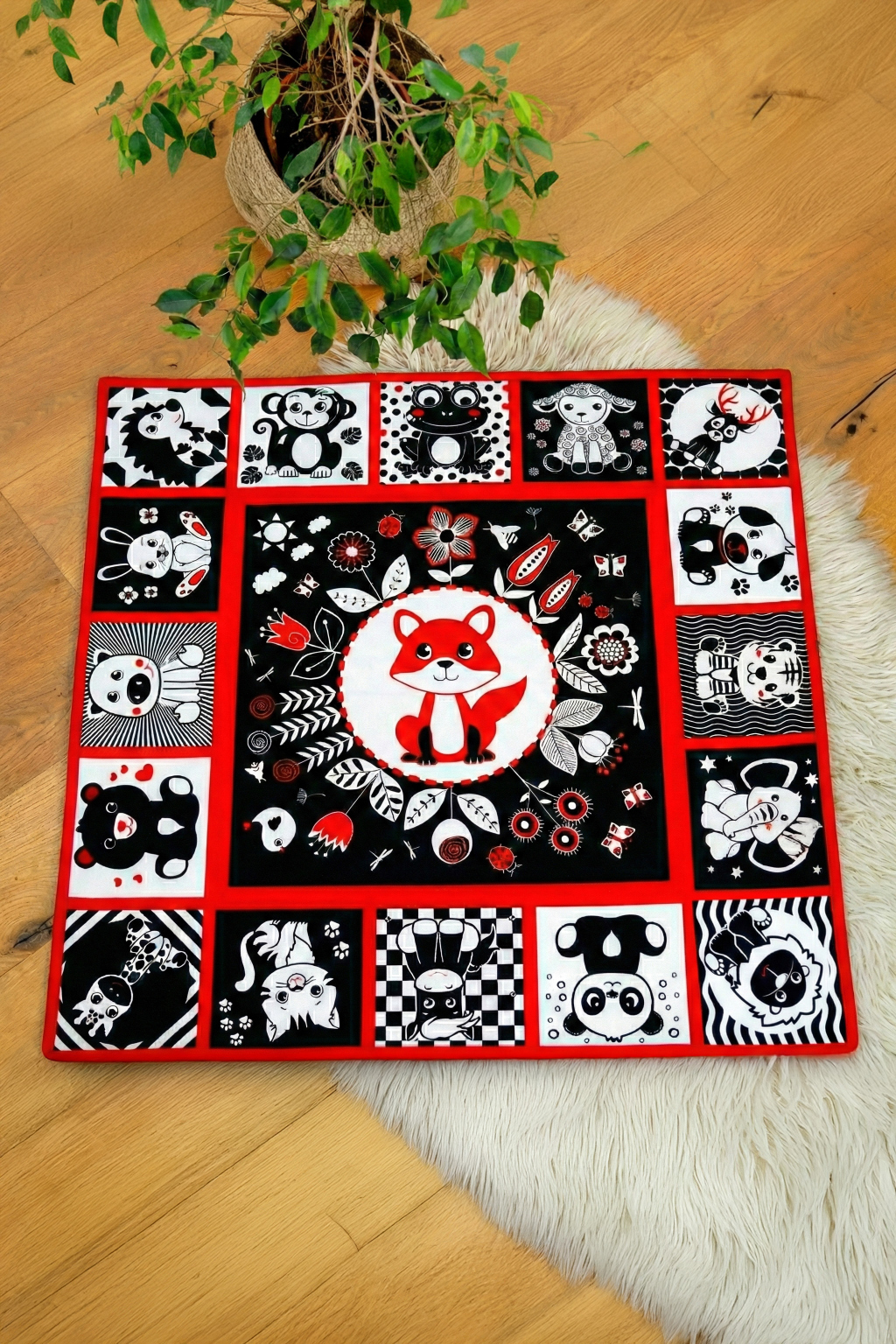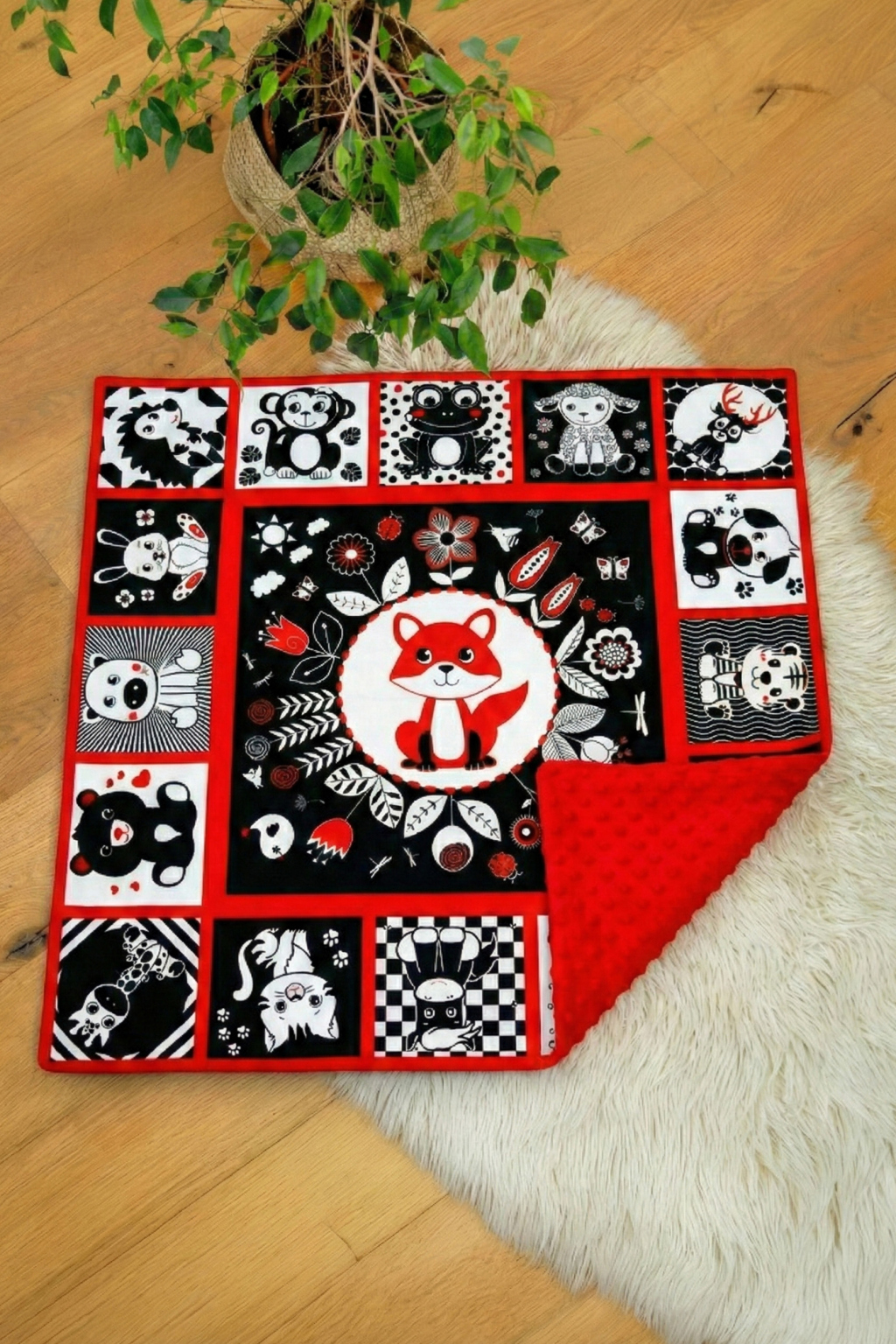 Kontrastní hrací deka, maxi, liška