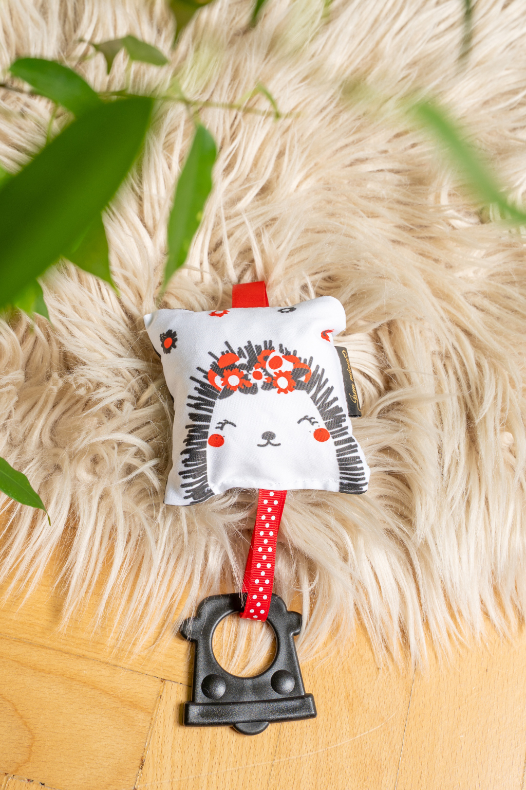 Kontrastní mini polštářek s kousátkem, ježeček