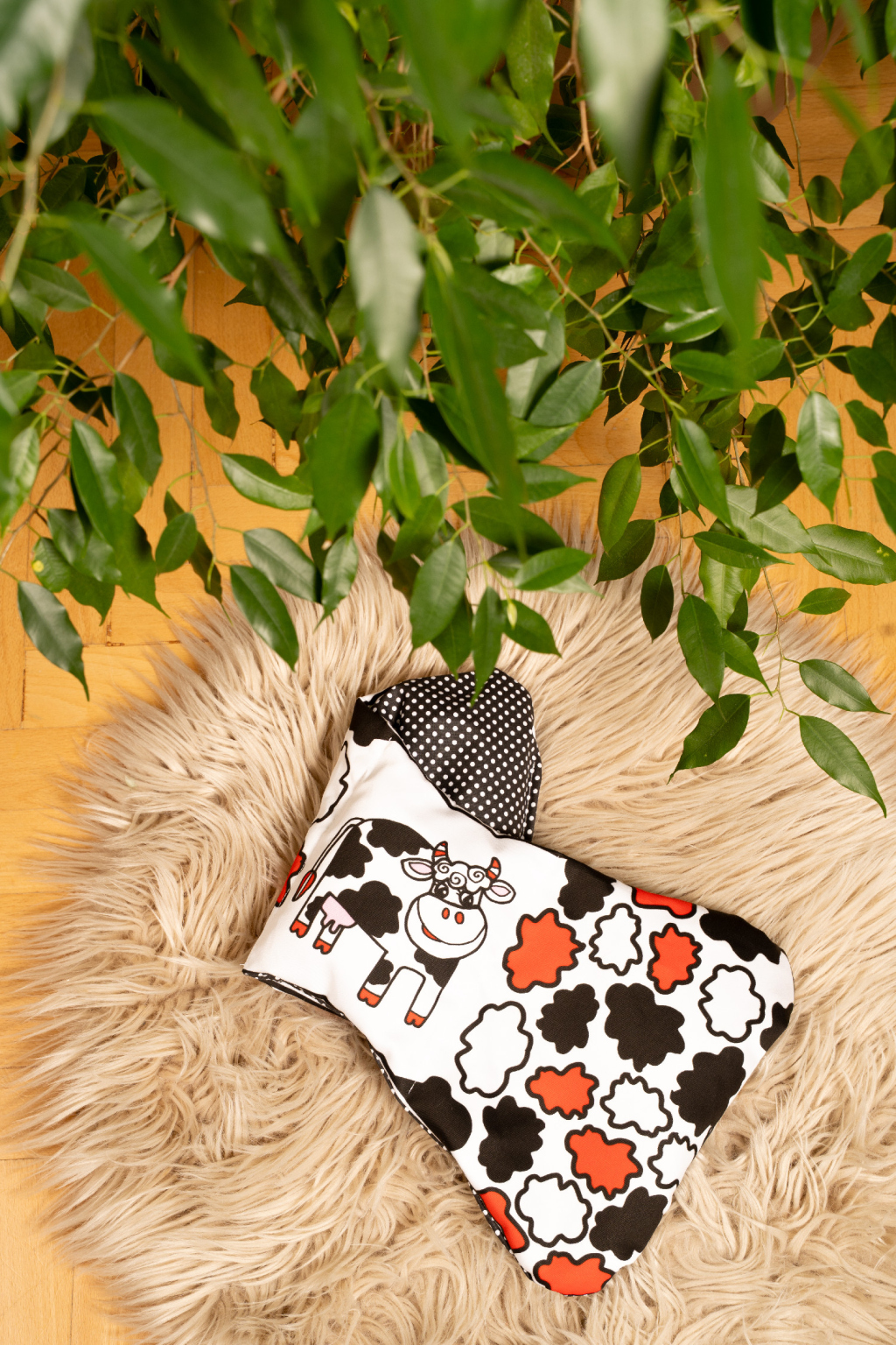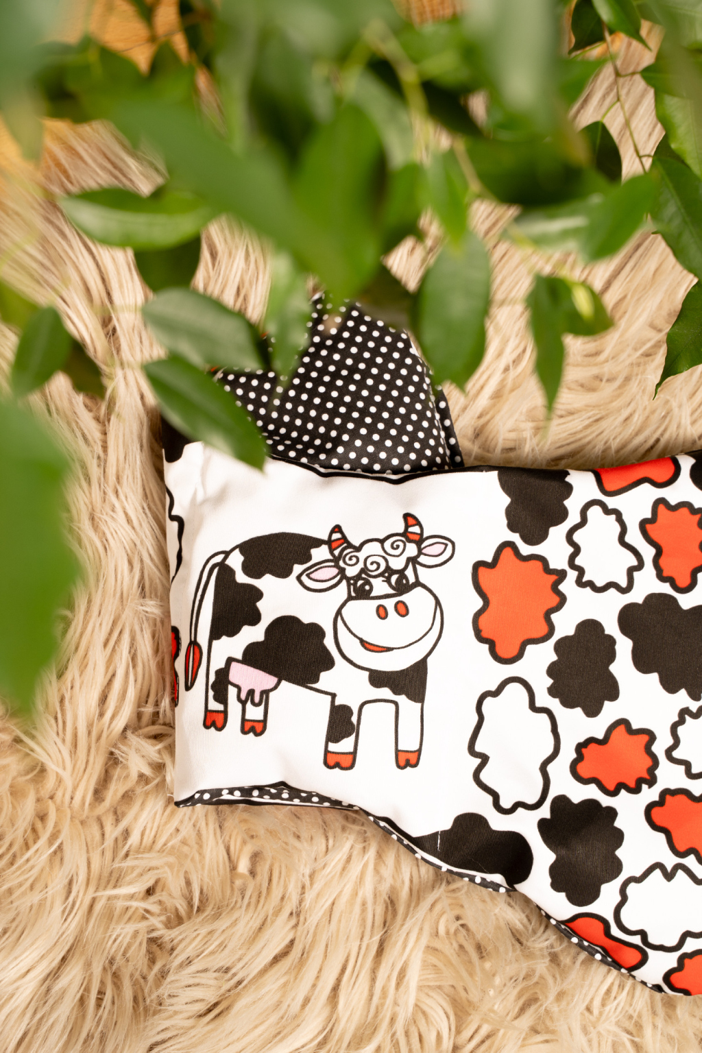 Kontrastní nahřívací polštářek 42x22 Kravička