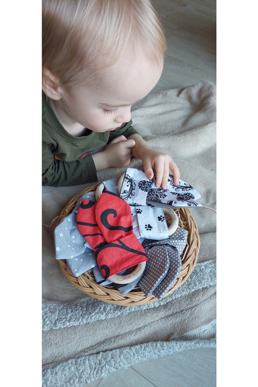 Naše handmade kousátko přinese vašemu dítěti radost a vám trochu klidu. Tento produkt nejenže zabaví a rozvíjí zvědavost, ale také uleví od bolesti při růstu prvních zoubků. Kousátko stimulací hmatu, sluchu a zraku dítěte podporuje smyslový a motorický vývoj.