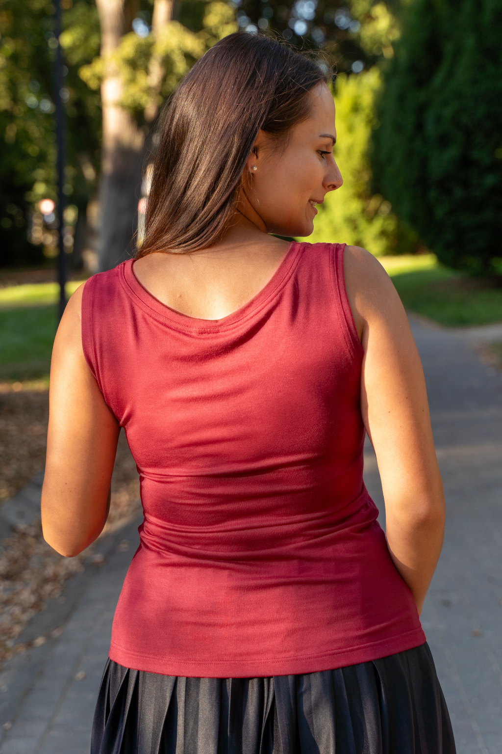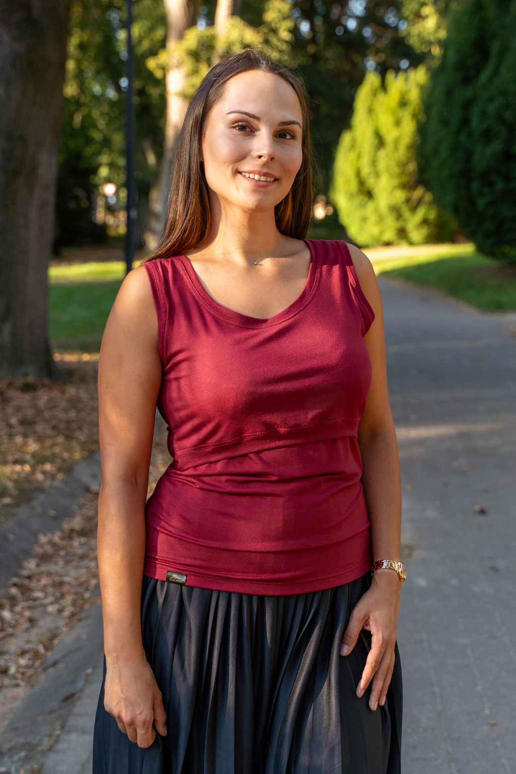 Tílko má projmutý střih a nenajdete u něj boční řasení pro těhotenské bříško, které útlým pasům plandá a špatně sedí. Přesto díky své pružnosti a délce dokáže těhotenskému či poporodnímu bříšku poskytnout dostatek pohodlí. Tílko řadíme do skupiny MUST HAVE!