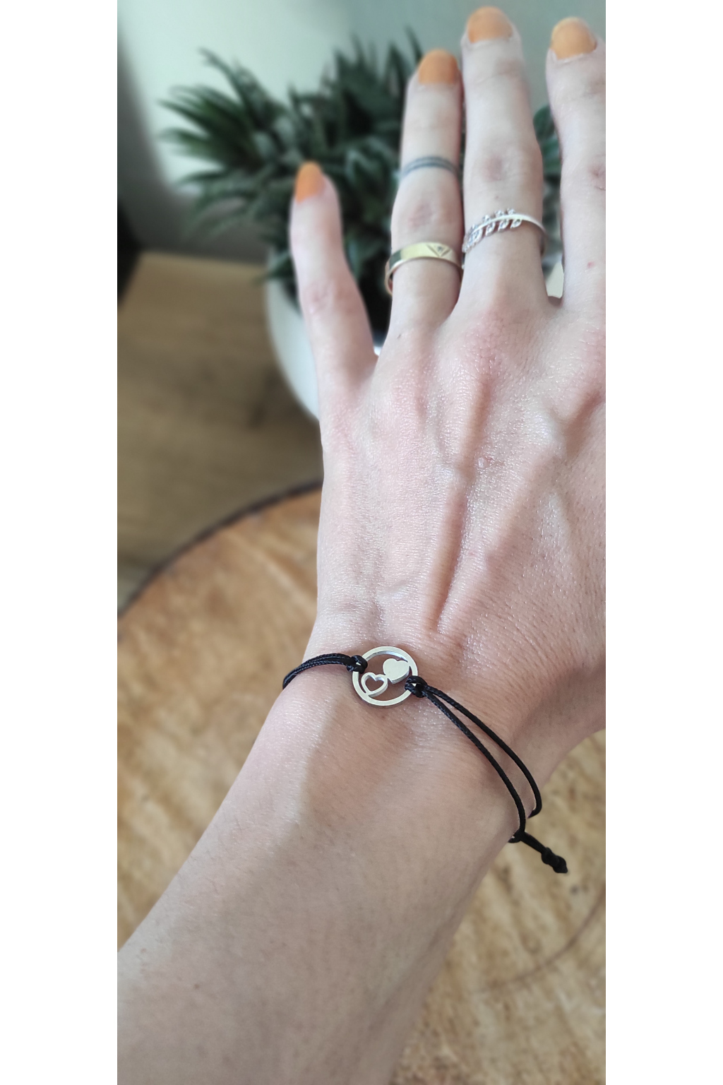 Náramek se stříbrným srdcem, černý