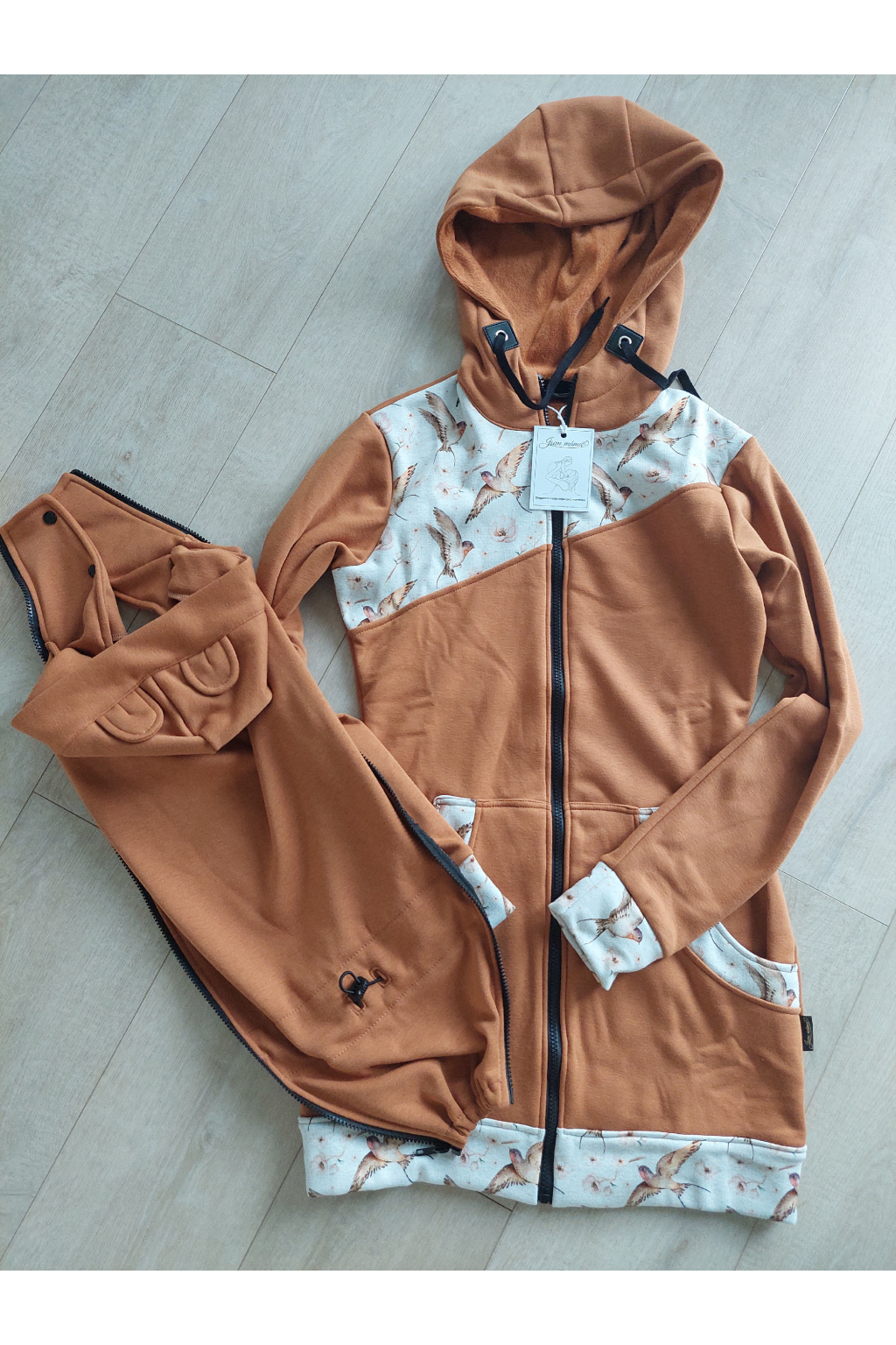 Zachumlejte se s vaším miminkem do barev podzimu! Okrový odstín je dokonalým ztělesněním přirozenosti. Je úžasně nenucený, klidný a ve spojení s malebným vlaštovkovým vzorem zaujme půvabem i hravostí. Tento kousek jsme navrhli tak, aby vše perfektně ladilo – od větruvzdorných nápletů na rukávech až po roztomilost v podobě oušek na kapucce miminka. Věřte, jakmile se do téhle mikiny jednou zachumláte, už se vám z ní nebude chtít ven. Ani jednomu!