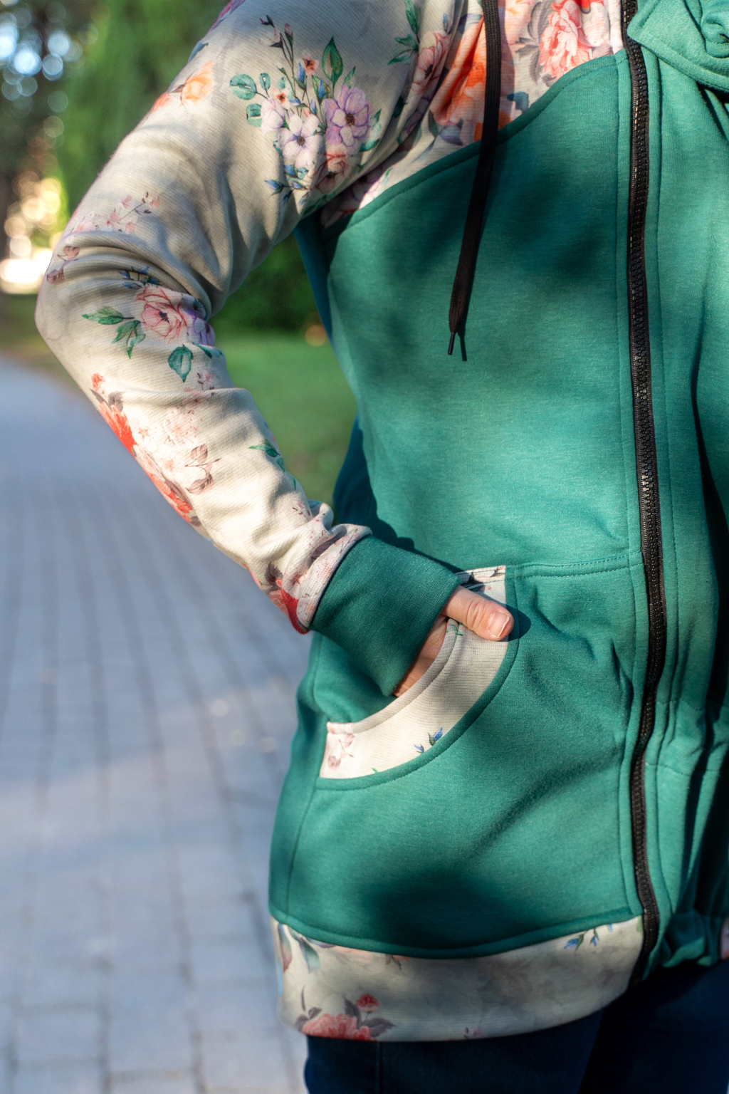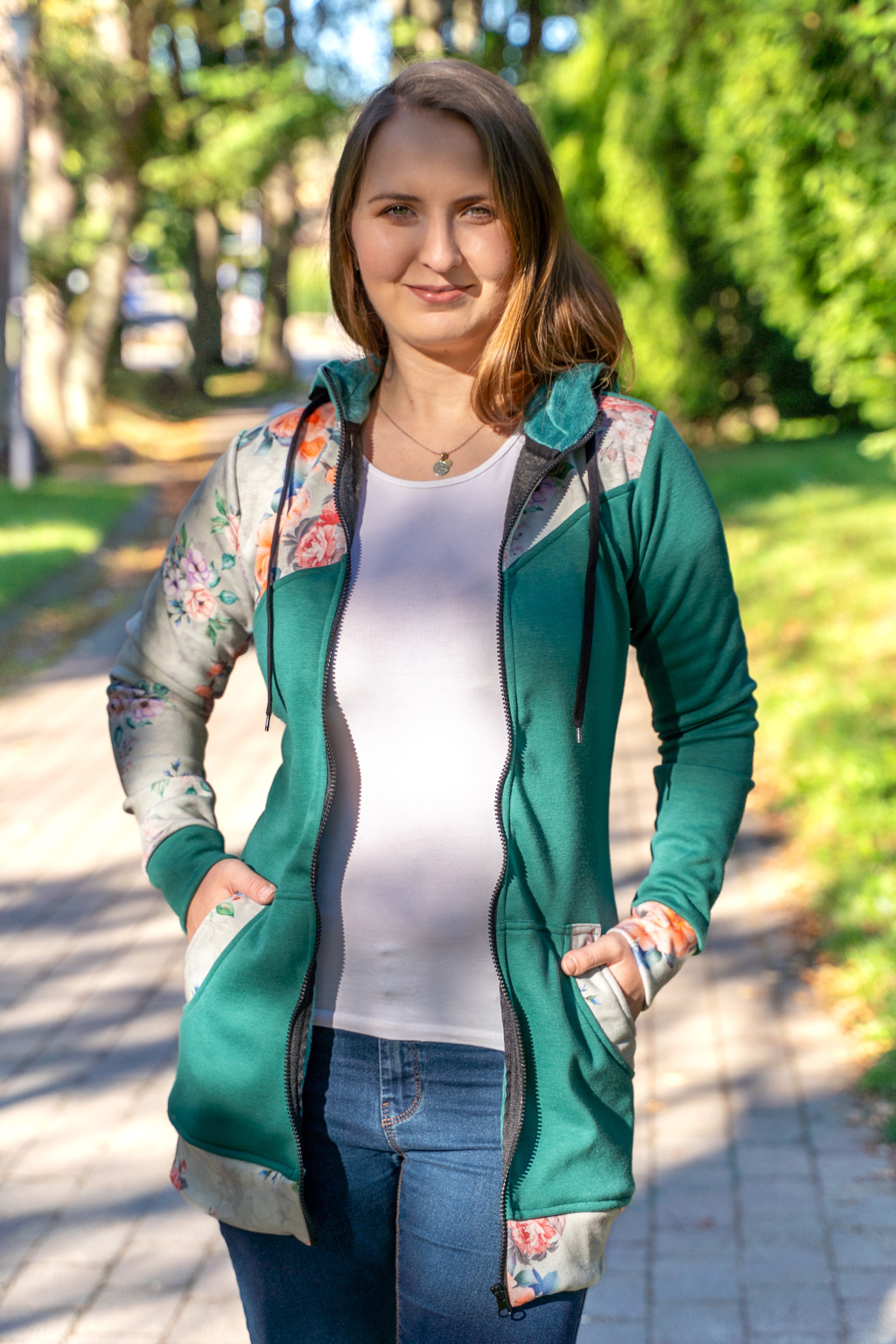 Střih mikiny je krásně ženský, elegantní, výborně sedí a skvěle funguje i samostatně, bez vsadky. Až vaše miminko povyroste, nemusíte se svého oblíbeného kousku vzdávat.