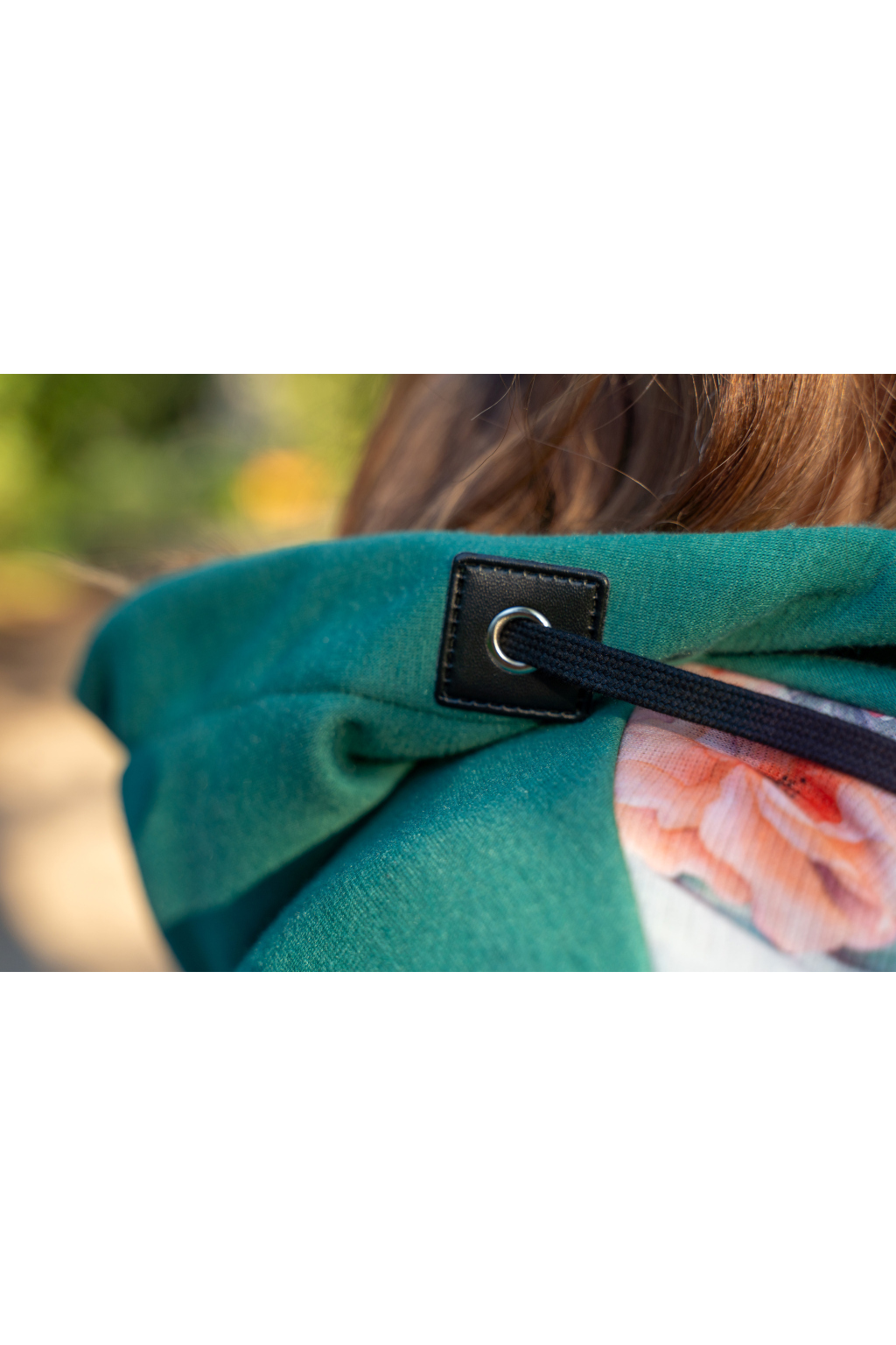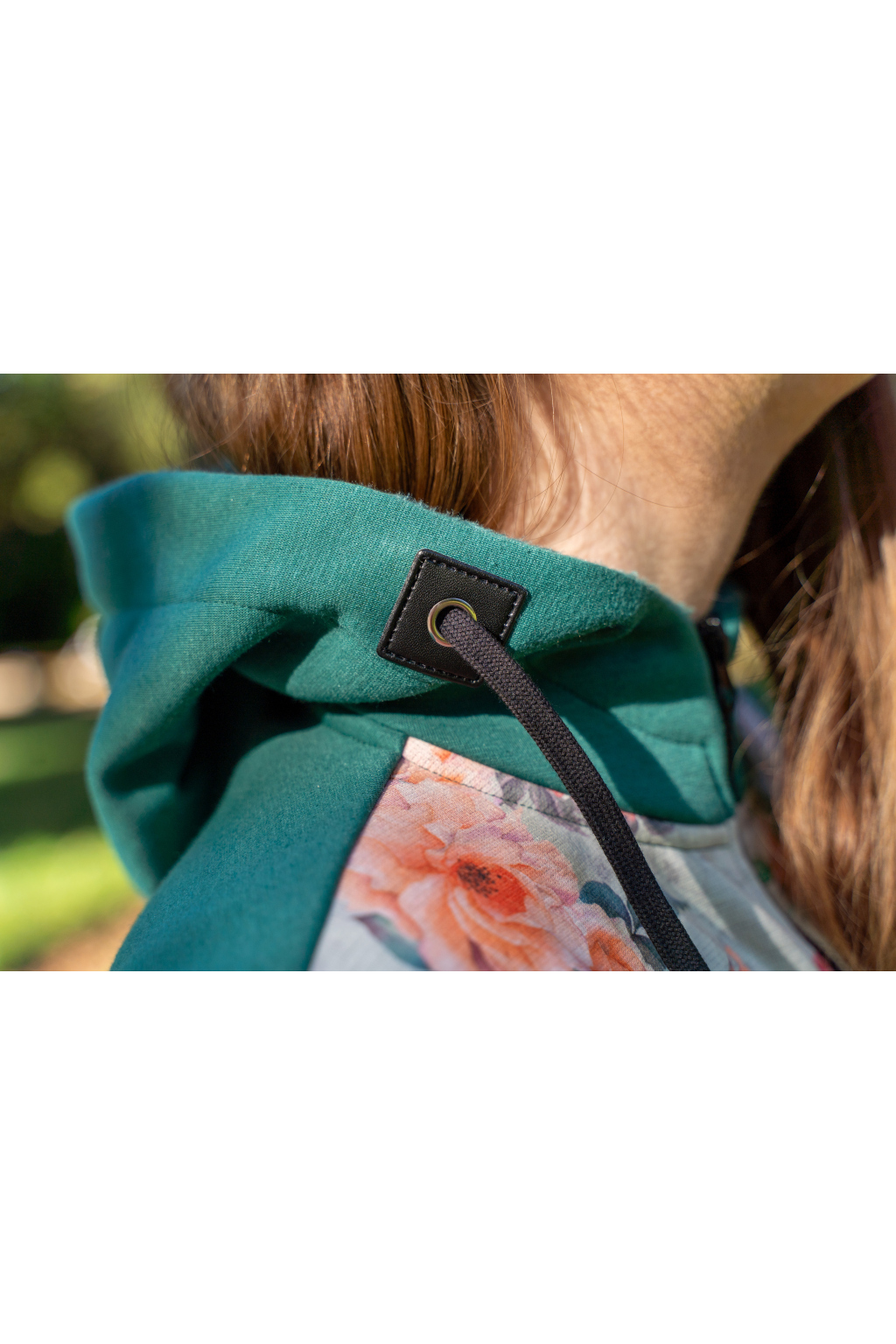 Kapucka pro miminko je oddělávací a i tady jsme mysleli na možnost jejího zmenšení skrze další stahovací gumičky umístěné po stranách kapucky.