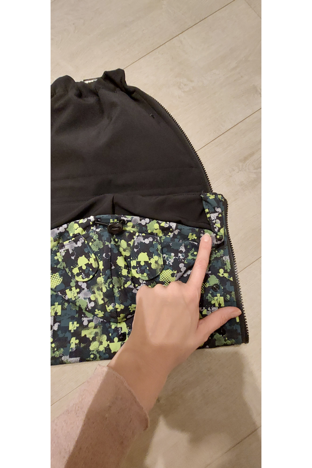 II. jakost - utržený jeden patentek u kapucky. Při nošení to ničemu nevadí, kapucka se dá na té straně přišít pár stehy napevno.