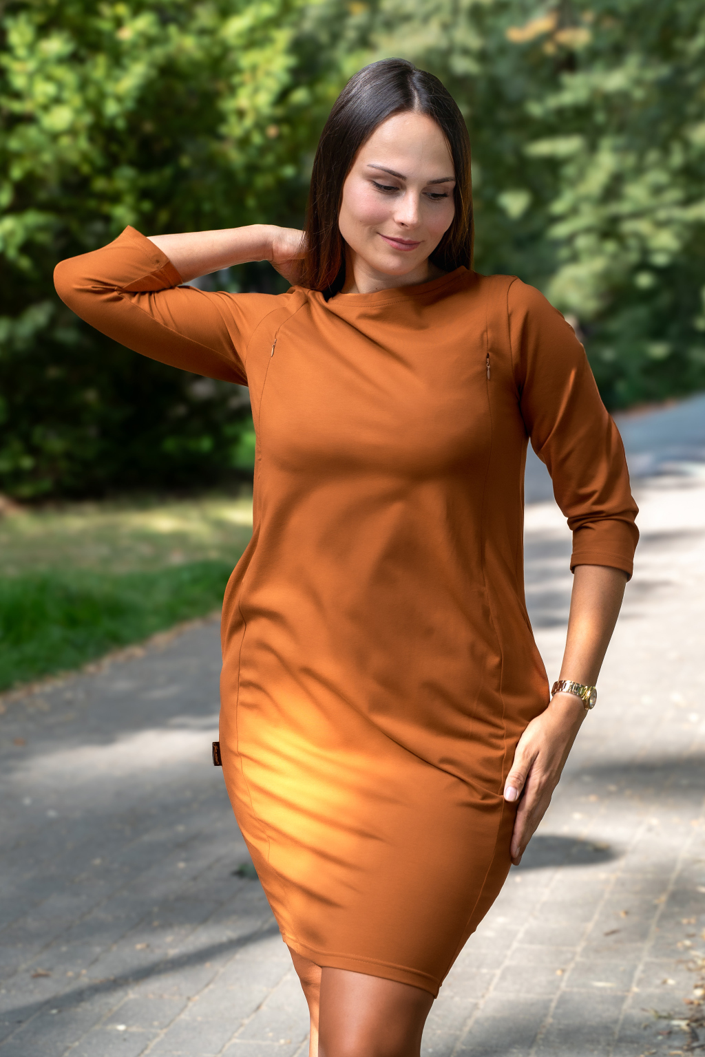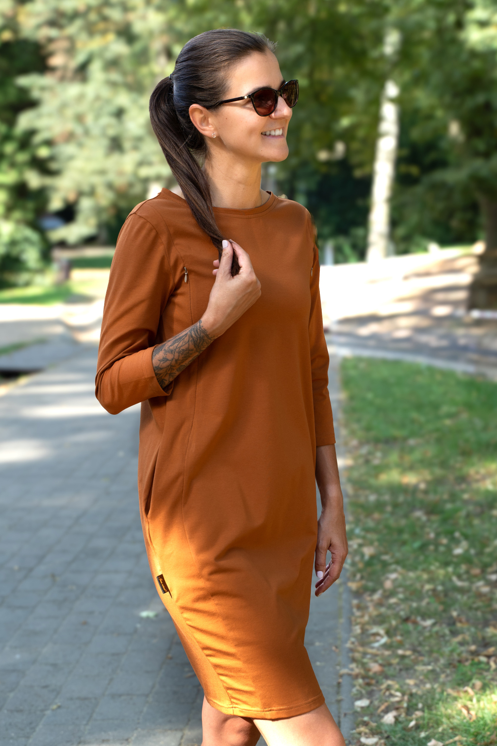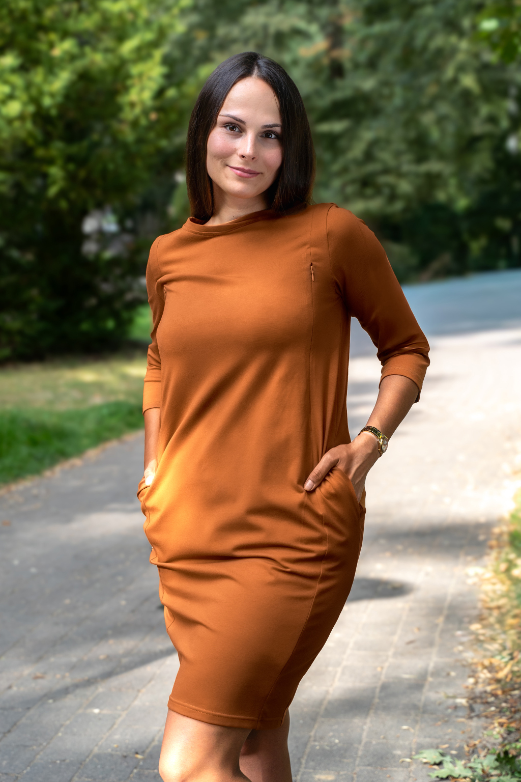 Oversize těhotenské a kojicí šaty Jsem máma – hořčicové
