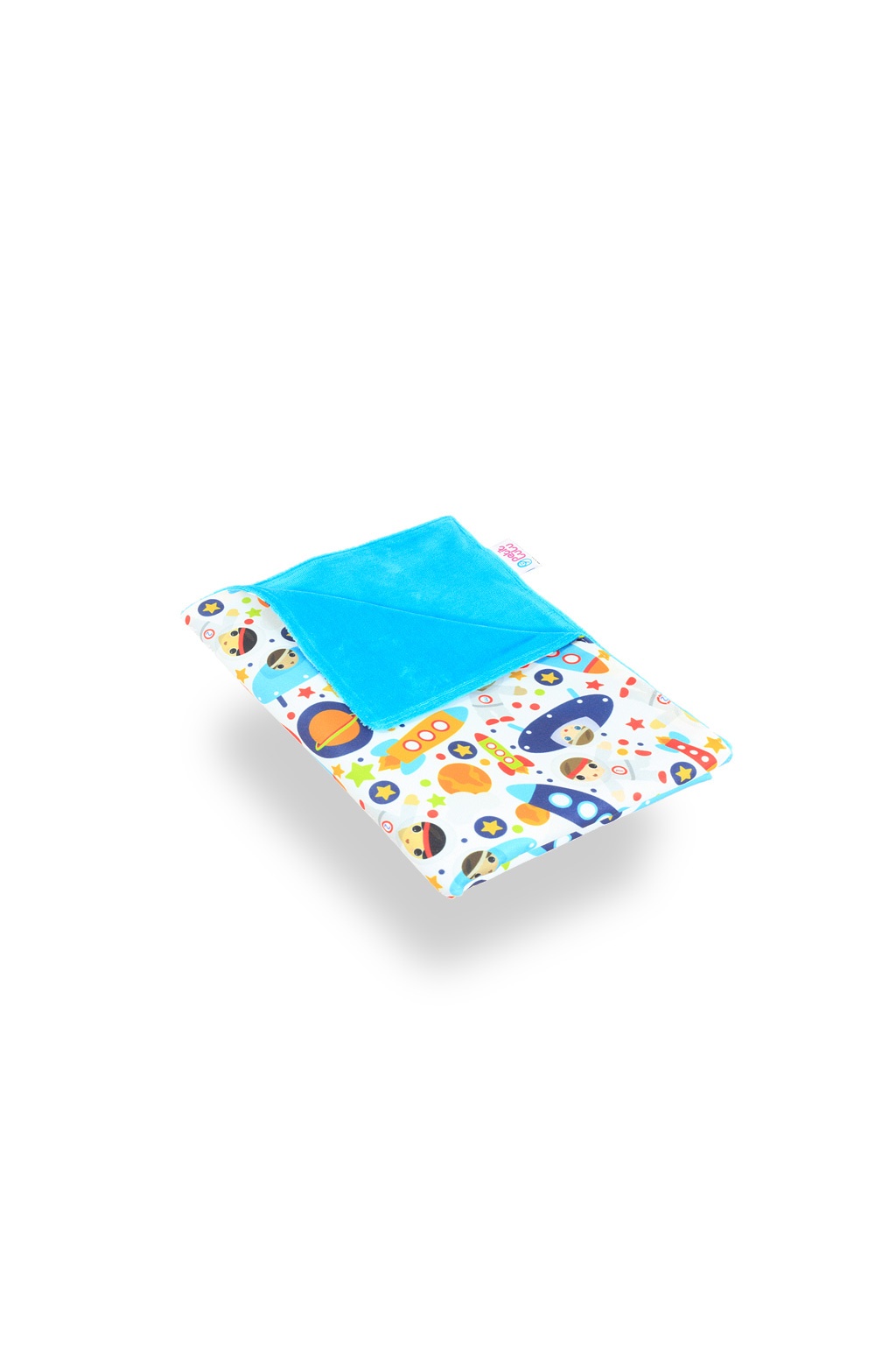 Nepromokavá a sametově jemná podložka je výbornou pomůckou při přebalování. Vhodná je i na cesty, k lékaři, do kočárku, postýlky, na deku… V hravém vzoru s vesmírnými kosmonauty bude nejen skvělým pomocníkem, ale zaujme i zvídavé oči vašeho miminka.