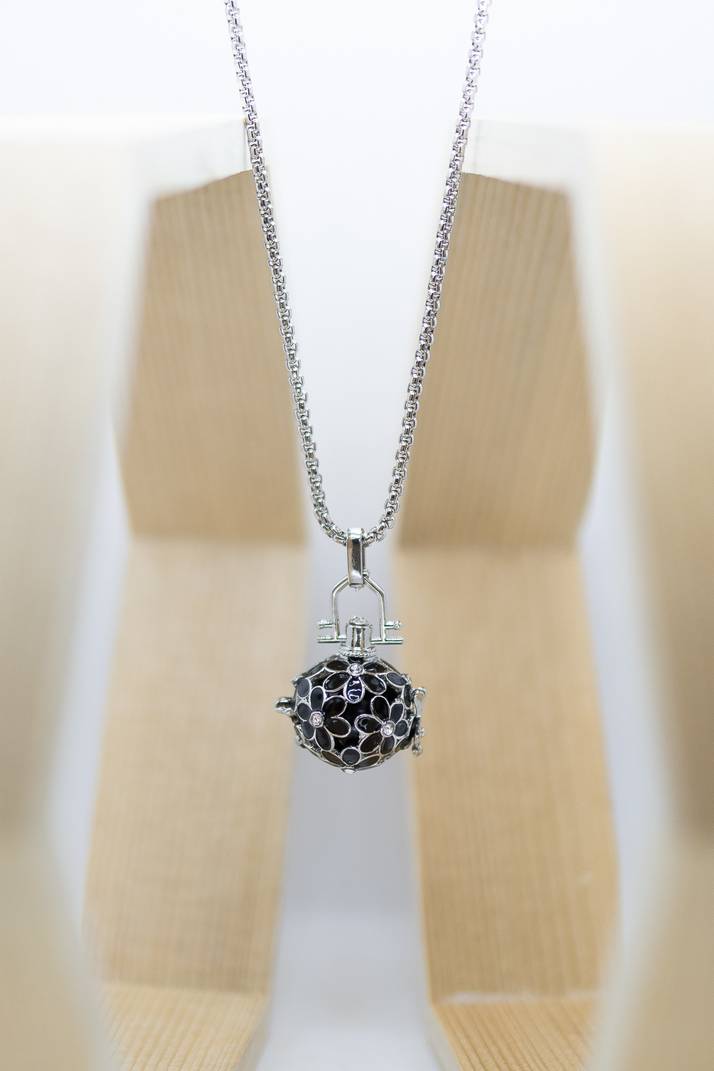 Zároveň k rolničce přidáváme kovový řetízek v klasické délce 70 cm, který využijete po porodu, abyste mohla rolničku pohodlně nosit na krku jako doplněk k vašemu outfitu.