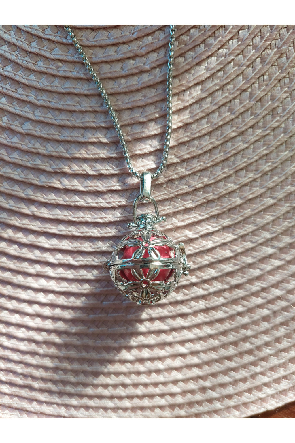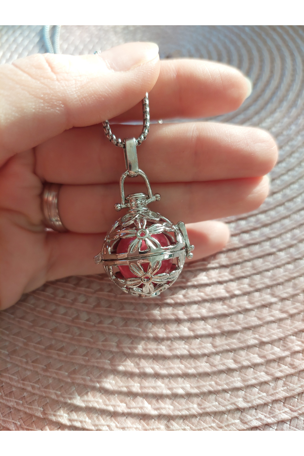 Zároveň k rolničce přidáváme kovový řetízek v klasické délce 70 cm, který využijete po porodu, abyste mohla rolničku pohodlně nosit na krku jako doplněk k vašemu outfitu.