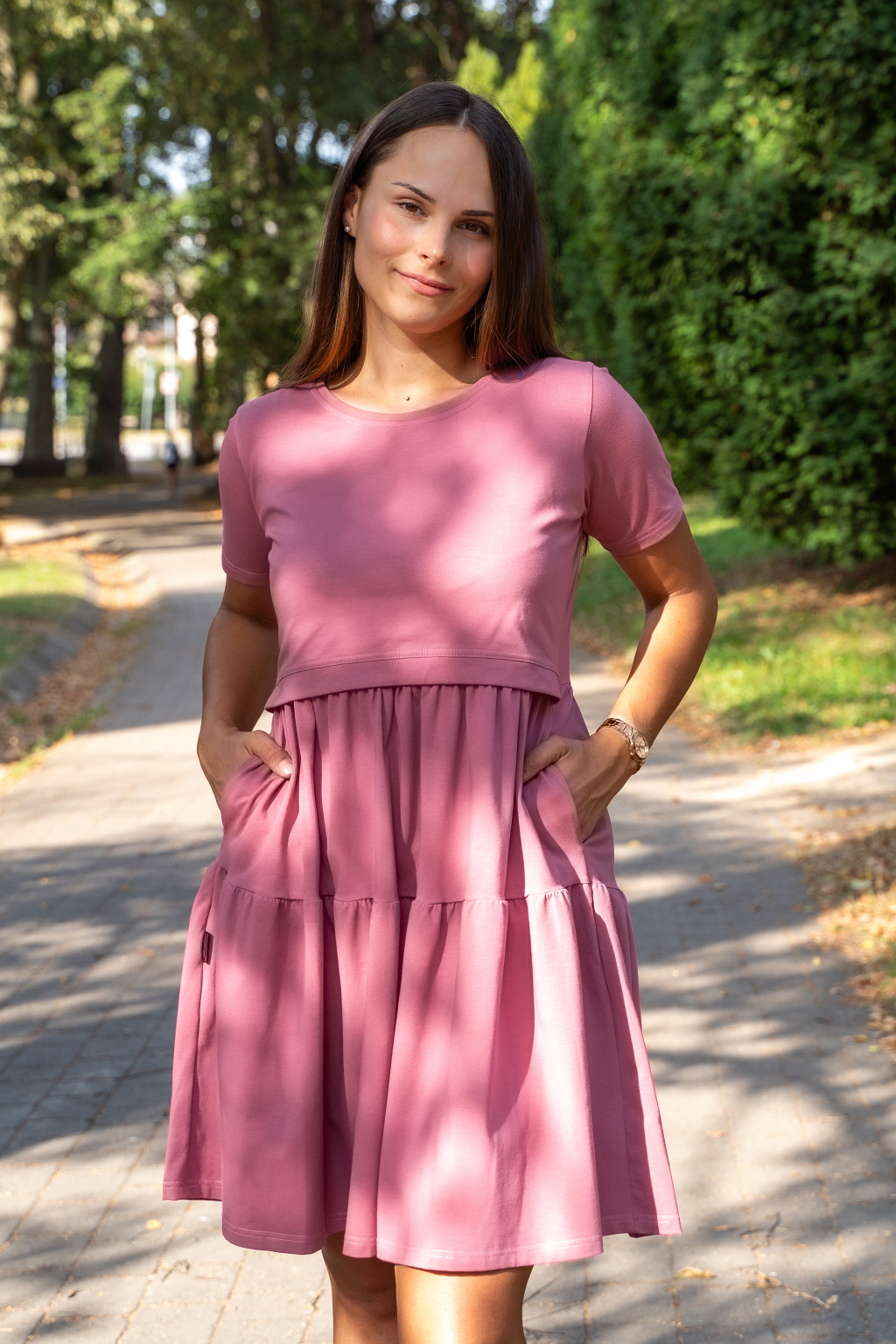 Volnočasové kojicí šaty Jsem máma s kapsami Růžové