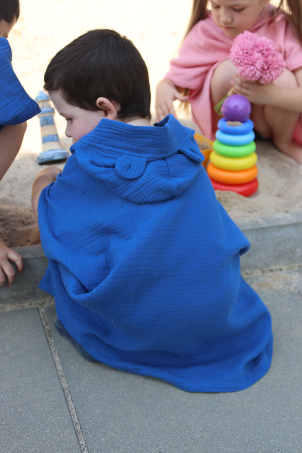 Představte si ten okamžik. Vaše děťátko vyběhne z vody, rozesmáté, mokré a rozzářené… a vy ho jemně zabalíte do měkkého mušelínového ponča, které ho zahřeje a obejme jako druhá náruč. 🧡