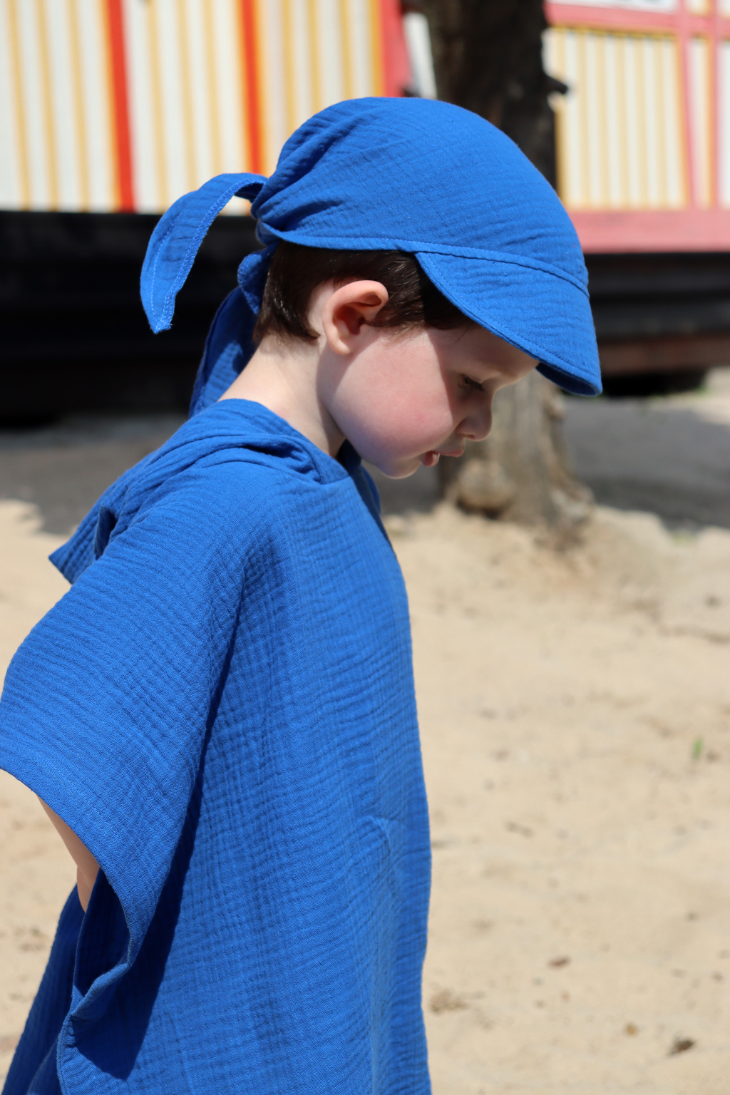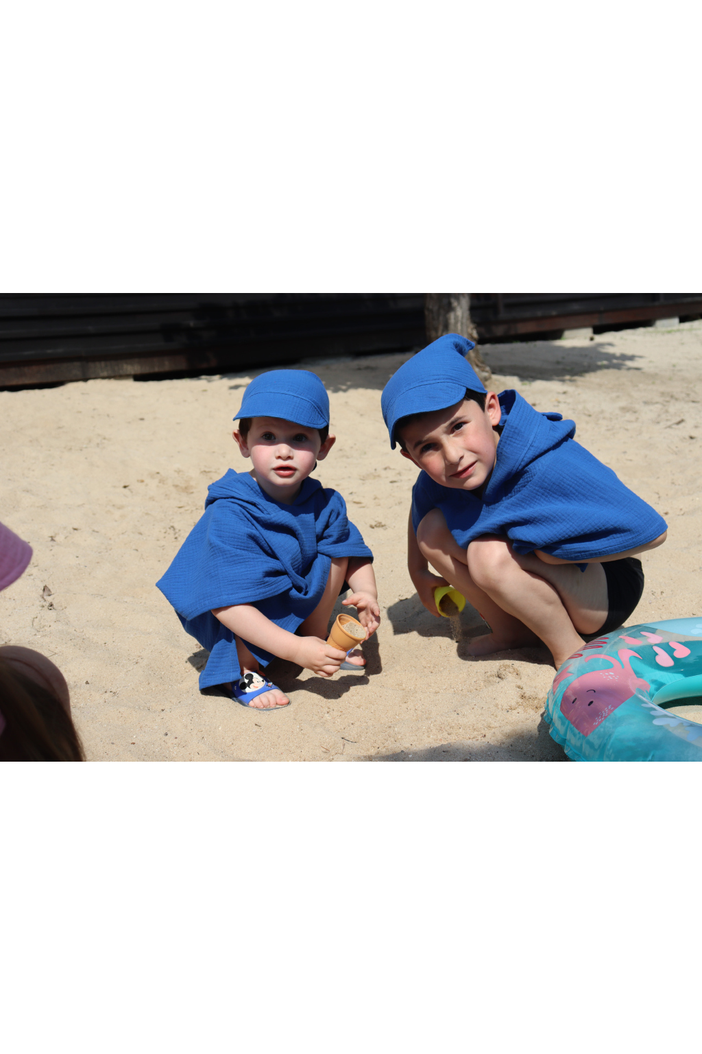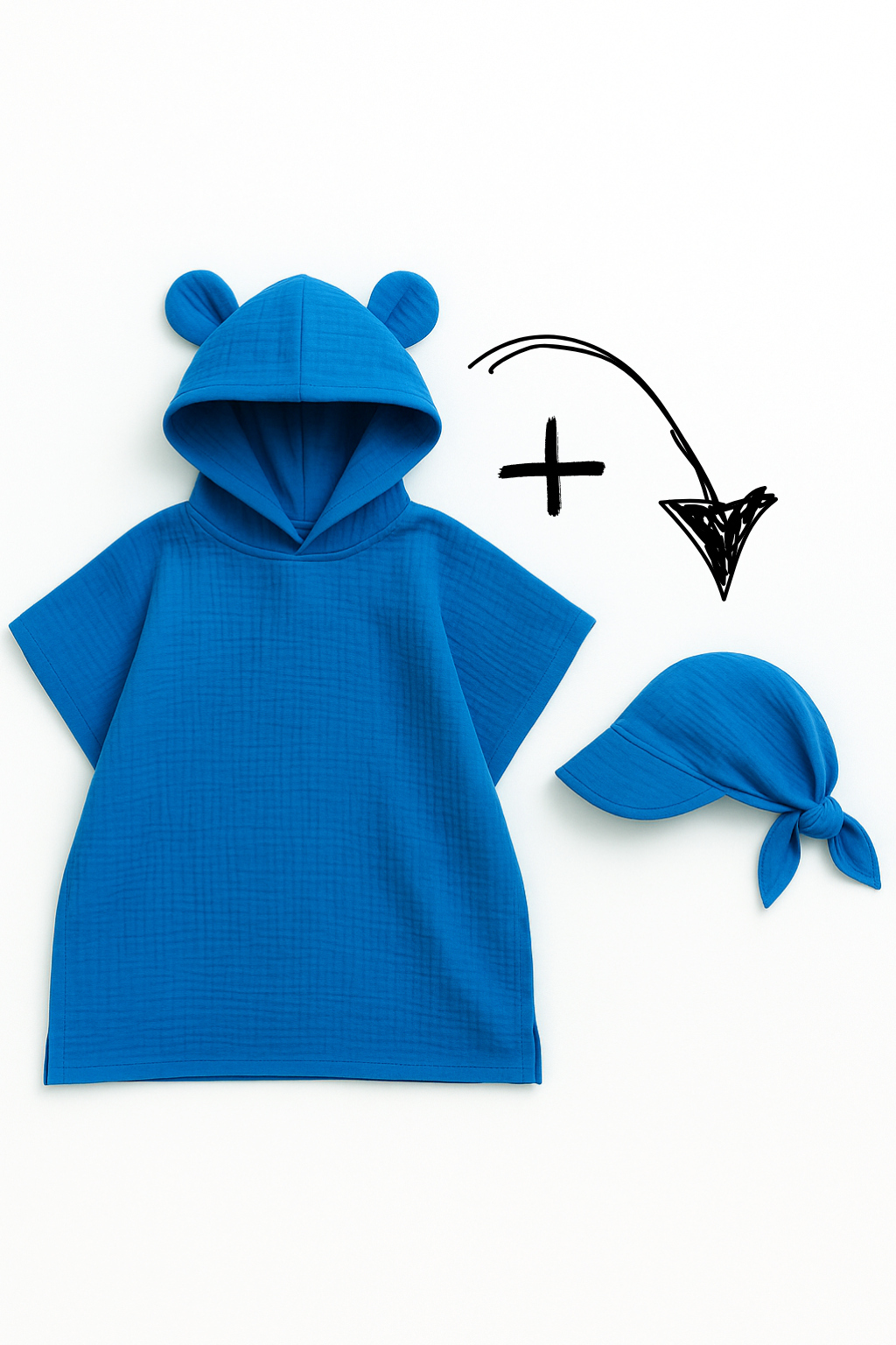 Výhodný set: Dětské BIO mušelínové pončo a šátek (Královsky modrá) – II. jakost