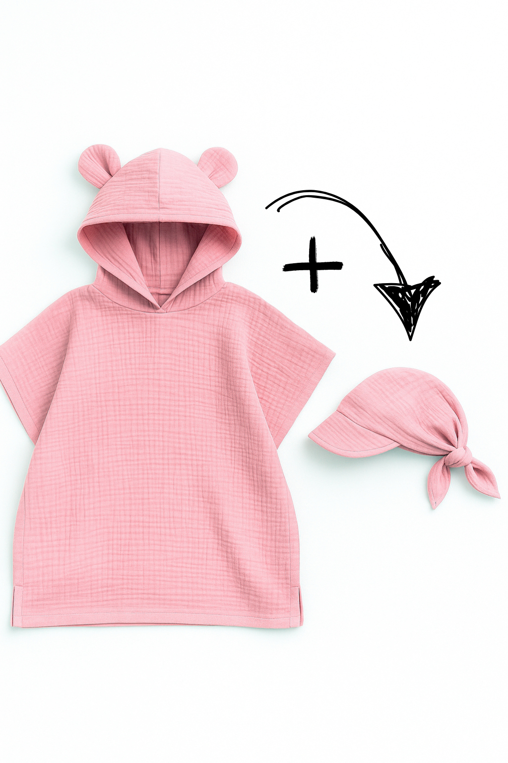 Výhodný set: Dětské BIO mušelínové pončo a šátek (Růžová)