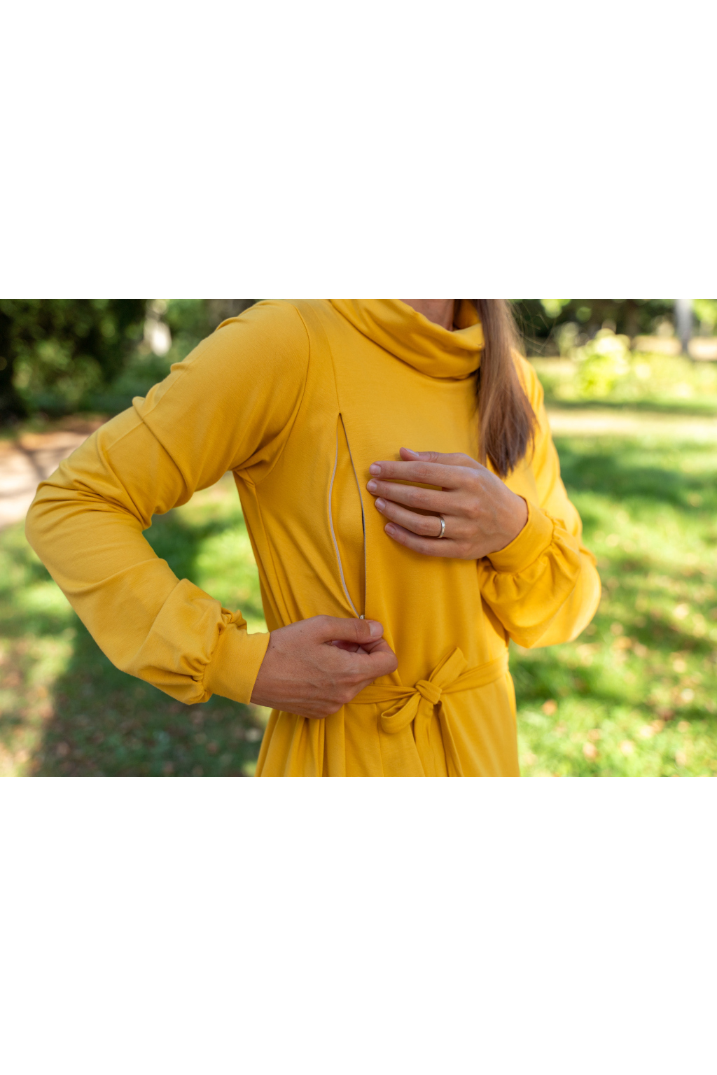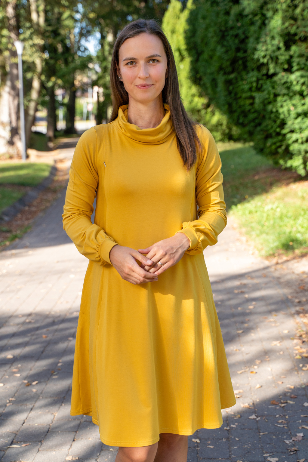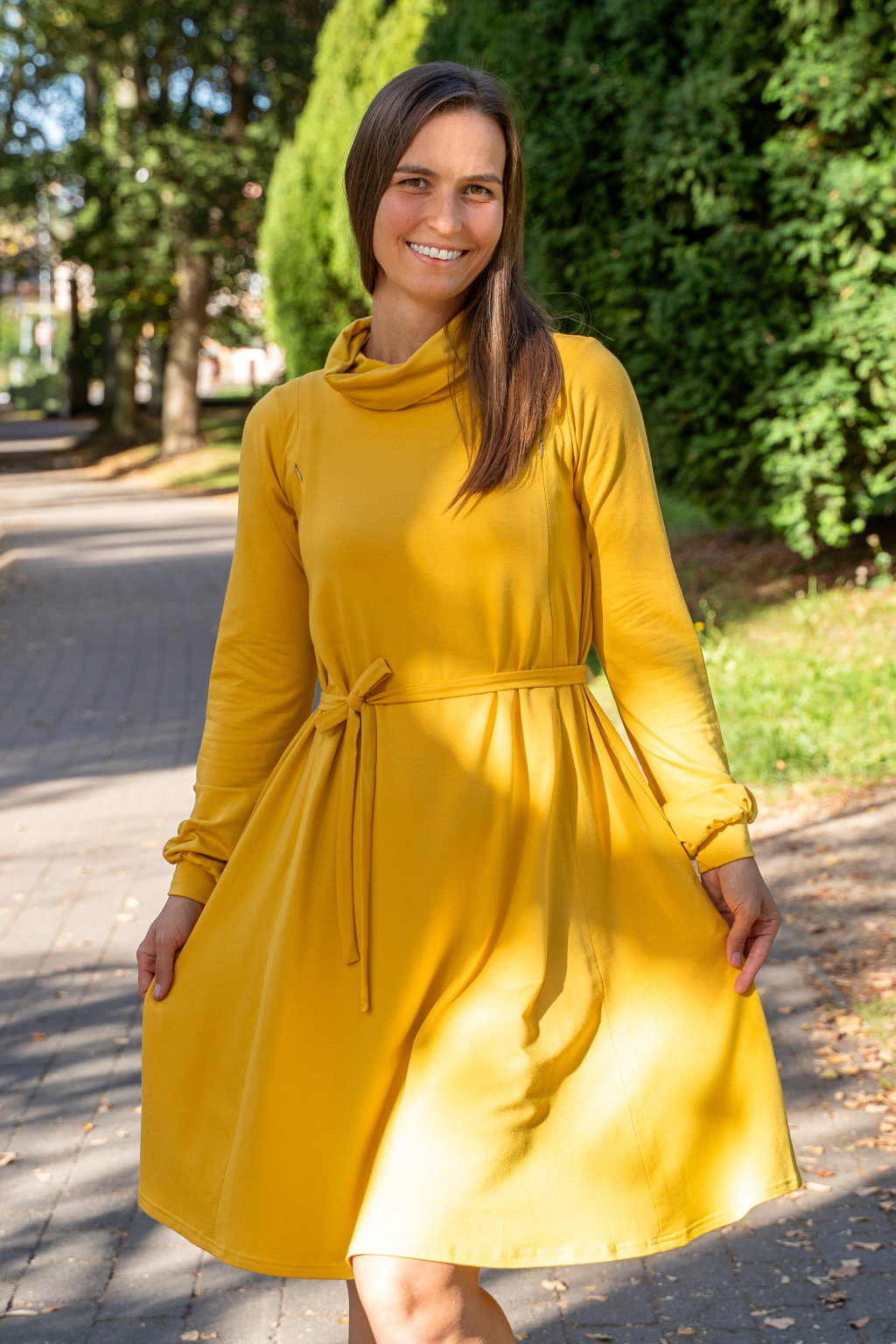 Zimní bambusové kojicí šaty se skrytými zipy – slunečnicově žluté II. jakost