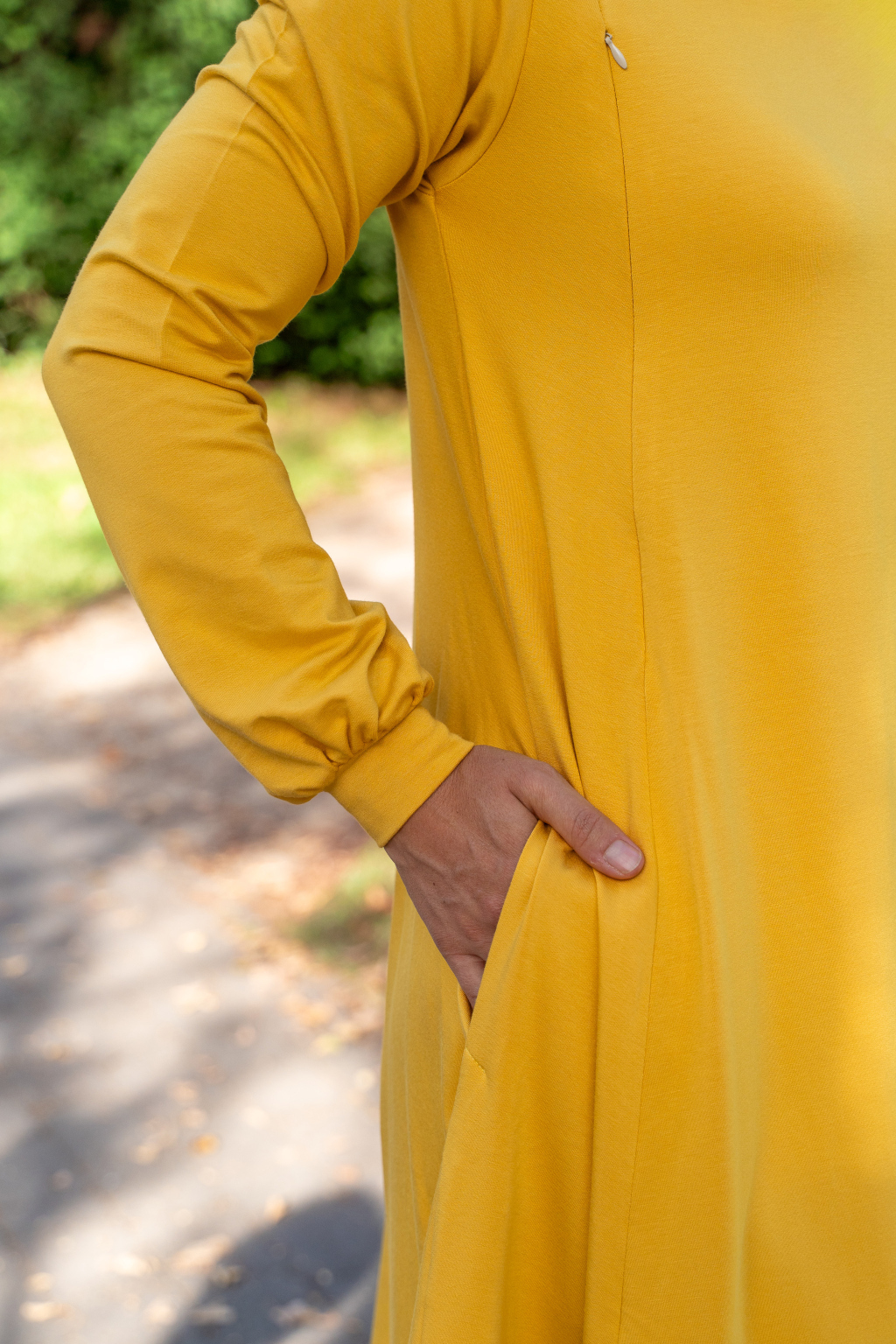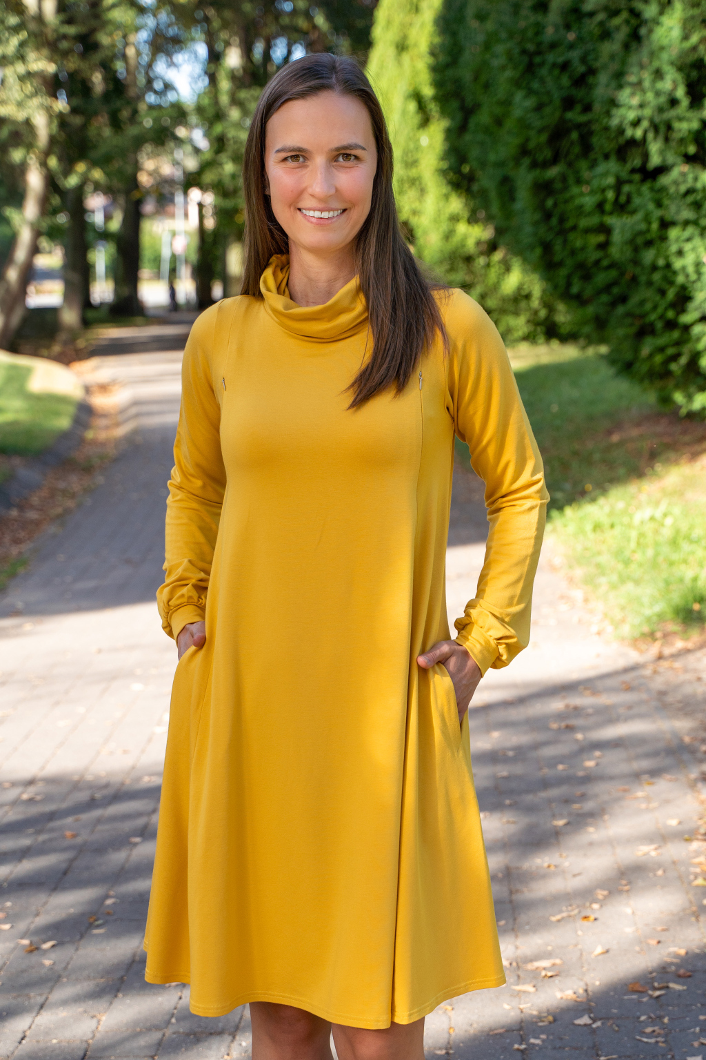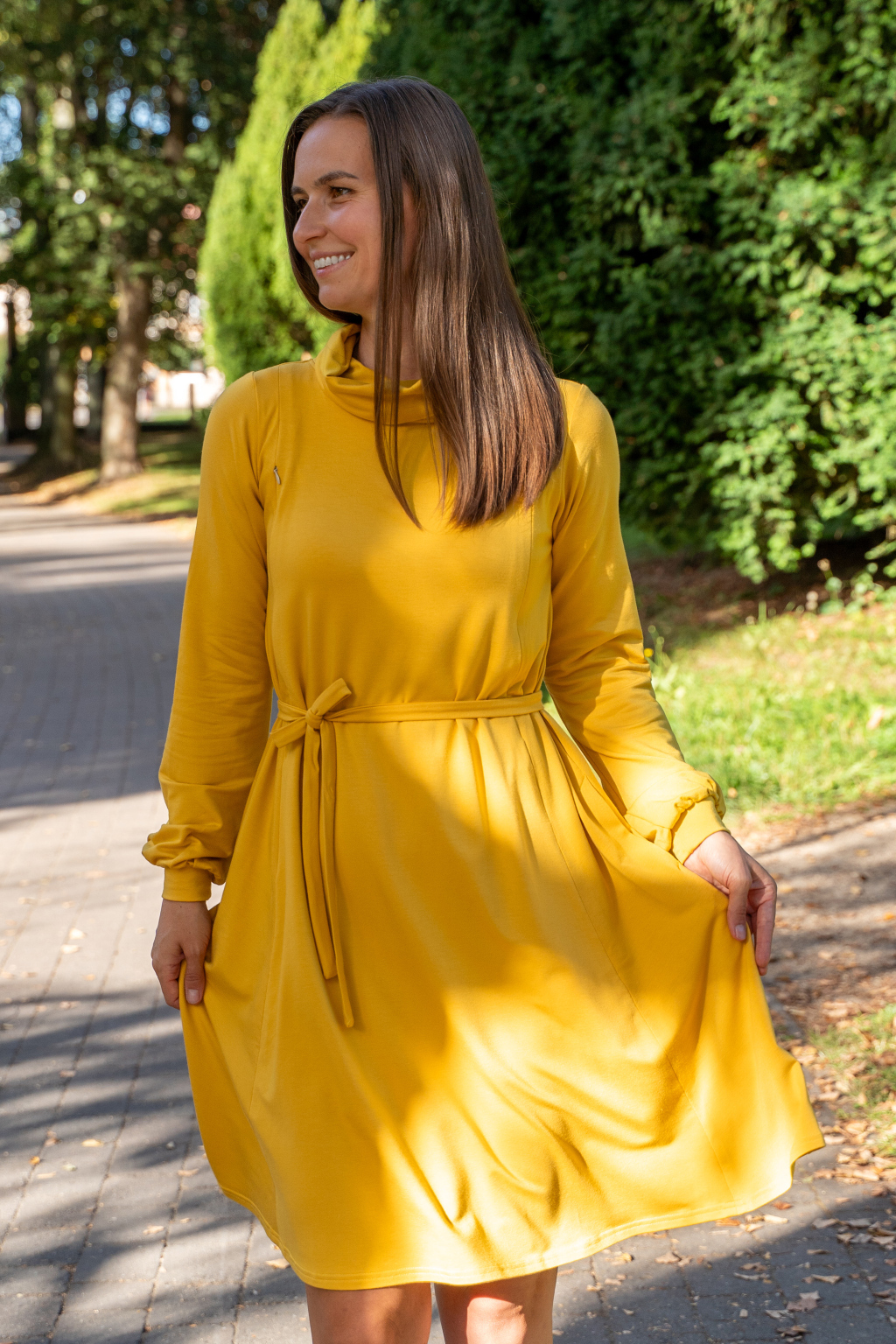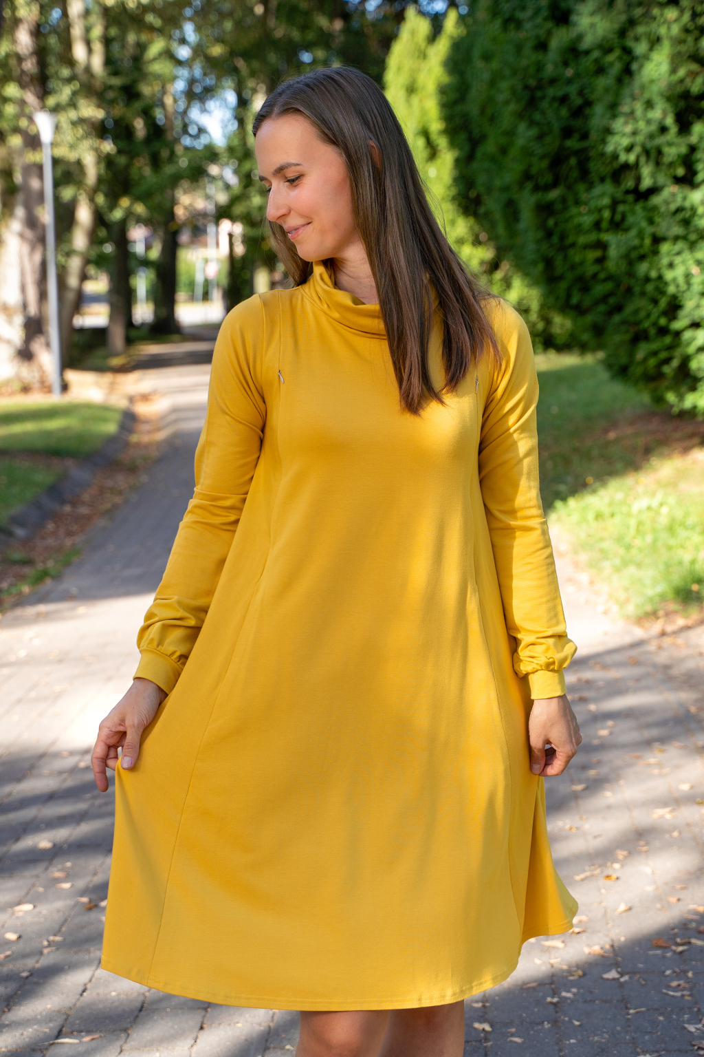 Zimní bambusové kojicí šaty se skrytými zipy – slunečnicově žluté II. jakost