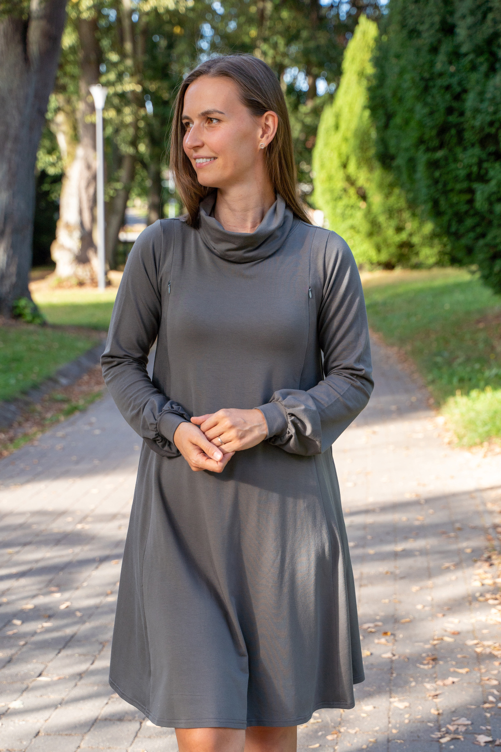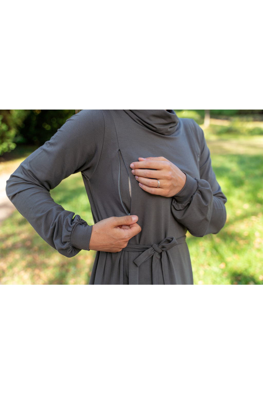 Zimní bambusové kojicí šaty se skrytými zipy – grafitově šedé